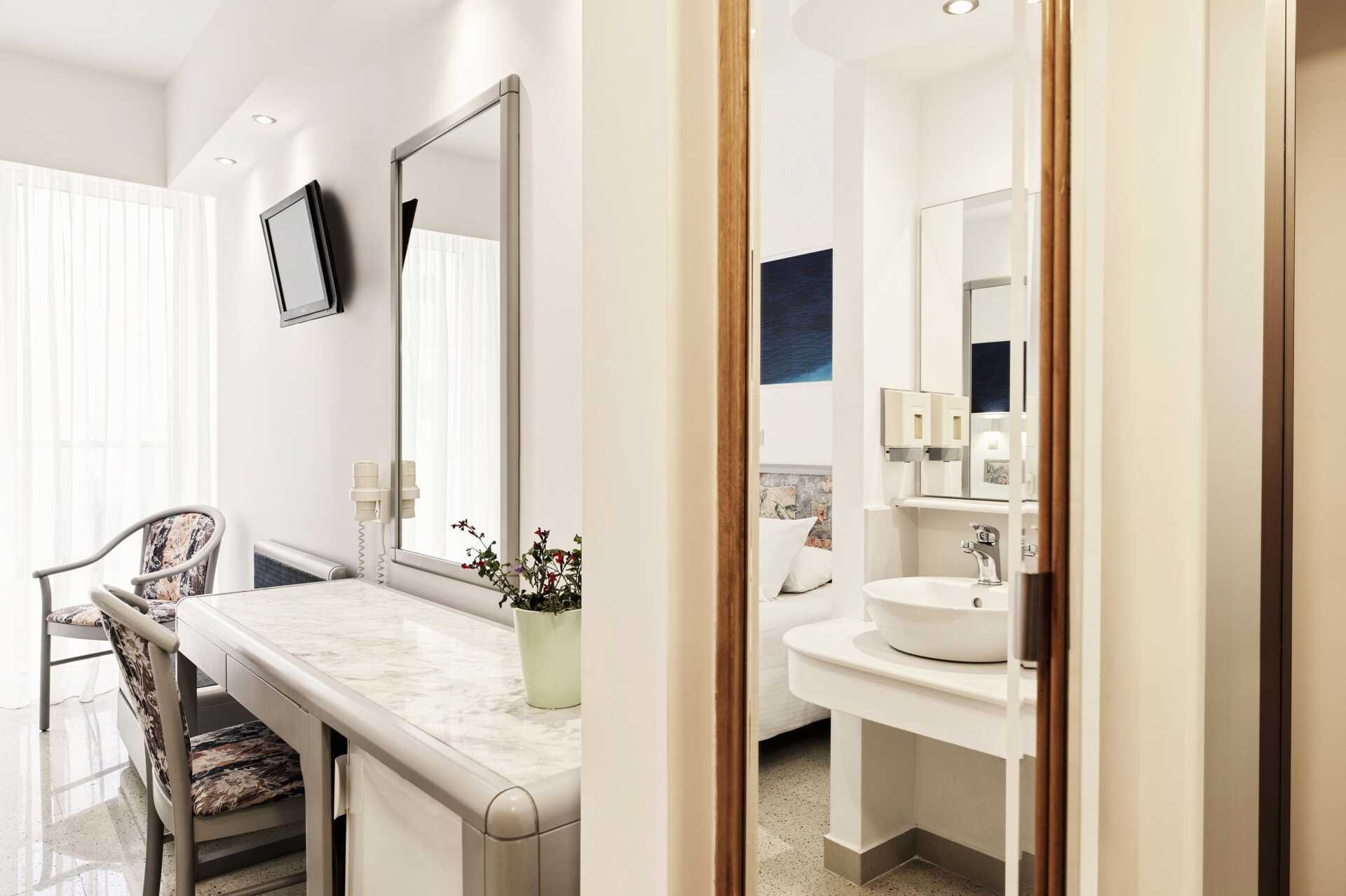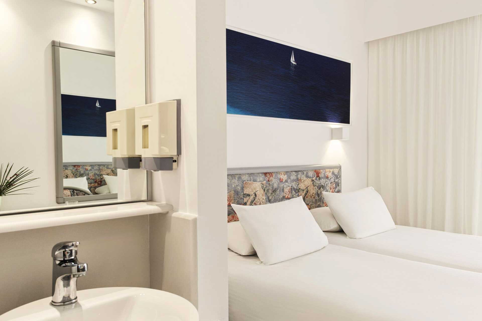 Superior-huone, parvekkeella, joista osasta on näkymä puistoon. Kaksi yhden hengen vuodetta. Maksuton wifi ja tallelokero. Ilmastointi maksutta kesäkuusta syyskuuhun. Jääkaappi. Tv kansainvälisillä kanavilla. Hiustenkuivain. Suihku ja wc. Siivous 7 krt/viikko.