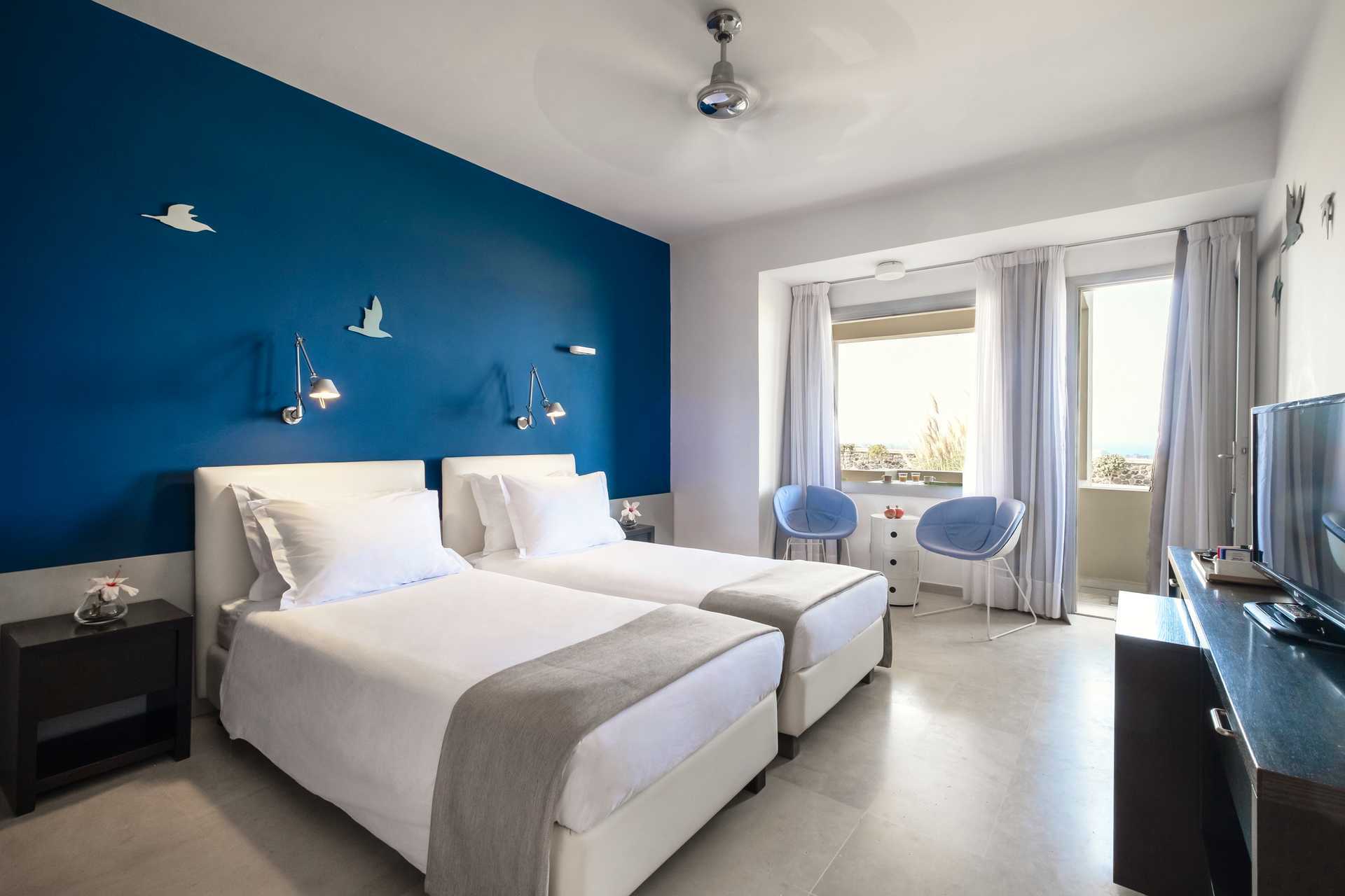 Kahden hengen huone, parvekkeella tai terassilla, osasta merinäköala. Kaksi yhden hengen sänkyä. Maksuton wifi, ilmastointi ja tallelokero. Kattotuuletin. Minibaari. Vedenkeitin, kahvia ja teetä. Tv kansainvälisillä kanavilla. Hiustenkuivain. Amme ja wc. Siivous 7 krt/viikko. Alle 2-vuotiaat lapset lasketaan lisävuoteella majoittuviksi henkilöiksi.