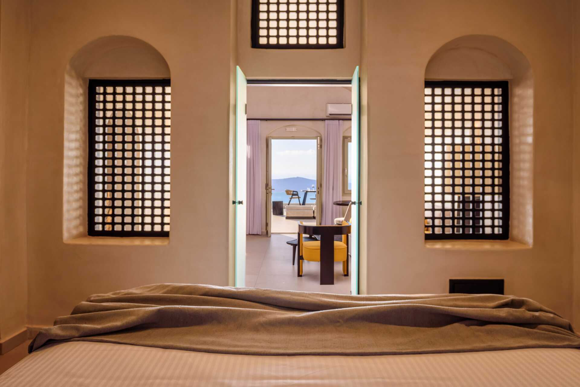 Deluxe-sviitit, joissa on parveke tai terassi ja merinäköala. Pihalla on lämmitetty oma uima-allas, aurinkutuolit ja ruokailutila. Deluxe-sviiteissä on parivuode ja oleskelutila, johon on mahdollista saada lisävuode vuodesohvalla. Maksuton wifi, ilmastointi ja tallelokero. Jääkaappi. Vedenkeitin, kahvia ja teetä. Tv kansainvälisillä kanavilla. Hiustenkuivain. Suihku ja wc. Siivous 7 krt/viikko. Alle 2-vuotiaat lapset lasketaan lisävuoteella majoittuviksi henkilöiksi.