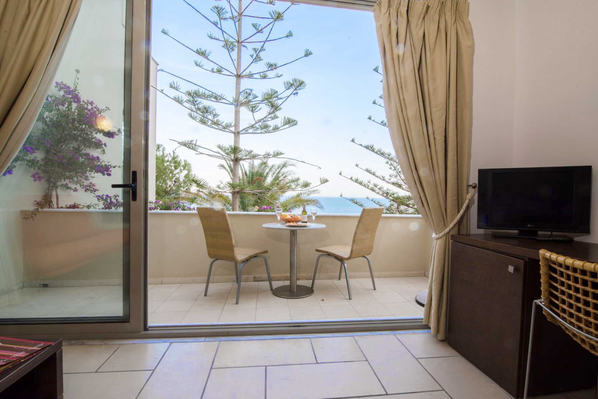 Juniorsviitti parvekkeella tai terassilla. Parivuode tai kaksi yhden hengen sänkyä. Lisävuodemahdollisuus vuodesohvasta. Maksuton wifi, ilmastointi ja tallelokero. Jääkaappi. Tv kansainvälisillä kanavilla. Kylpytakit ja tossut Hiustenkuivain. Kylpyhuoneessa suihku ja wc. Siivous 7 krt/viikko. Alle 2-vuotiaat lapset lasketaan lisävuoteella majoittuviksi henkilöiksi.