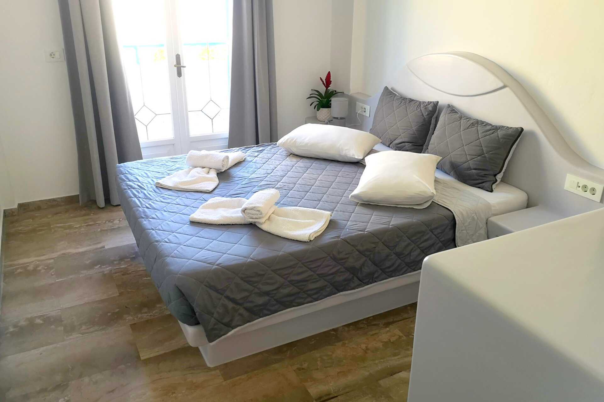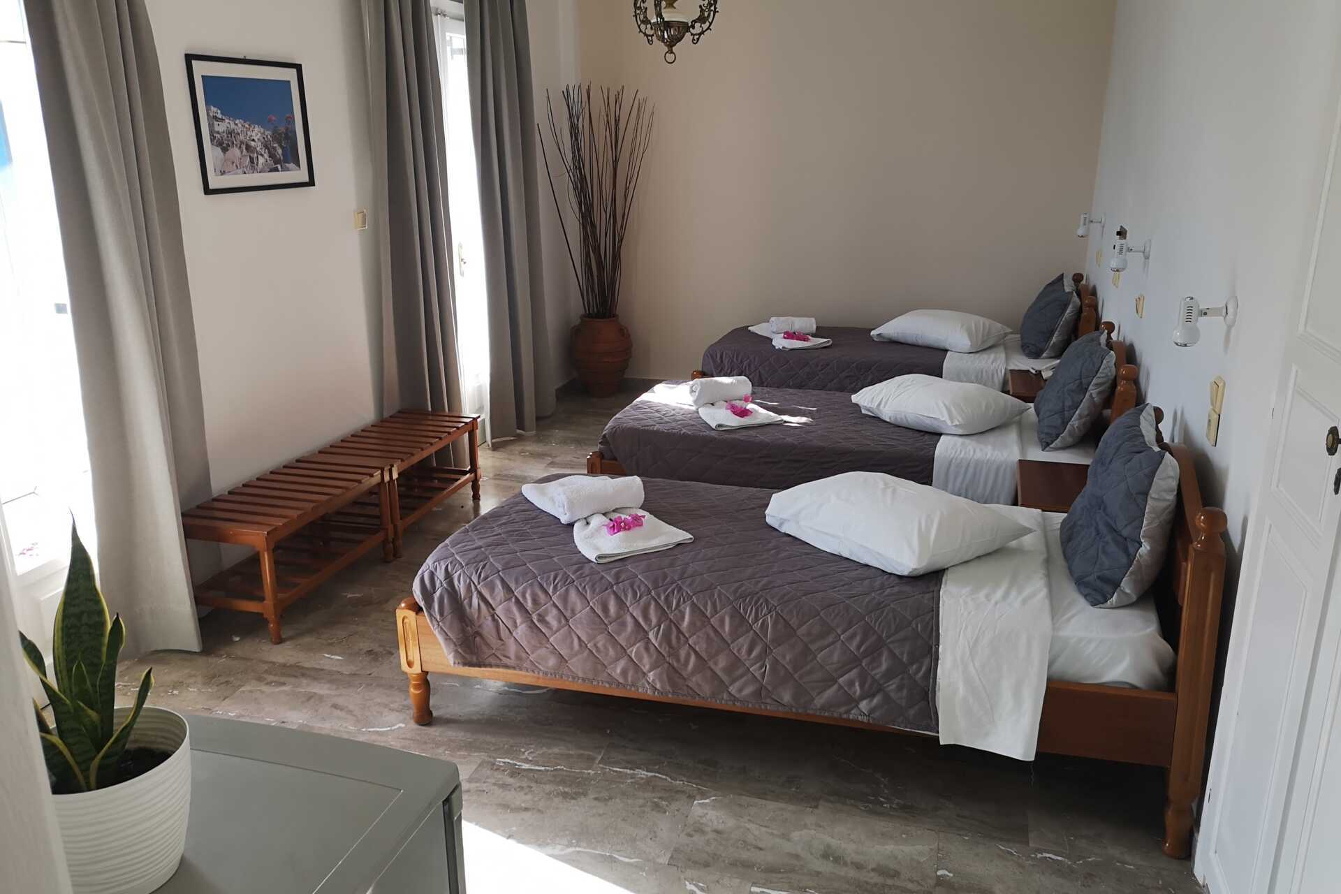 Kolmen hengen huone parvekkeella. Kolme erillistä sänkyä. Maksuton wifi, ilmastointi ja tallelokero. Jääkaappi. Tv kansainvälisillä kanavilla. Hiustenkuivain. Kylpyhuoneessa suihku ja wc. Siivous 6 krt/viikko.