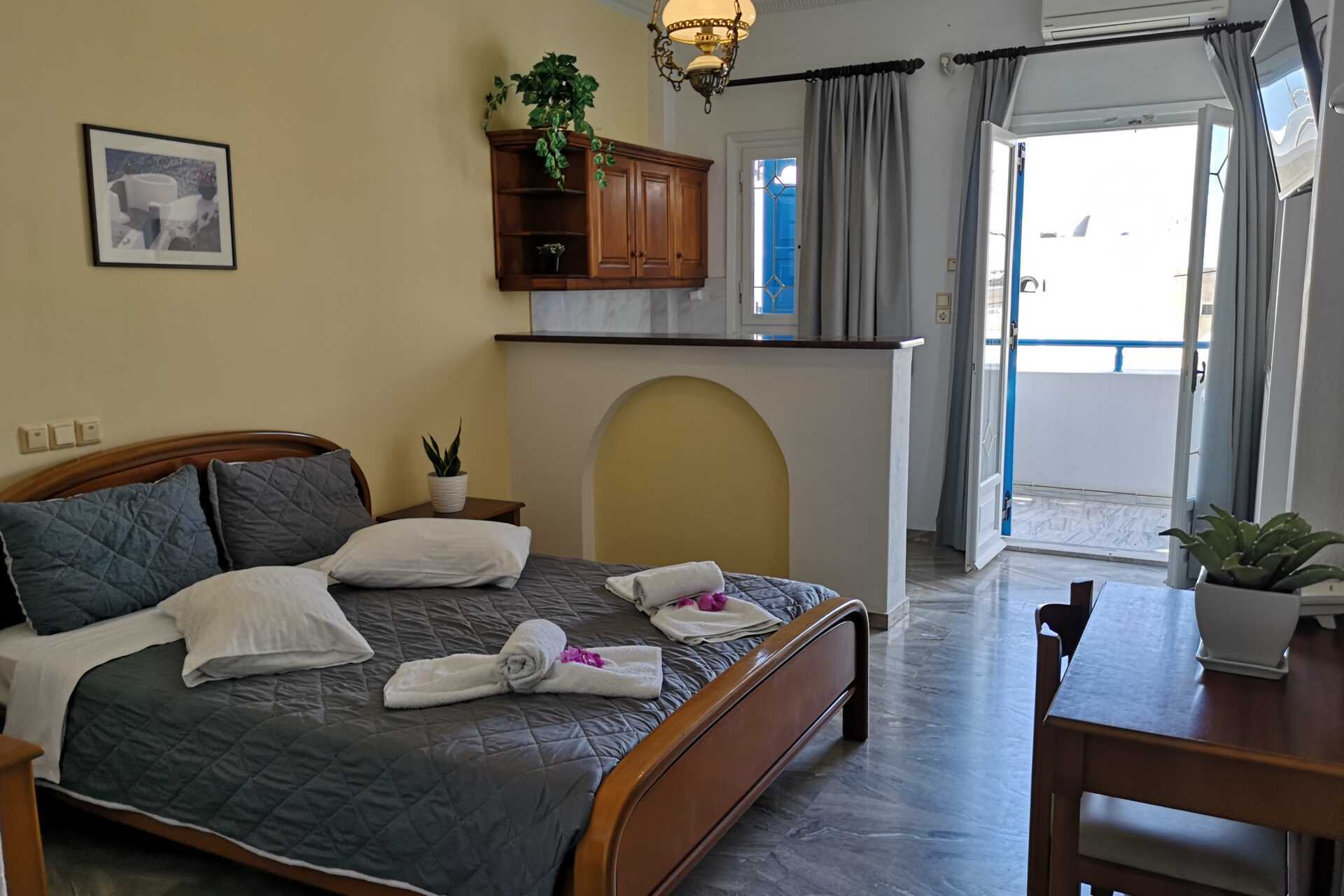Kahden hengen huone jossa on parveke. Parivuode tai kaksi yhden hengen sänkyä. Maksuton wifi, ilmastointi ja tallelokero. Jääkaappi. Tv kansainvälisillä kanavilla. Hiustenkuivain. Kylpyhuoneessa suihku ja wc. Siivous 6 krt/viikko.