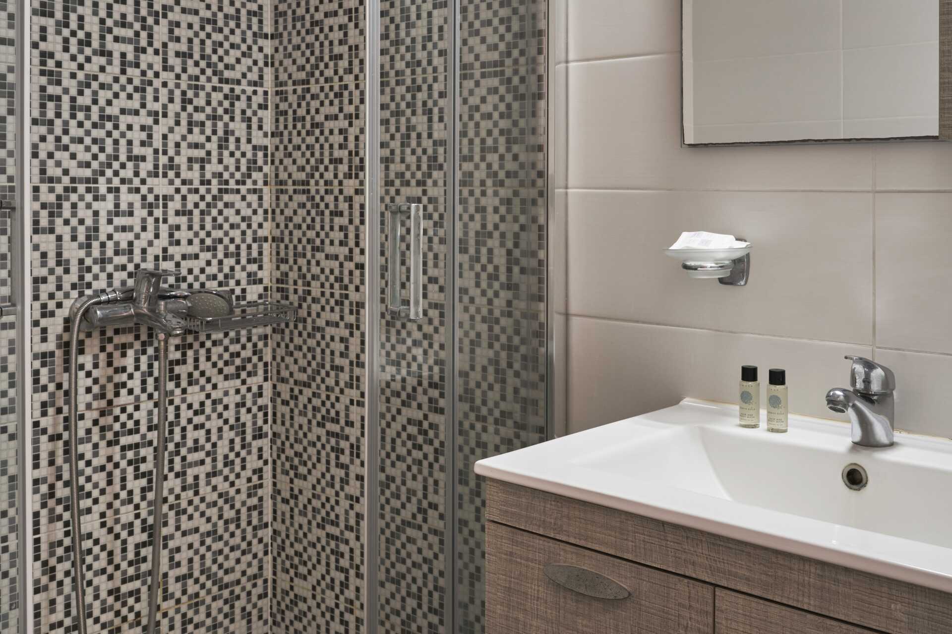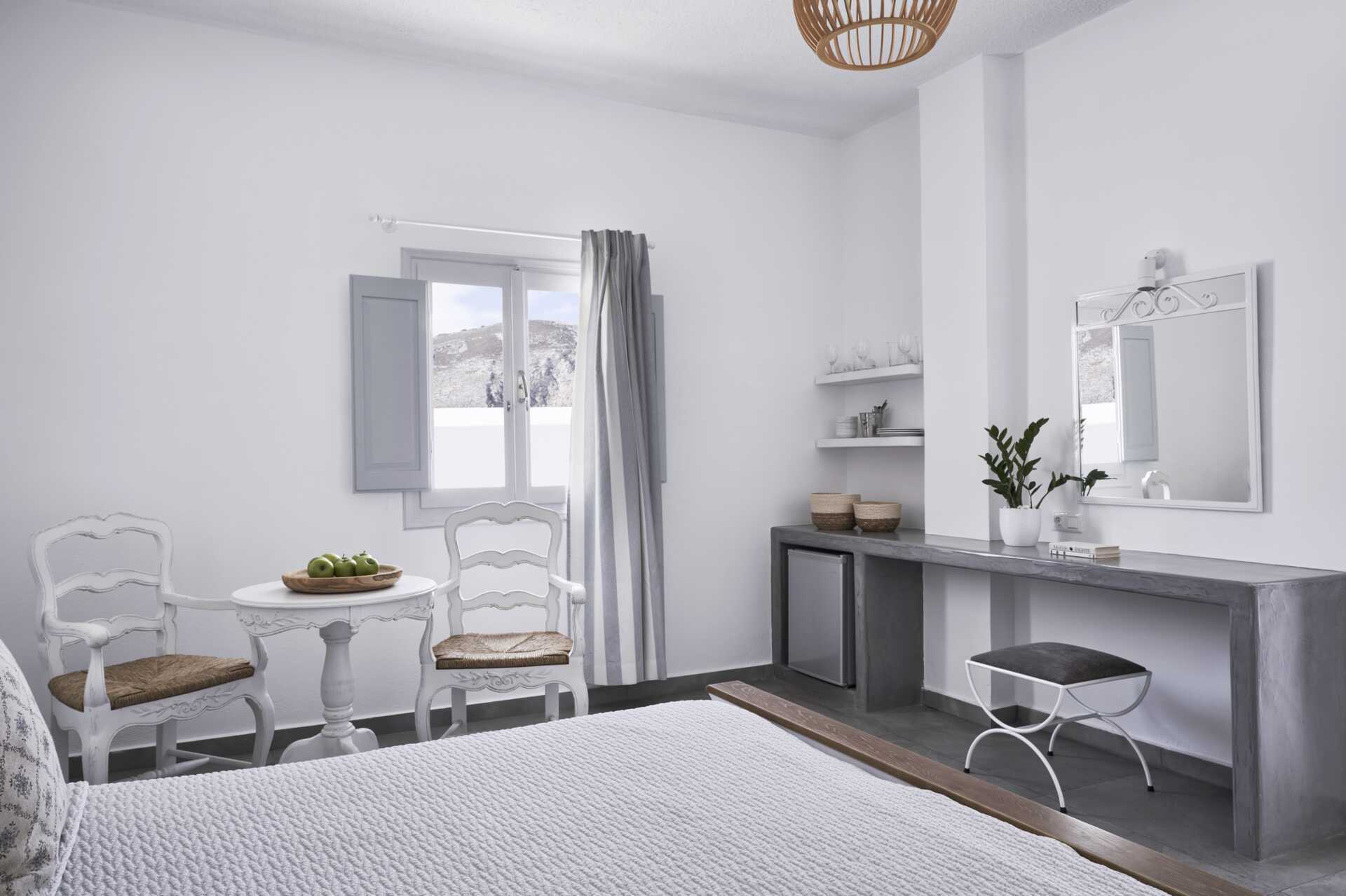 Kahden hengen huone parvekkeella tai terassilla. Parivuode tai kaksi yhden hengen sänkyä. Maksuton wifi, ilmastointi ja tallelokero. Jääkaappi. Kahvinkeitin - kapselit eivät sisälly hintaan, tai vedenkeitin kahvin ja teen kera. Tv kansainvälisillä kanavilla. Hiustenkuivain. Suihku ja wc. Siivous 7 krt/viikko.