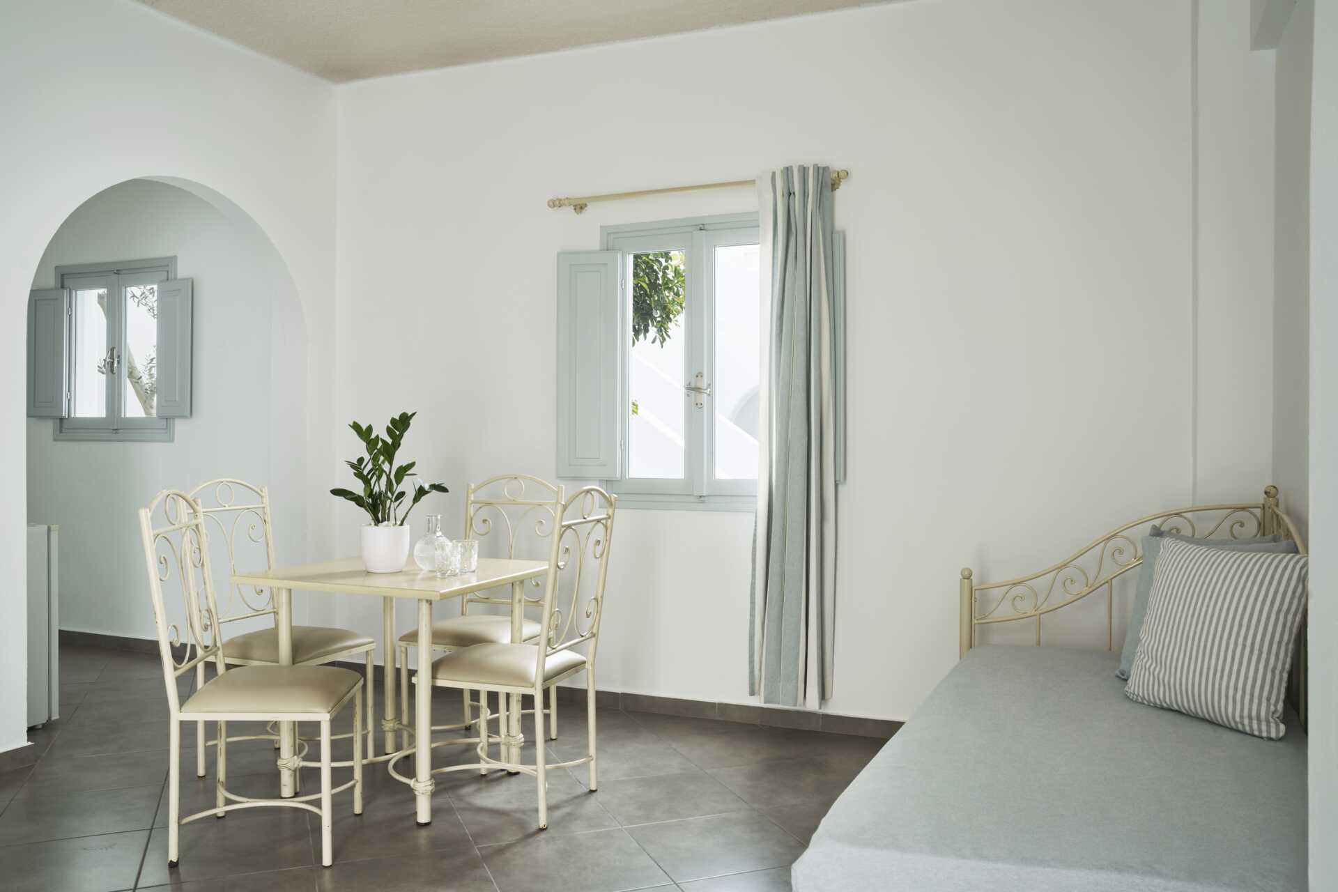 Kahden huoneen sviitti parvekkeella tai terassilla. Sviitissä on makuuhuone ja olohuone. Parivuode. Mahdollisuus lisävuoteisiin kahdelle tai kolmelle vuodesohvalla. Maksuton wifi, ilmastointi ja tallelokero. Jääkaappi. Kahvinkeitin - kapselit eivät sisälly hintaan tai vedenkeitin kahvin ja teen kera. Tv kansainvälisillä kanavilla. Suihku ja wc. Siivous 7 krt/viikko.