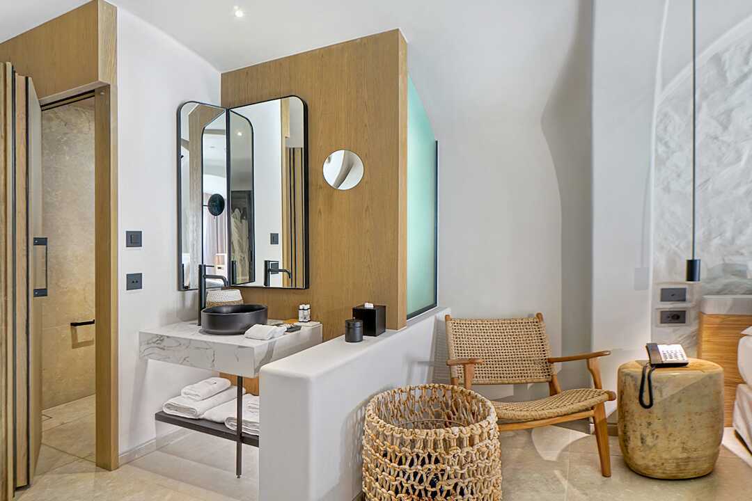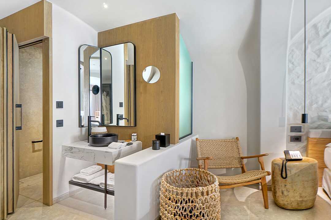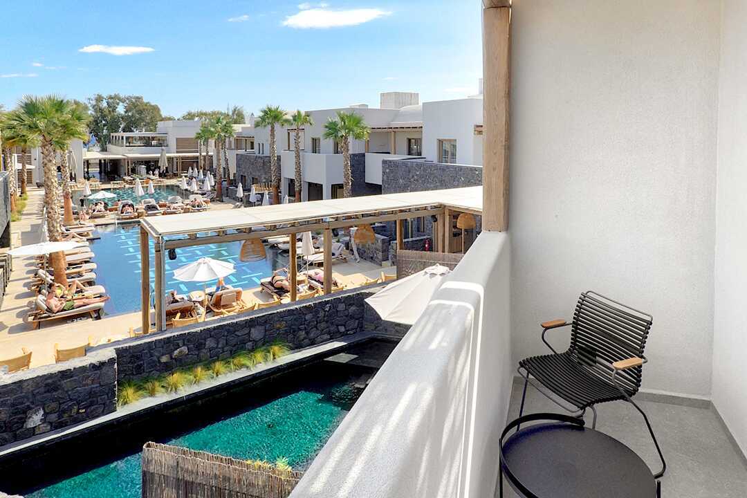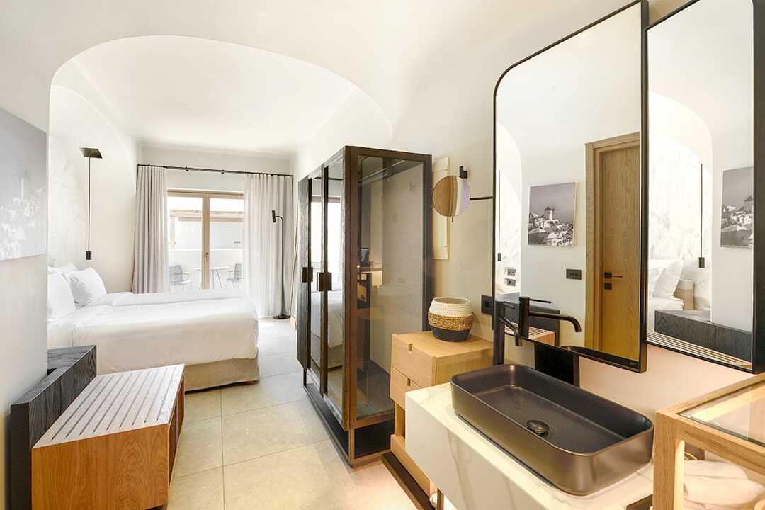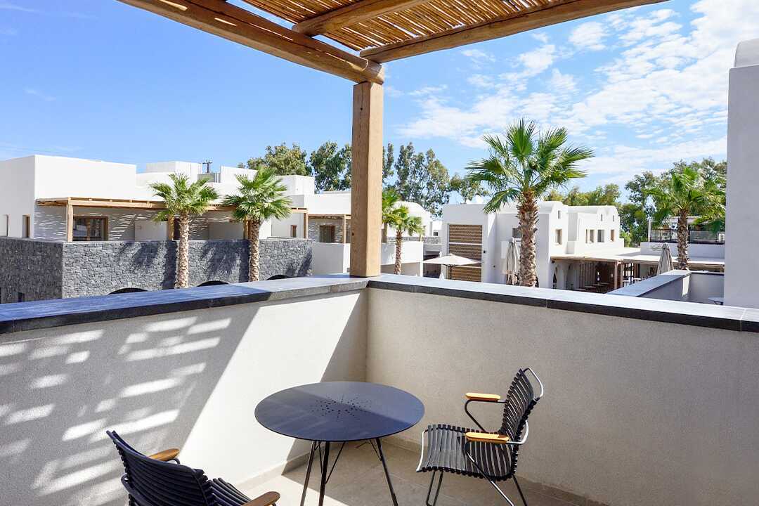 Junior-sviittejä, joissa on parveke tai terassi. Parivuode tai kaksi yhden hengen vuodetta. Lisävuodemahdolisuus vuodesohvasta. Maksuton wifi, ilmastointi ja tallelokero. Jääkaappi, vesi sisältyy hintaan. Nespresso-keitin. Vedenkeitin, kahvia ja teetä. Tv kansainvälisillä kanavilla. Kylpytakit ja tossut. Hiustenkuivain. Kylpyhuoneessa on osittain avoin pohjaratkaisu. Suihku ja wc. Siivous 7 krt/viikko.