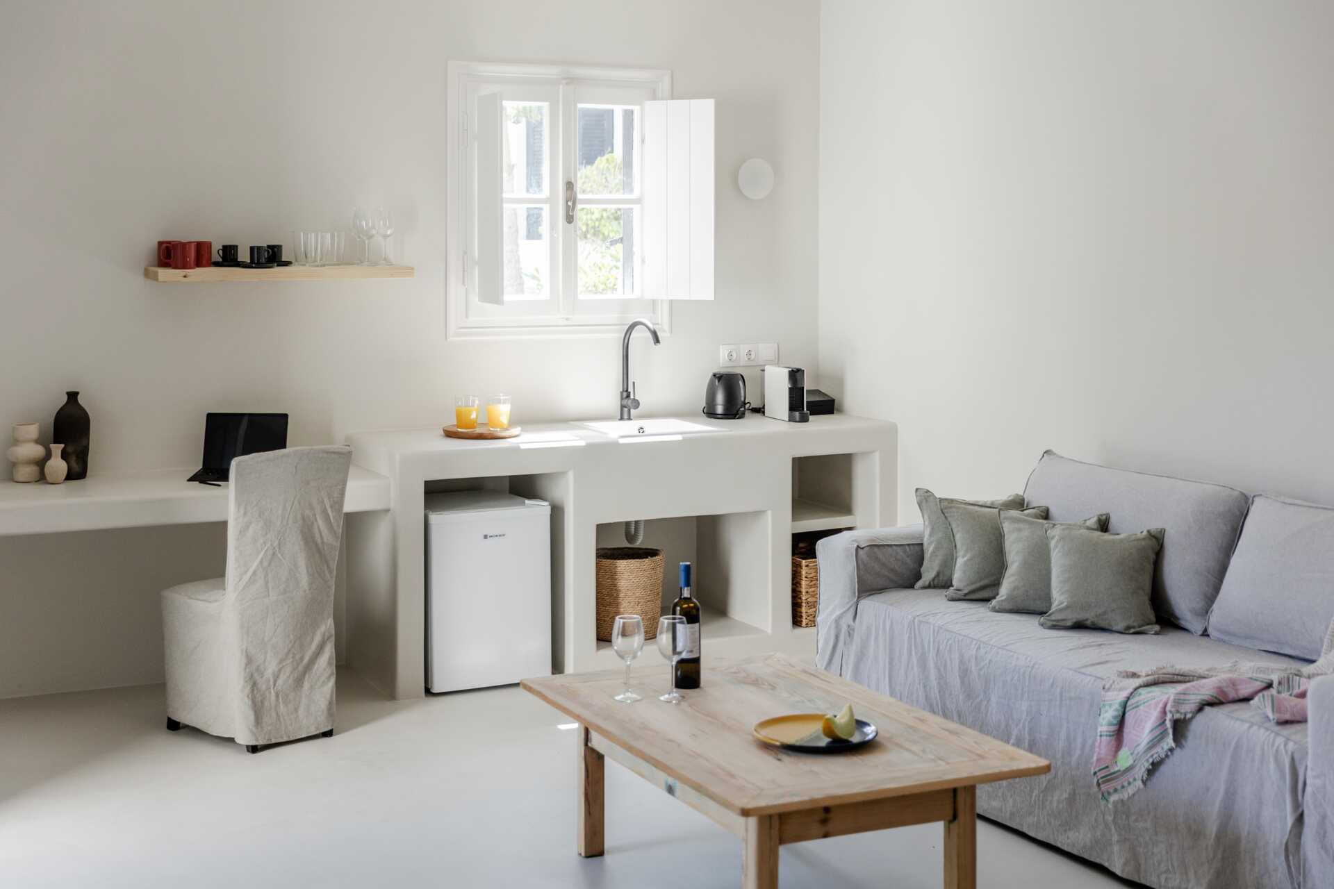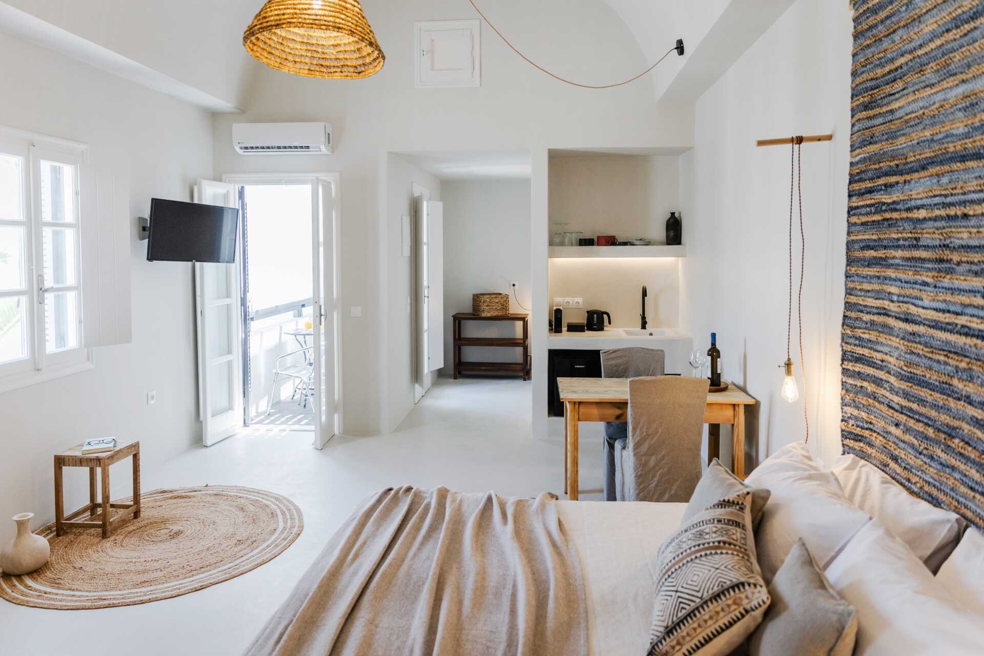 Sviitti, jossa parveke tai terassi pohjakerroksessa tai parveke toisessa kerroksessa. Yksi parivuode tai kaksi erillistä vuodetta. Lisävuodemahdollisuus vuodesohvasta. Maksuton wifi, ilmastointi ja tallelokero. Jääkaappi. Vedenkeitin. Nespresso-kahvinkeitin, kapselit lisämaksusta. Tv kansainvälisillä kanavilla. Hiustenkuivain. Kylpyhuoneessa suihku ja wc. Siivous 7 krt/viikko.