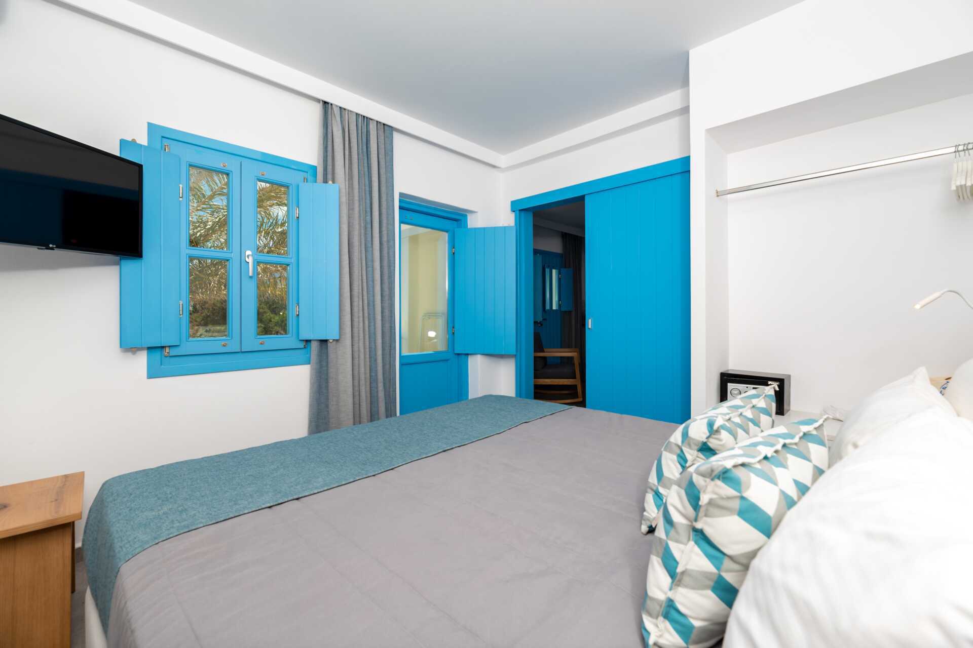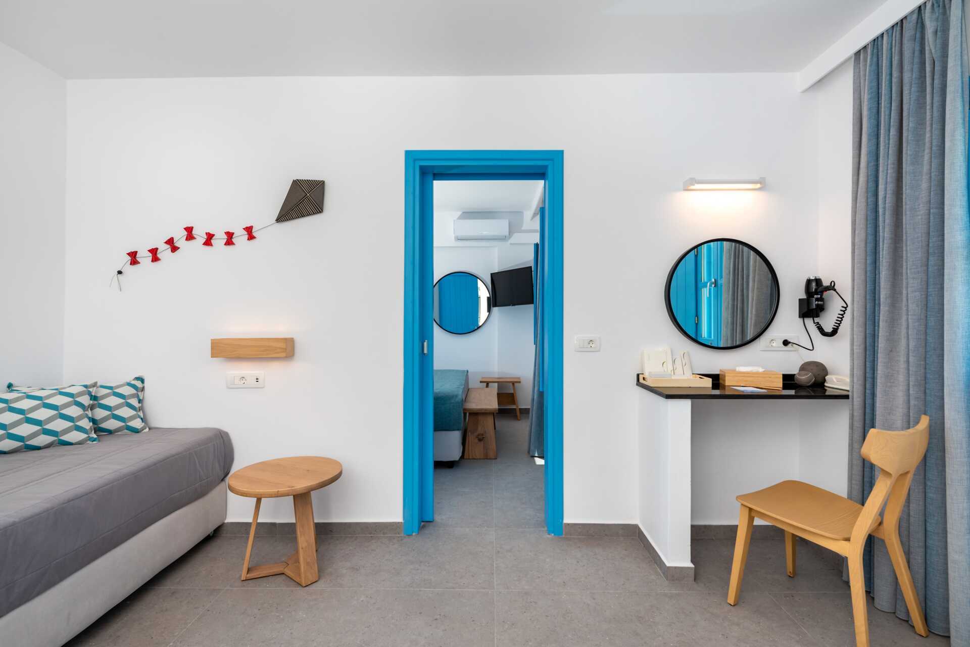 Superior-sviitti Maaparvekkeella ja rajoitetulla merinäköalalla. Sviitissä on makuuhuone ja olohuone. Parivuode. Lisävuodemahdollisuus vuodesohvasta. Maksuton wifi, ilmastointi ja tallelokero. Jääkaappi. Illy-espressokeitin. Vedenkeitin. Tv kansainvälisillä kanavilla. Rantakassi, jossa on allas- ja rantapyyhkeet. Kylpytakit ja tossut. Hiustenkuivain. Suihku ja wc. Siivous 7 krt/viikko. Alle 2-vuotiaat lapset lasketaan lisävuoteella majoittuviksi henkilöiksi.