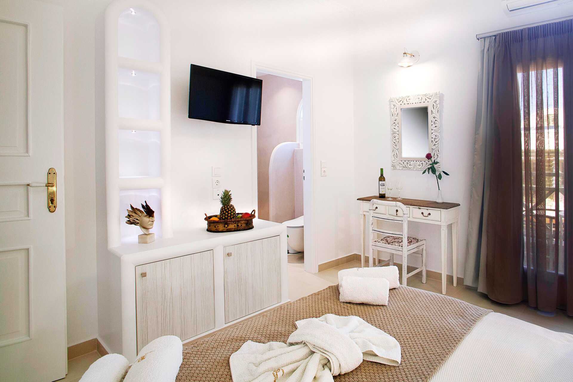 Superiorhuone, jossa on parveke. Superior-huoneet koostuvat makuuhuoneosiosta jacuzzilla sekä olohuoneosiosta. Parivuode. Lisävuodemahdollisuus vuodesohvasta. Maksuton wifi, ilmastointi ja tallelokero. Jääkaappi. Tv kansainvälisillä kanavilla. Silitystarvikkeet. Hiustenkuivain. Suihku ja wc. Siivous 7 krt/viikko.