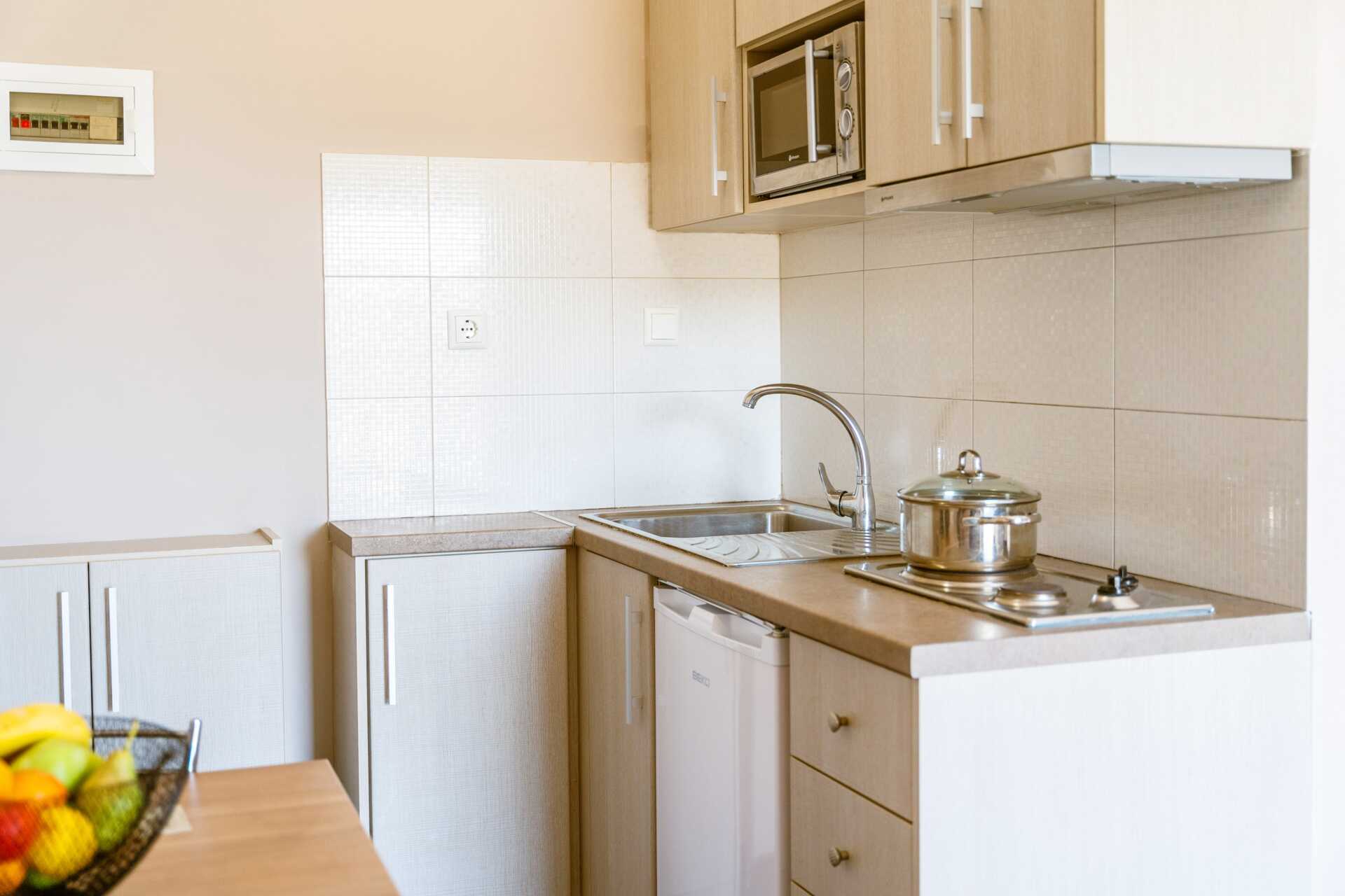 Kaksio parvekkeella. Makuuhuone sekä yhdistetty olohuone ja minikeittiö. Parivuode tai kaksi yhden hengen sänkyä. Lisävuodemahdollisuus vuodesohvasta. Minikeittiössä keittolevyt, jääkaappi, vedenkeitin, mikro ja yksinkertainen keittiövarustus. Maksuton wifi ja ilmastointi. Tv paikallisilla kanavilla. Kylpyhuoneessa suihku ja wc. Siivous 6 krt/viikko.