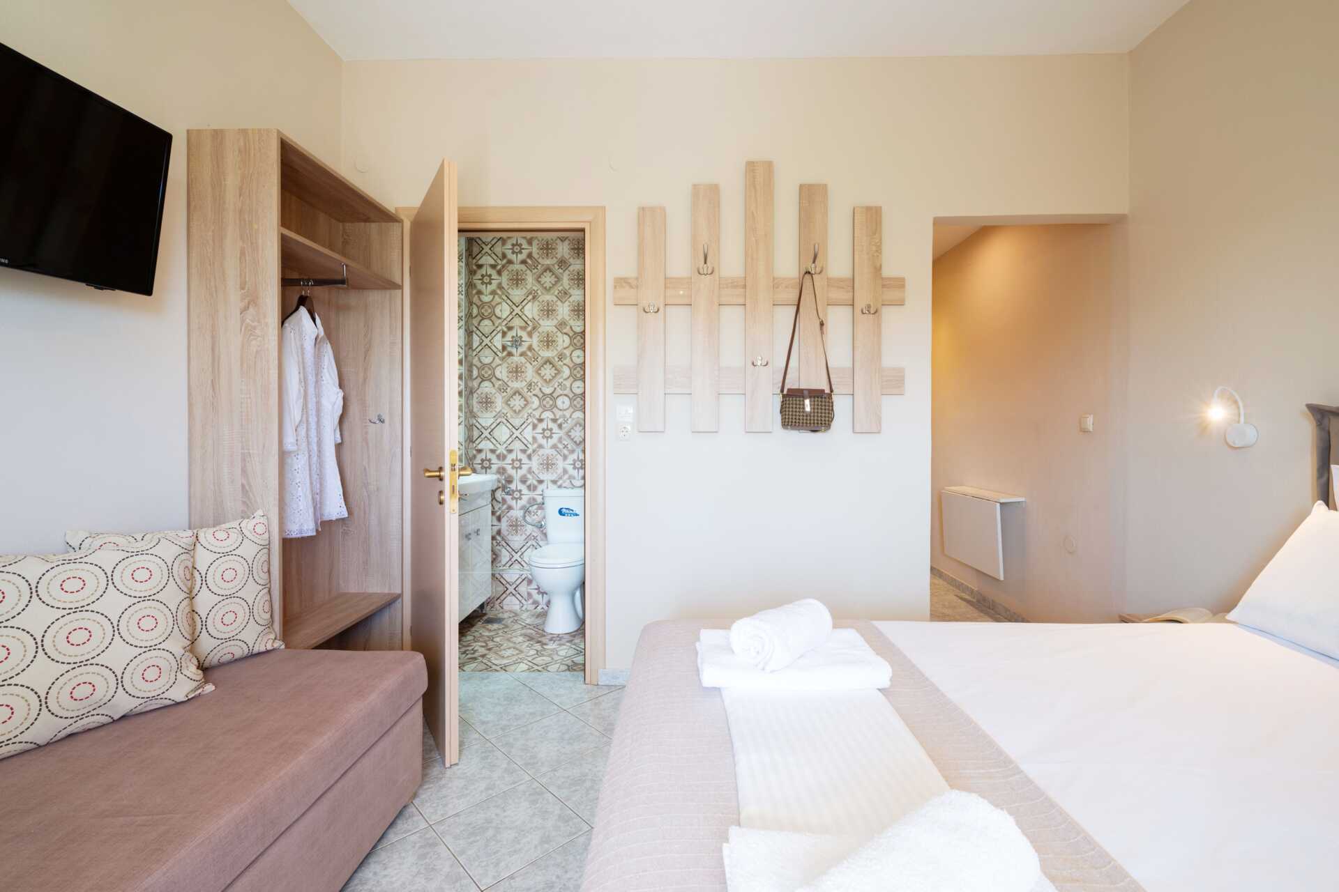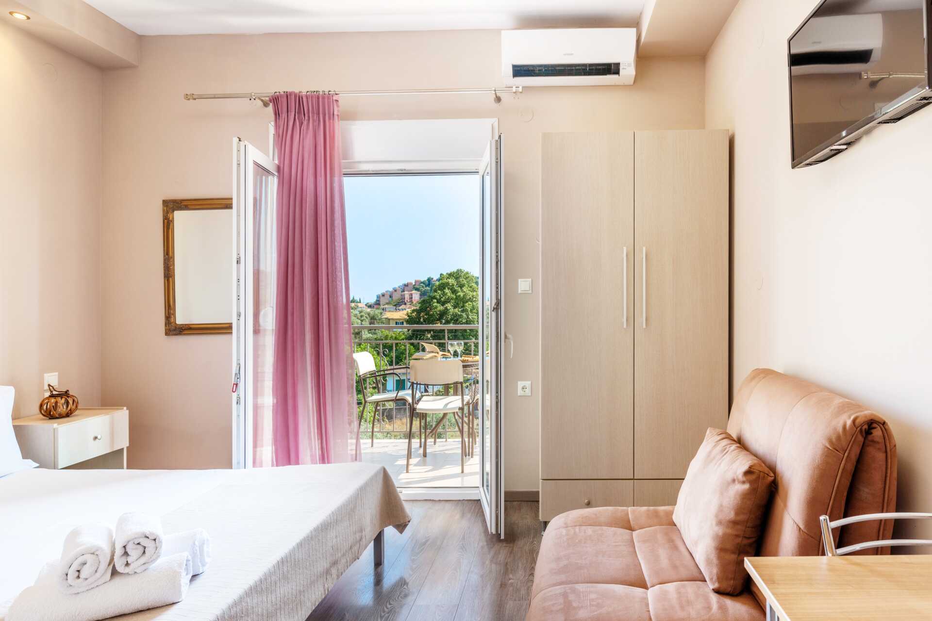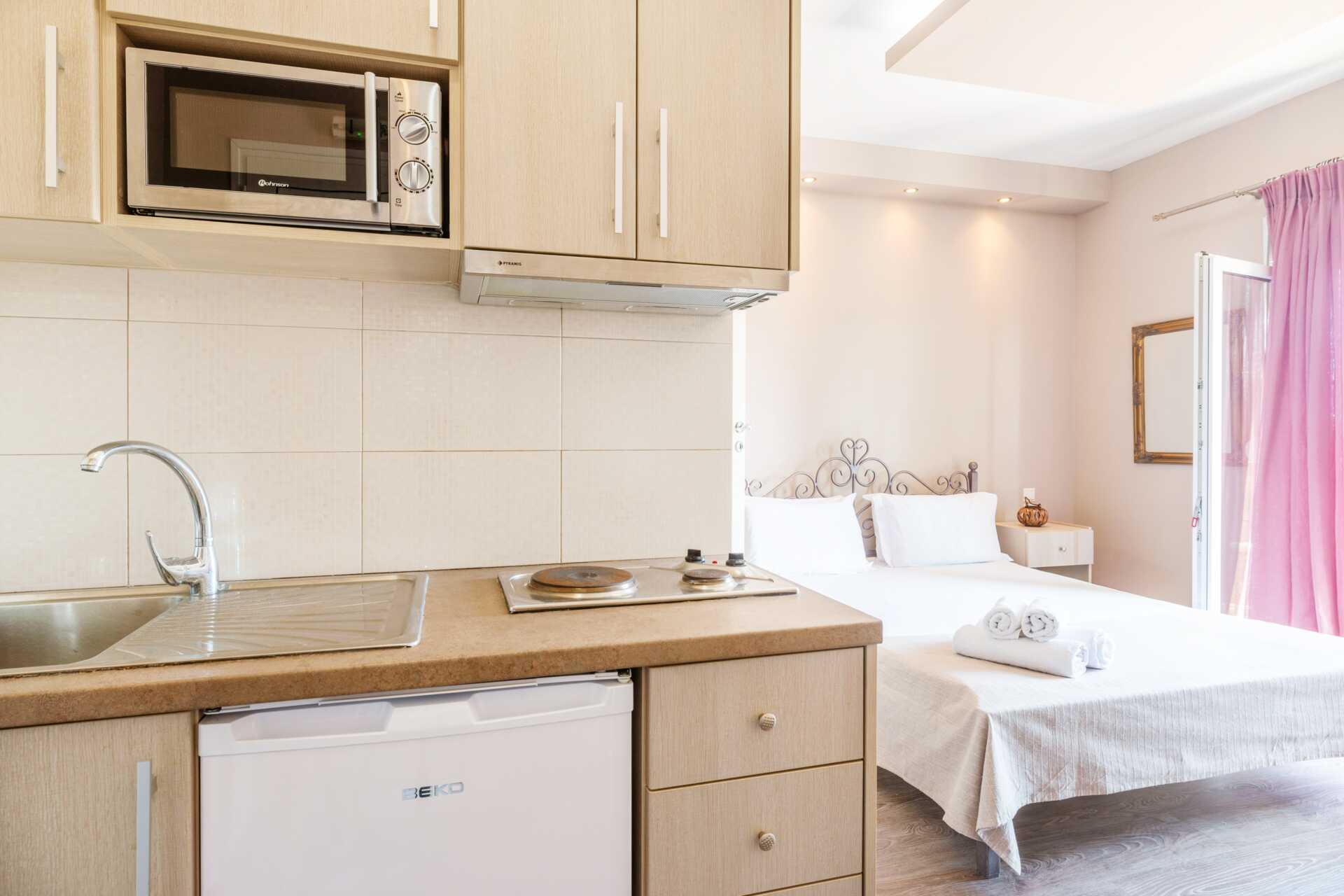 Yksiö parvekkeella. Yhdistetty makuuhuone ja minikeittiö. Parivuode tai kaksi yhden hengen sänkyä. Lisävuodemahdollisuus kokoontaitettavasta nojatuolista. Minikeittiössä keittolevyt, jääkaappi, vedenkeitin, mikro ja yksinkertainen keittiövarustus. Maksuton wifi ja ilmastointi. Tv paikallisilla kanavilla. Kylpyhuoneessa suihku ja wc. Siivous 6 krt/viikko.