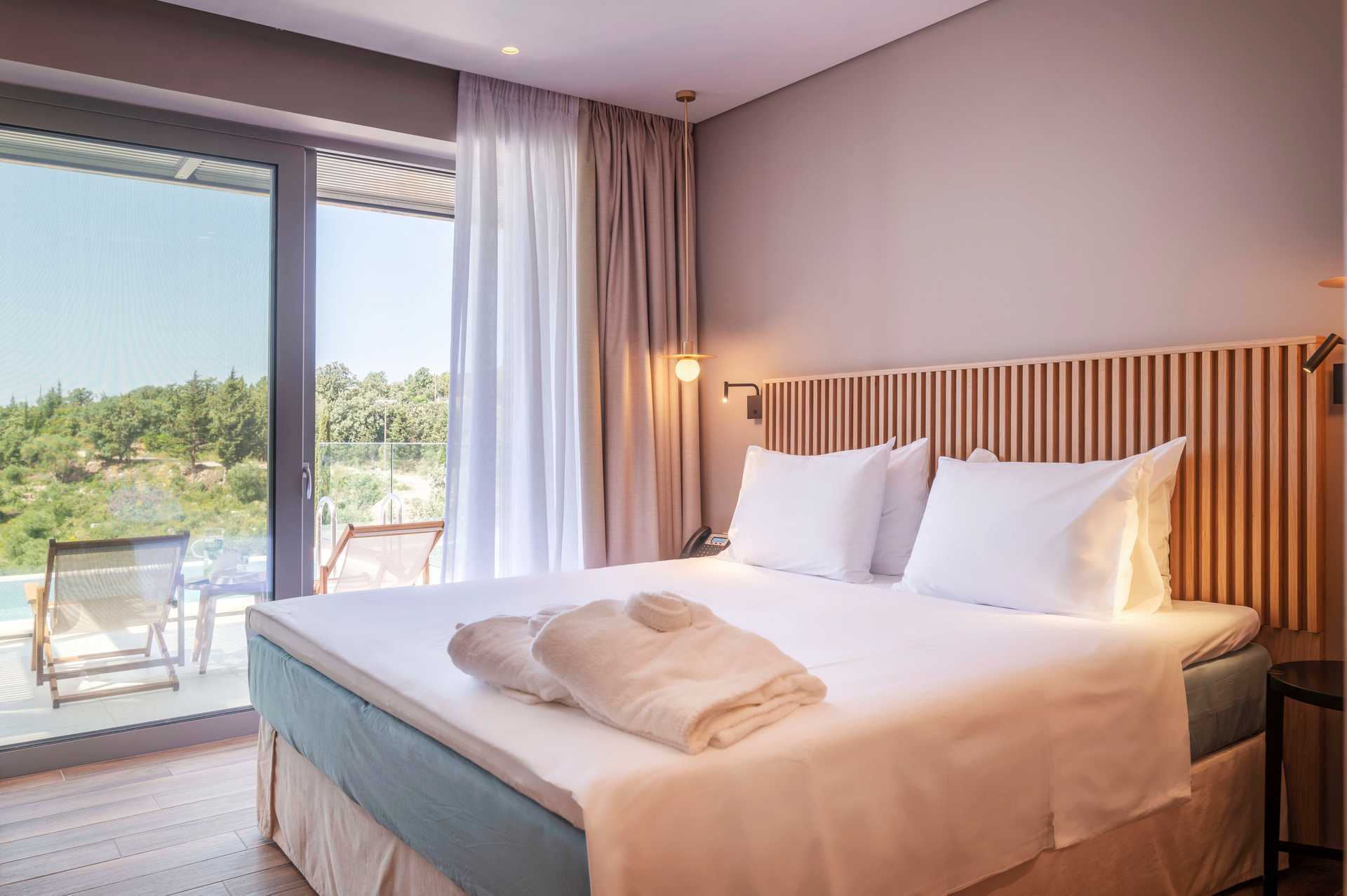 Kahden hengen huoneita omalla altaalla, ja näkymällä altaalle ja merelle. Parivuoteessa on CocoMatin lakanat. Maksuton ilmastointi, tallelokero ja wifi. Kahvikone, kapselit maksutta ja täyttö maksua vastaan. Jääkaappi. Tv kansainvälisillä kanavilla. Kaiutin lainattavissa vastaanotosta panttia vastaan. Hiustenkuivain. Suihku ja wc. Siivous 7 krt/viikko.