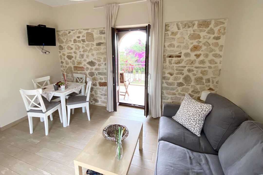 Perhehuone parvekkeella tai terassilla, parvekkeella tai maaterassilla. Makuuhuone ja olohuone. Parivuode. Lisävuodemahdollisuus vuodesohvasta. Maksuton wifi - yhteys voi olla hidas joissakin huoneistoissa, ilmastointi ja tallelokero. Jääkaappi. Vedenkeitin. Tv kansainvälisillä kanavilla. Hiustenkuivain. Suihku ja wc. Siivous 7 krt/viikko.
