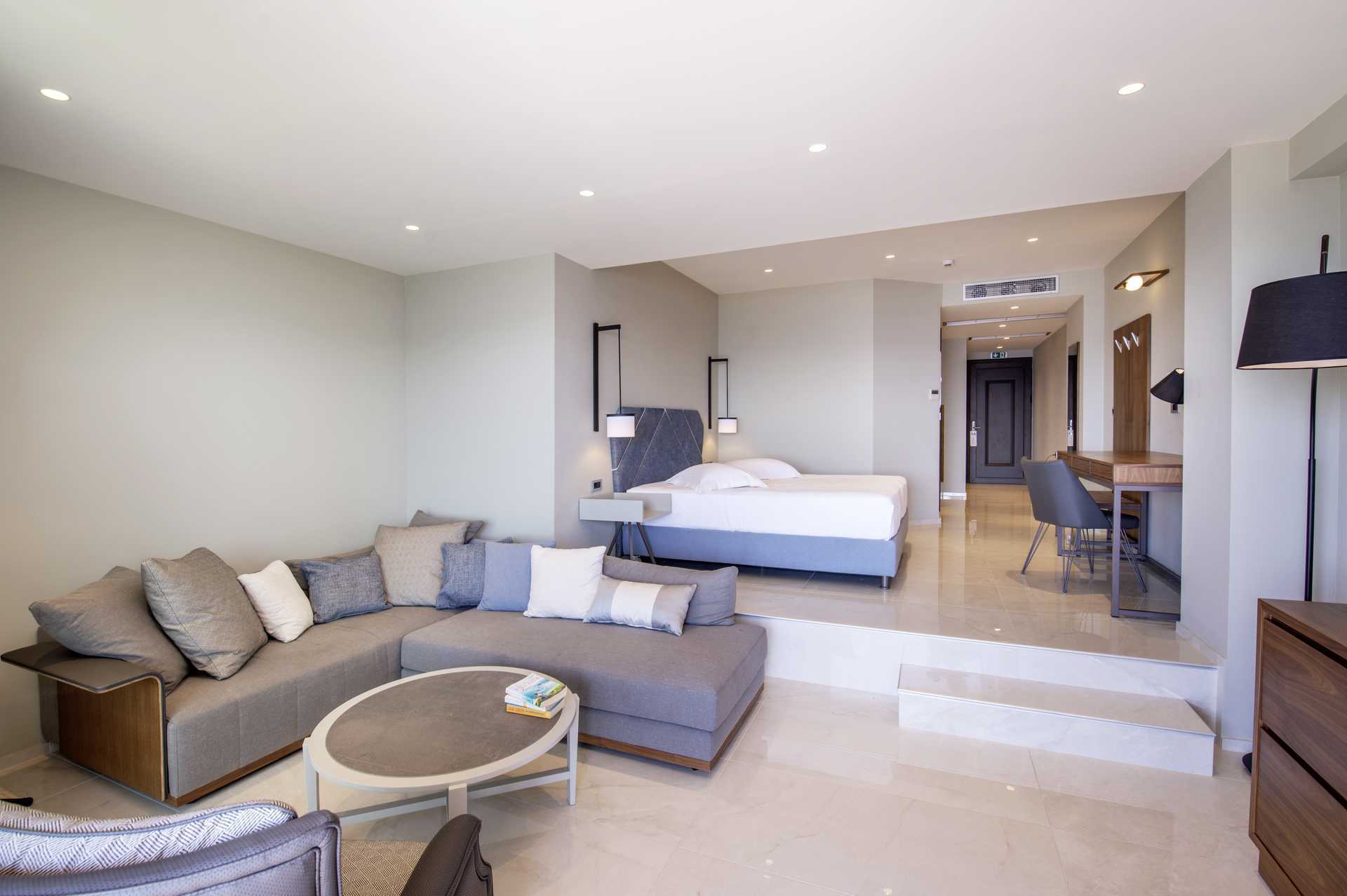 Juniorsviittejä, joissa on parveke. Parivuode tai kaksi yhden hengen vuodetta. Lisävuodemahdollisuus vuodesohvasta ja levitettävästä nojatuolista. Tv kansainvälisillä kanavilla. Minibaari. Maksuton wifi, ilmastointi ja tallelokero. Hiustenkuivain. Kylpytakit ja tossut. Kylpyamme/suihku ja wc. Parveke. Siivous 7 krt/viikko.