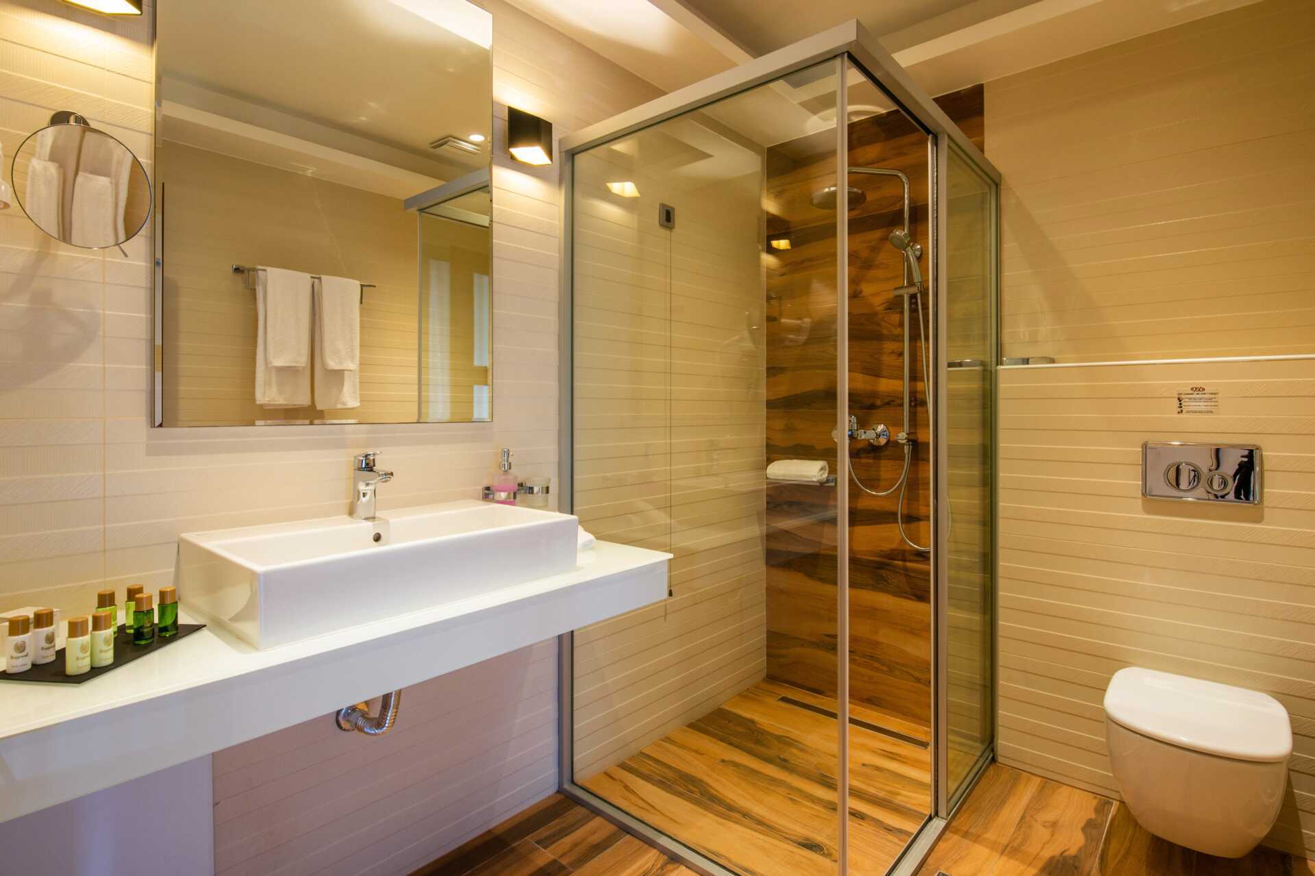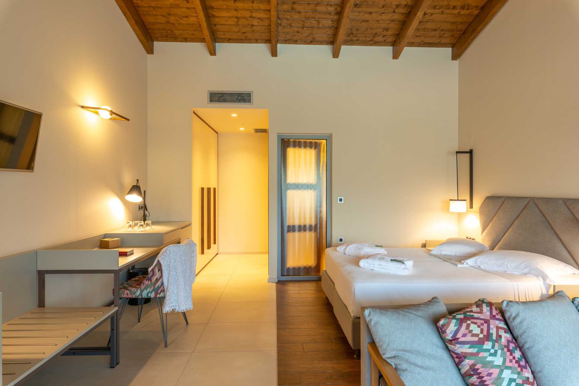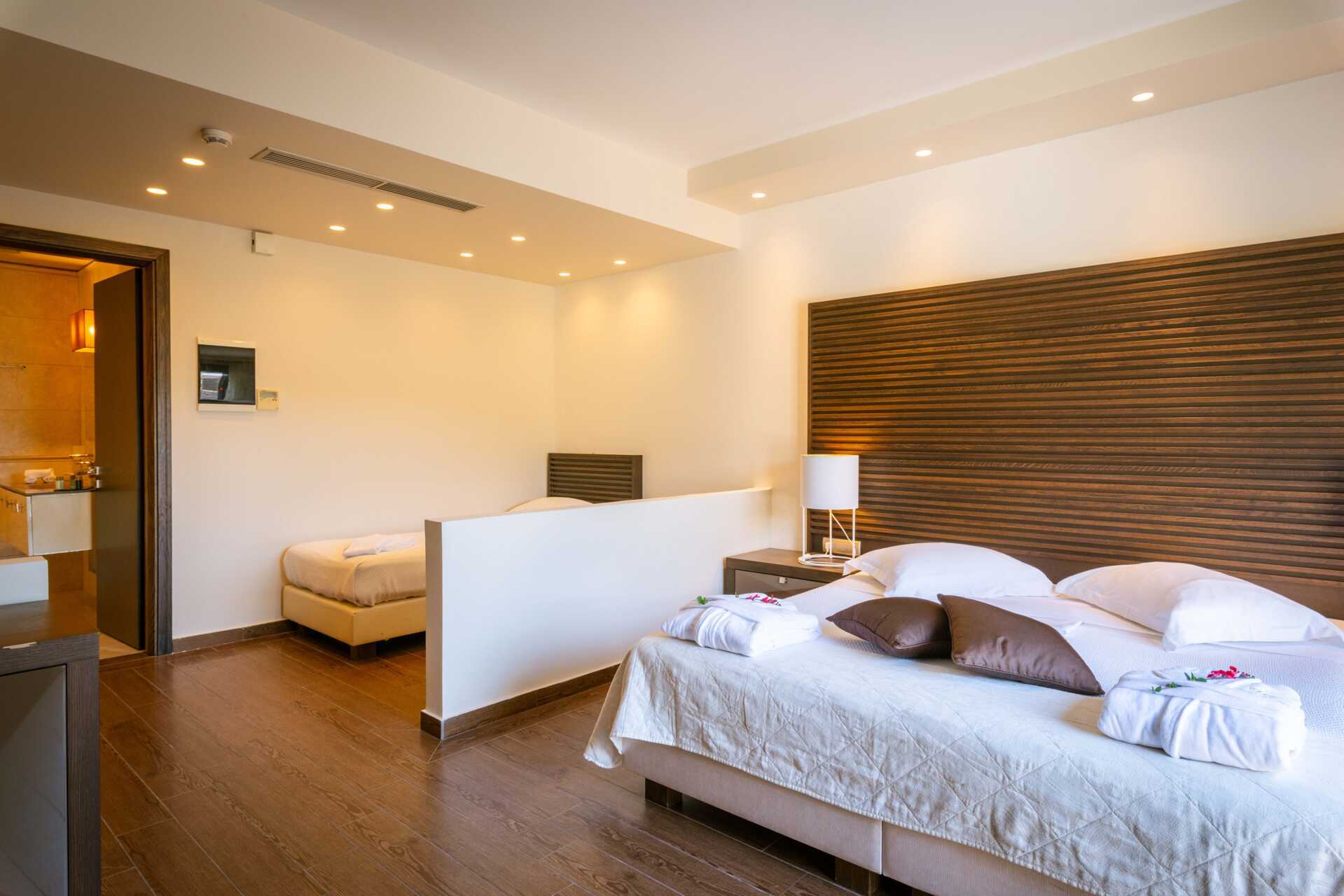 Kahden huoneen villa, oma allas (noin 24 m2) maaterassilla. Aurinkotuolit ja ruokailutila sekä tikkaat alas terassilla olevalle altaalle. Huvilassa on yksi makuuhuone ja olohuone, ja se sijaitsee päärakennuksen vieressä. Parivuode. Lisävuodemahdollisuus kahteen vuodesohvaan. Maksuton wifi, tallelokero ja ilmastointi. Kaksi jääkaappia. Espresso kahvikone. Vedenkeitin. Jokaisessa huoneessa on televisio kansainvälisillä kanavilla. Kylpytakit ja tossut. Hiustenkuivain. Kylpyhuoneessa jacuzzi, erillinen suihku ja wc. Siivous 7 krt/viikko.
