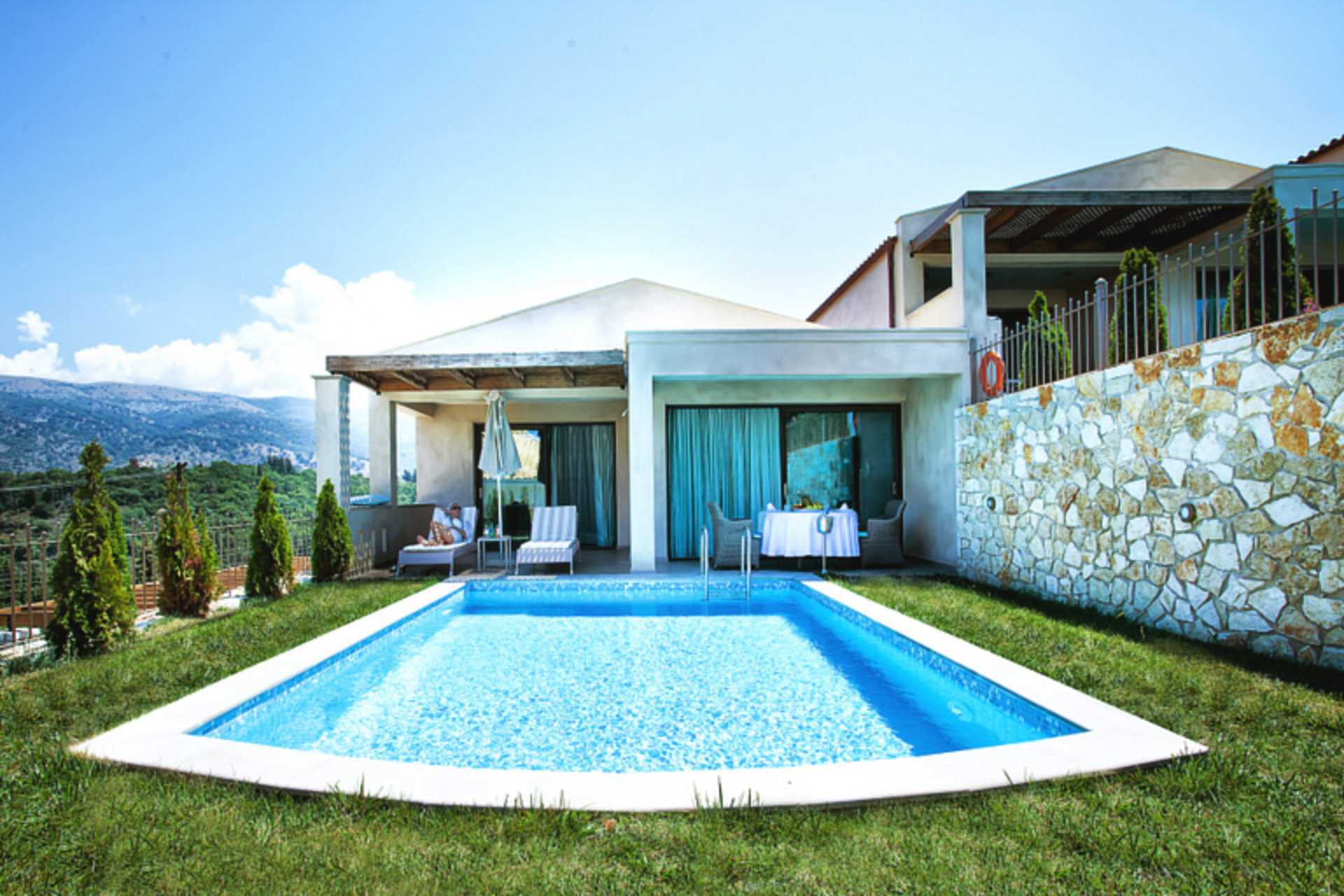 Kahden huoneen villoja, joissa on maaterassi ja oma allas (24,5 m2), aurinkotuolit ja ruokapöytä lähellä allasta. Villat koostuvat makuuhuoneesta ja olohuoneesta ja sijaitsevat päärakennuksen vastapäätä. Parivuode. Lisävuodemahdollisuus kahdesta vuodesohvasta. Maksuton wifi, ilmastointi ja tallelokero. Kaksi jääkaappia. Minibaari. Tv kansainvälisillä kanavilla kummassakin huoneessa. Kylpytakit ja tossut. Hiustenkuivain. Jacuzzi, erillinen suihku ja wc. Siivous 7 krt/viikko.
