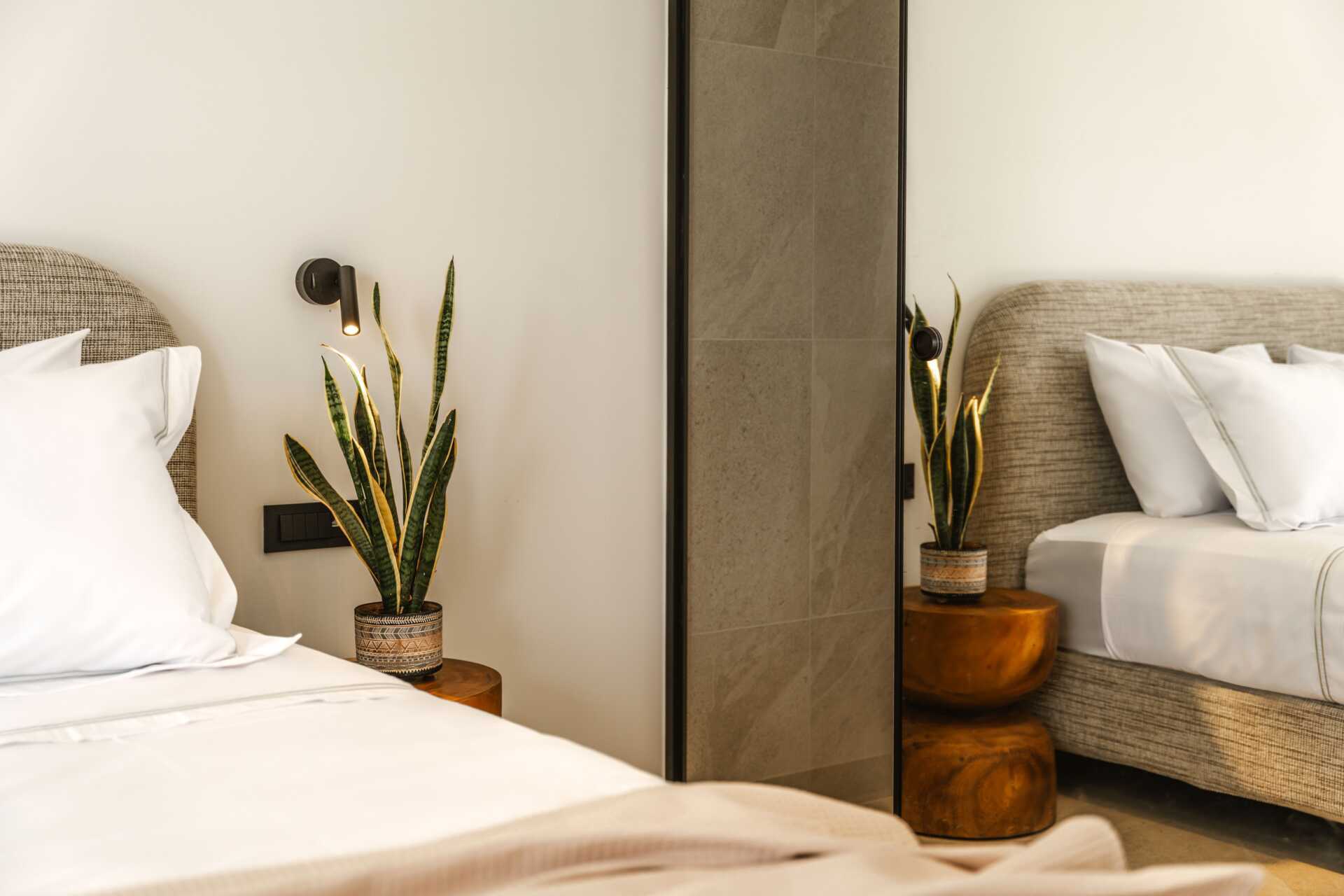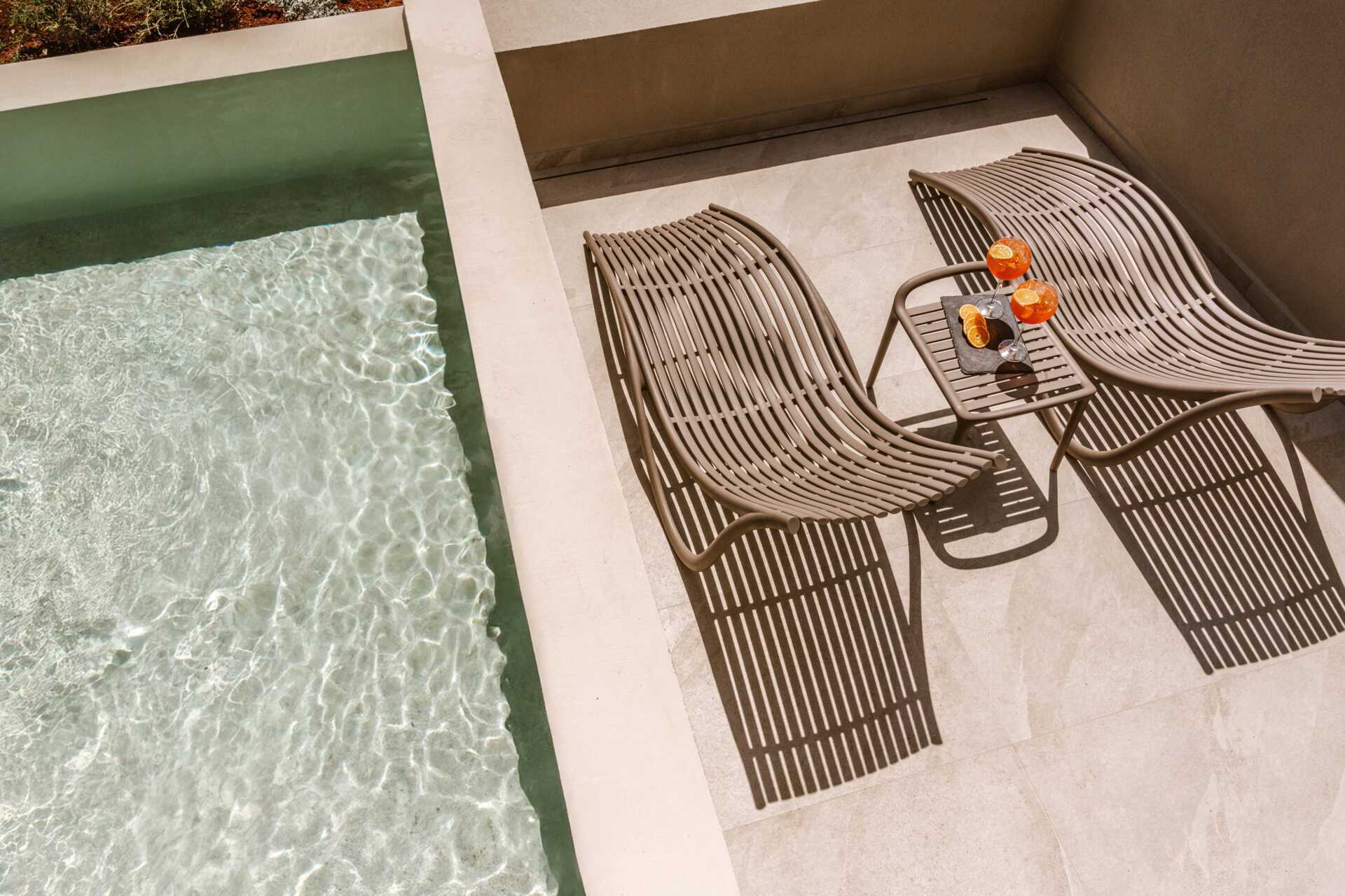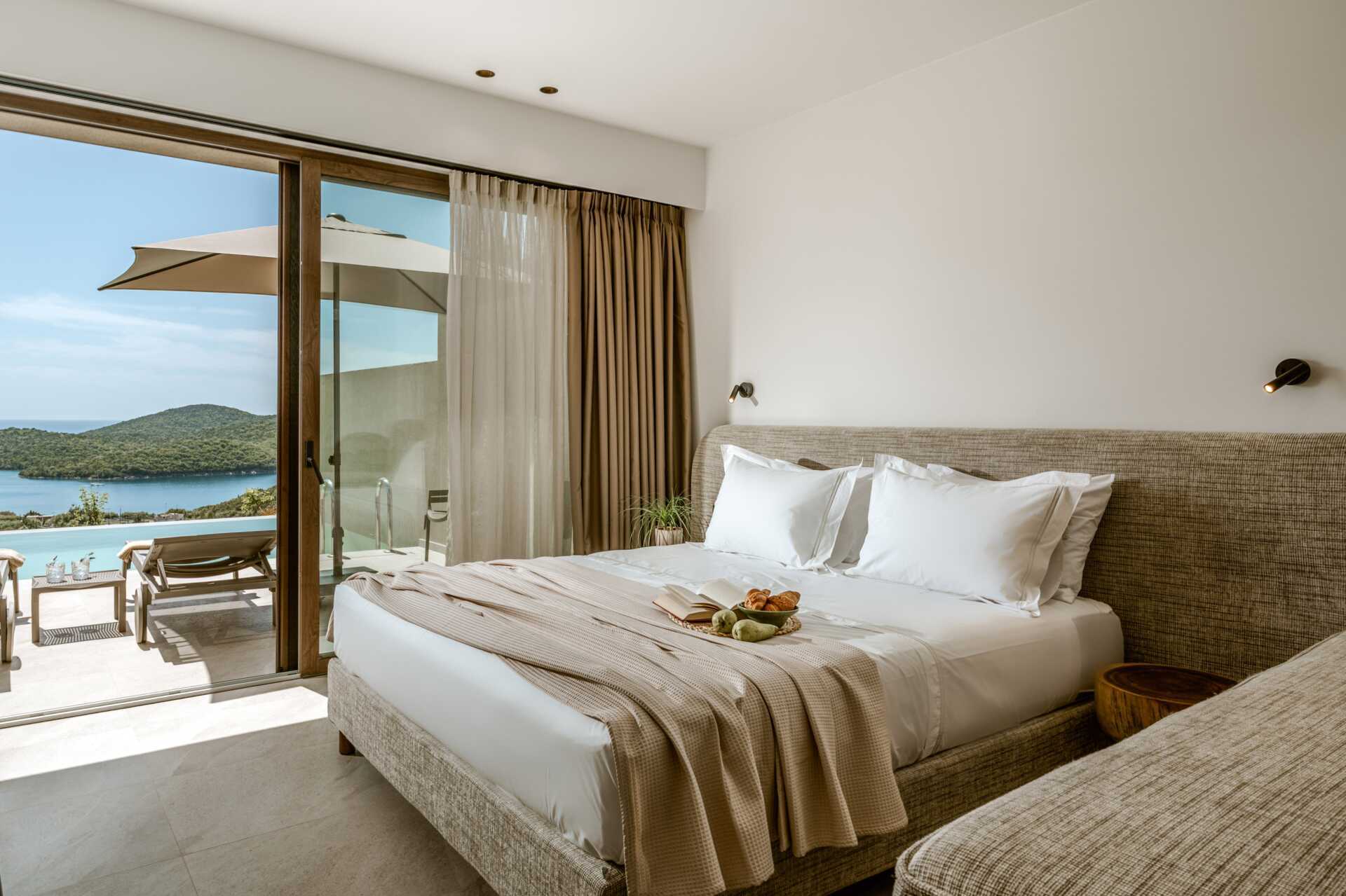 Kahden hengen huone maaterassilla ja oma uima-allas merinäköalalla. Parivuode. Maksuton wifi, ilmastointi ja tallelokero. Minibaari. Vedenkeitin ja teetä. Tv kansainvälisillä kanavilla. Hiustenkuivain. Kylpyhuoneessa suihku ja wc. Siivous 6 krt/viikko.