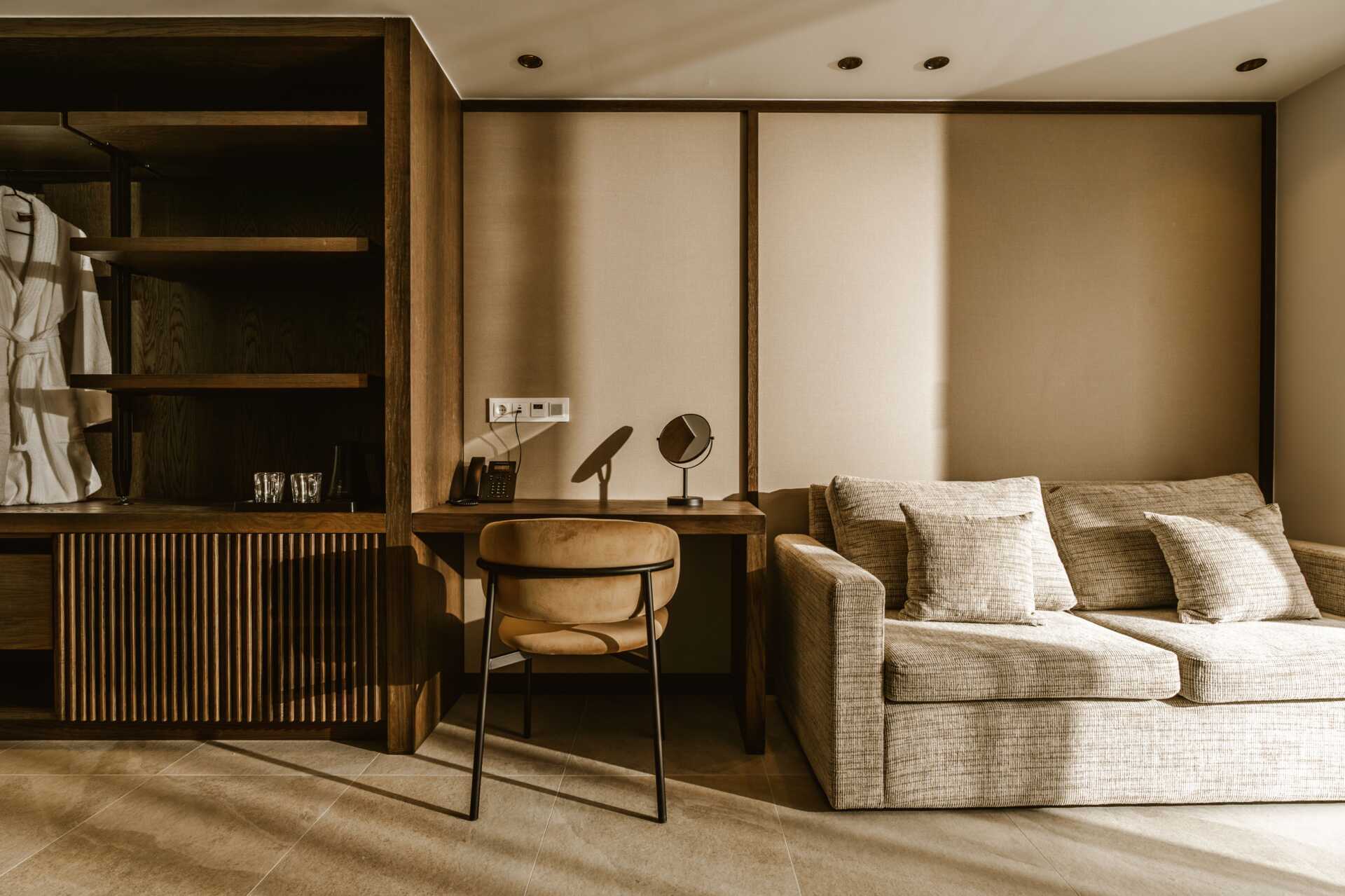 Junior-sviitissä on pieni allas ja merinäköala maaterassilla. Parivuode. Lisävuodemahdollisuus yhden hengen vuoteesta. Maksuton wifi, ilmastointi ja tallelokero. Minibaari. Vedenkeitin ja teetä. Tv kansainvälisillä kanavilla. Hiustenkuivain. Suihku ja wc. Siivous 6 krt/viikko.