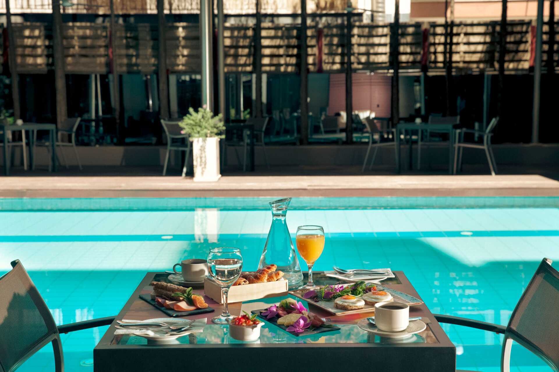 Hotellissa on kutsuva allasalue, jossa on aurinkotuolit, aurinkovarjot ja allasbaari, josta saa kevyitä välipaloja ja virkistäviä virvokkeita.