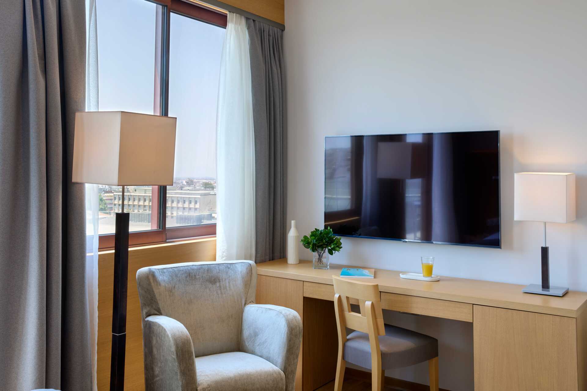 Yhden hengen huone ilman ulkotilaa. Yhden hengen sänky. Tyynymenu Maksuton wifi, ilmastointi ja tallelokero. Tv kansainvälisillä kanavilla. Espressokone. Vedenkeitin ja teetä. Kylpytakit ja tossut Hiustenkuivain. Amme tai suihku ja wc. Siivous 7 krt/viikko.