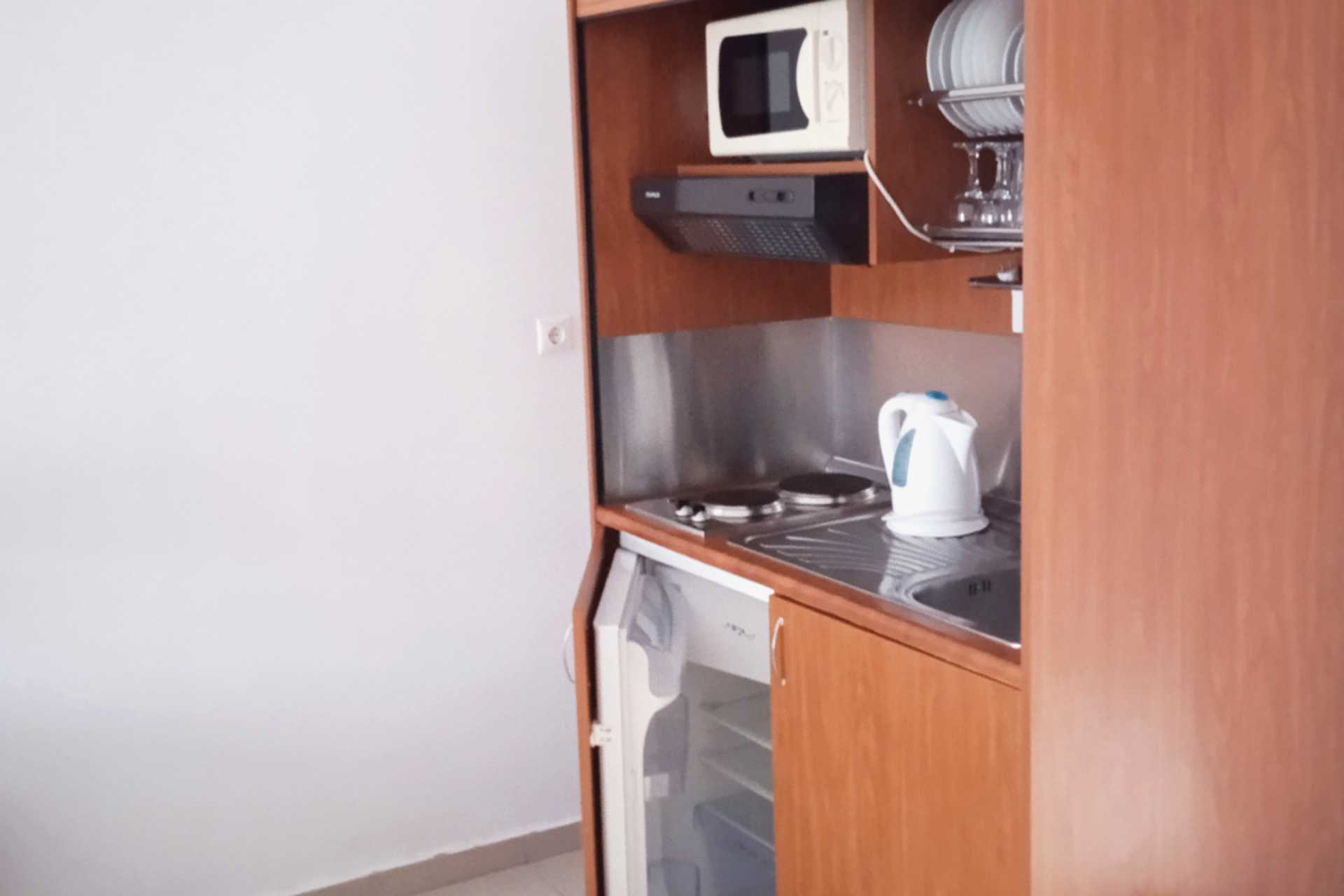 Yksiöitä, joissa on yhdistetty makuuhuone ja minikeittiö. Parivuode tai kaksi yhden hengen vuodetta. Lisävuodemahdollisuus vuodesohvasta. Minikeittiö, jossa on jääkaappi, keittolevy, mikro, vedenkeitin ja yksinkertainen keittiövarustus. Maksuton wifi, ilmastointi ja tallelokero. Tv kansainvälisillä kanavilla. Hiustenkuivain. Suihku ja wc. Siivous 3 krt/viikko.