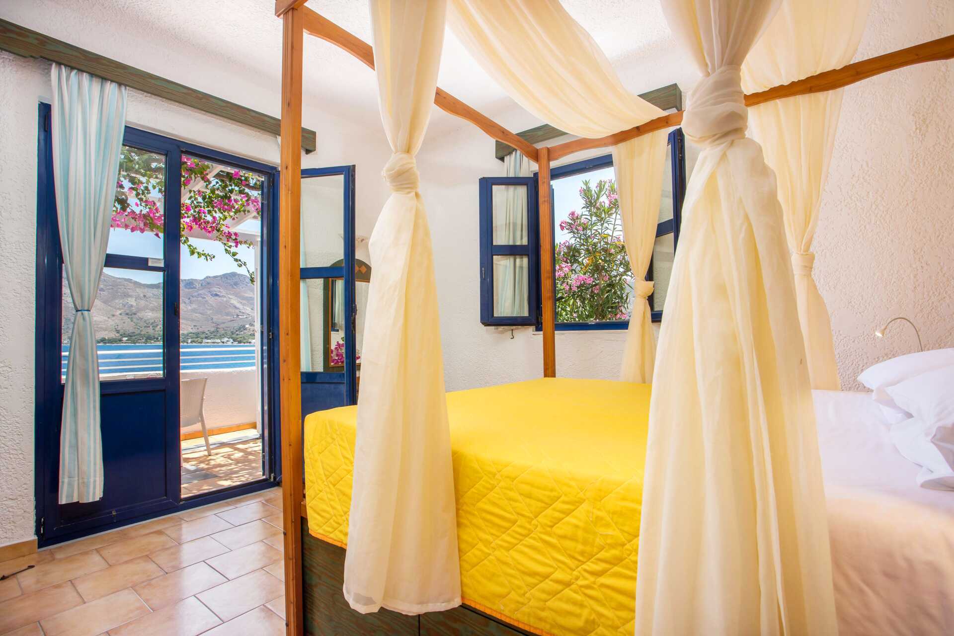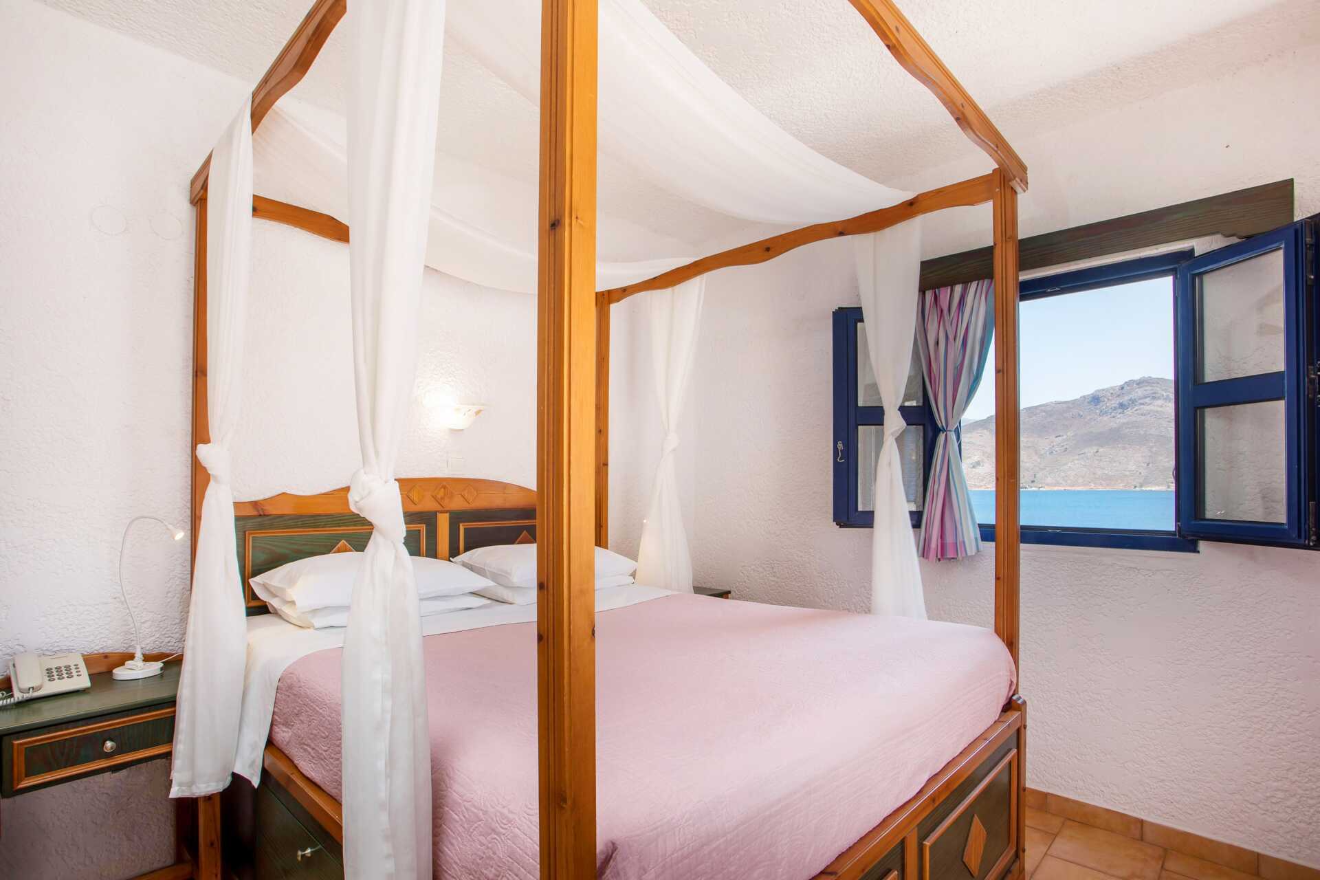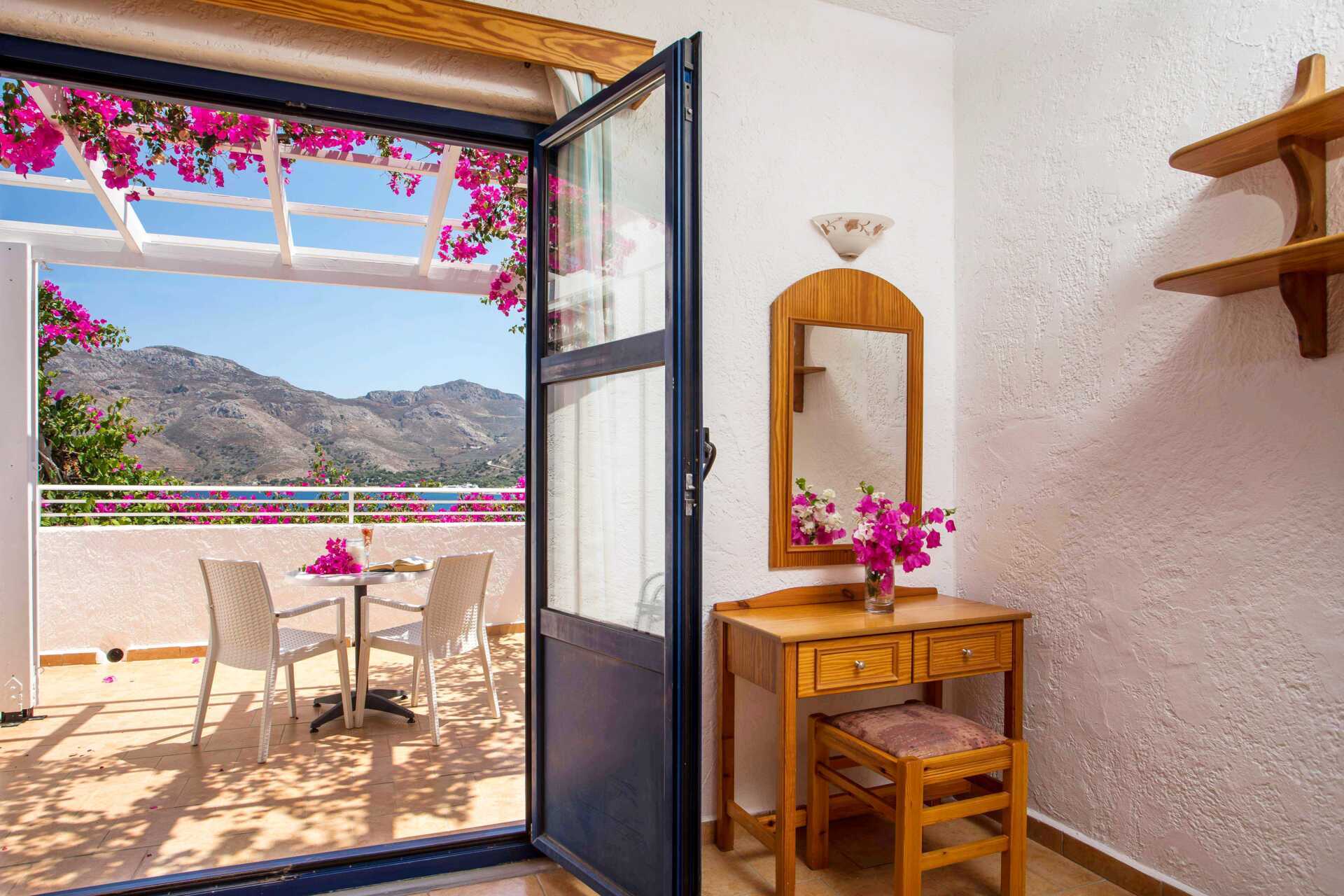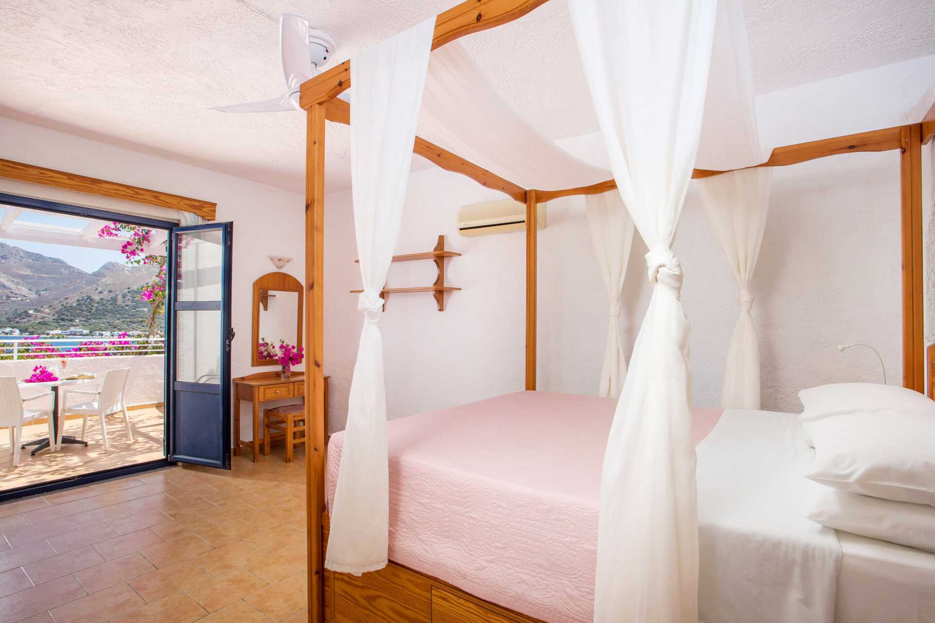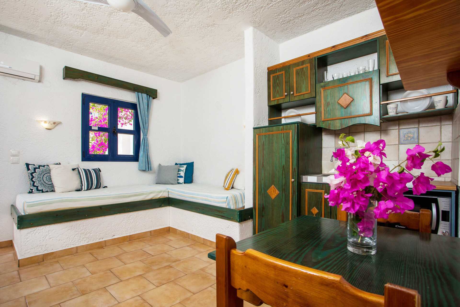 Kaksioita, joissa on parveke merinäköalalla. Makuuhuone ja yhdistetty olohuone/minikeittiö. Kaksi erillistä vuodetta tai parivuode. Lisävuodemahdollisuus vuodesohvasta. Minikeittiö, jossa jääkaappi, mikro, leivänpaahdin, pressopannu, vedenkeitin ja yksinkertainen keittovarustus. Maksuton tallelokero ja wifi. Keskusilmastointi lisämaksusta. Tv kansainvälisillä kanavilla. Hiustenkuivain. Suihku ja wc. Siivous 3 krt/viikko.