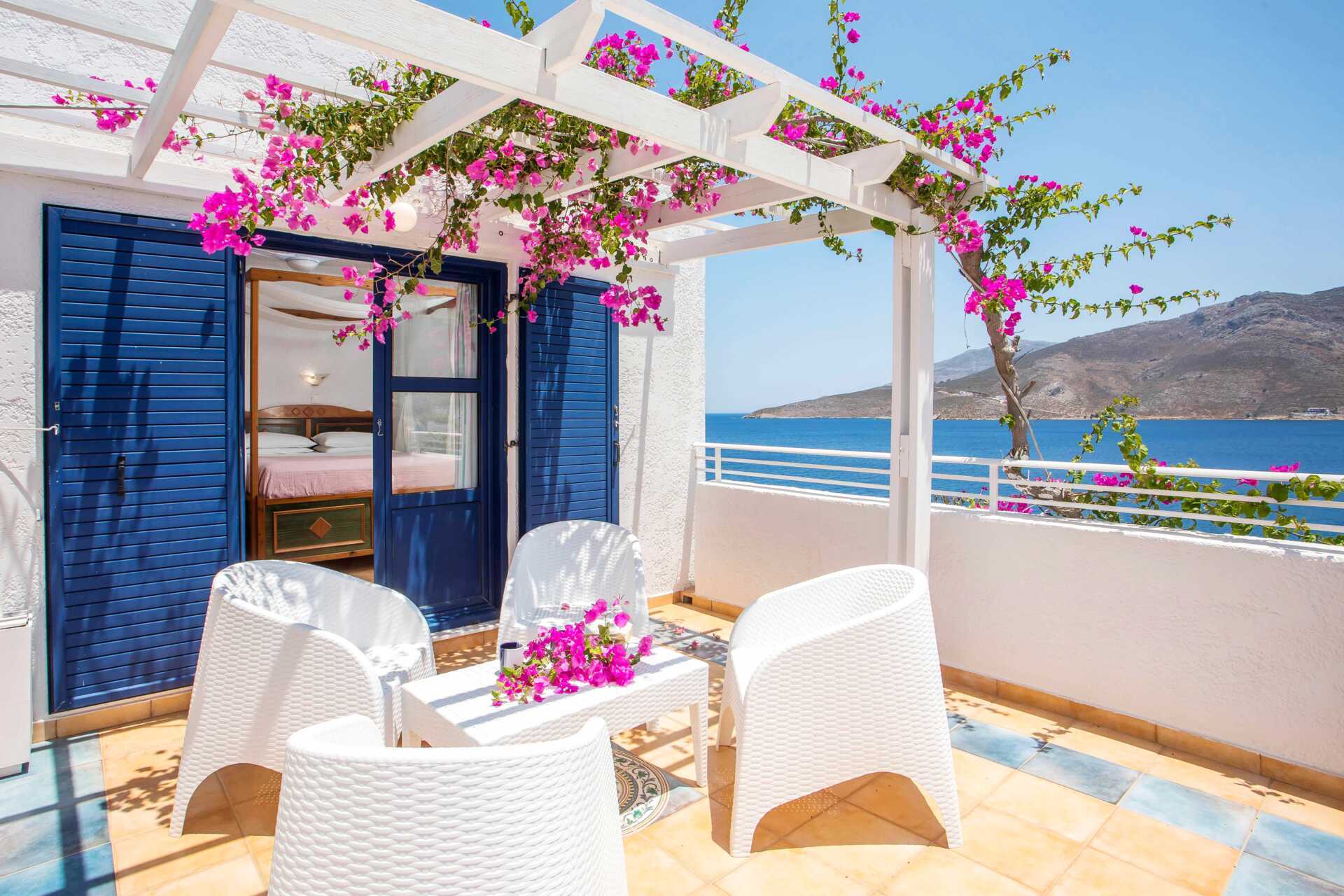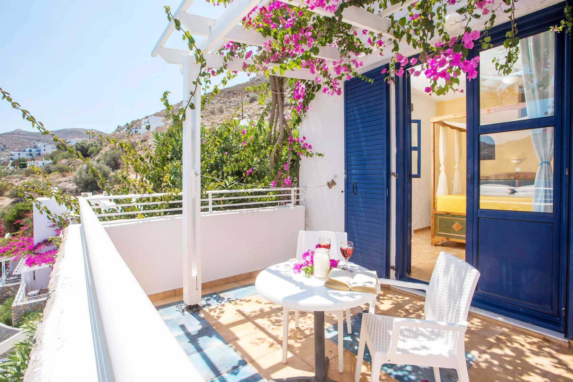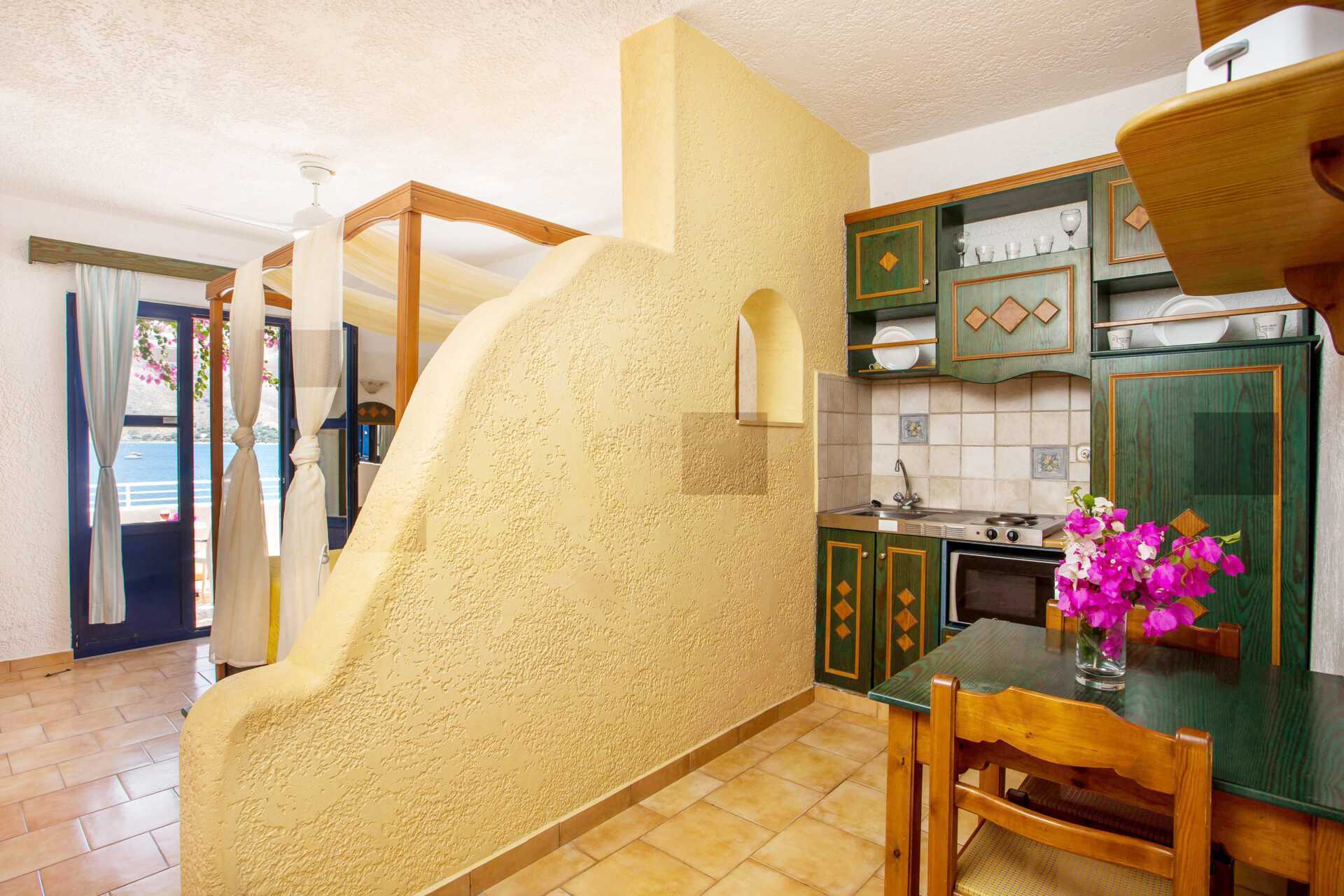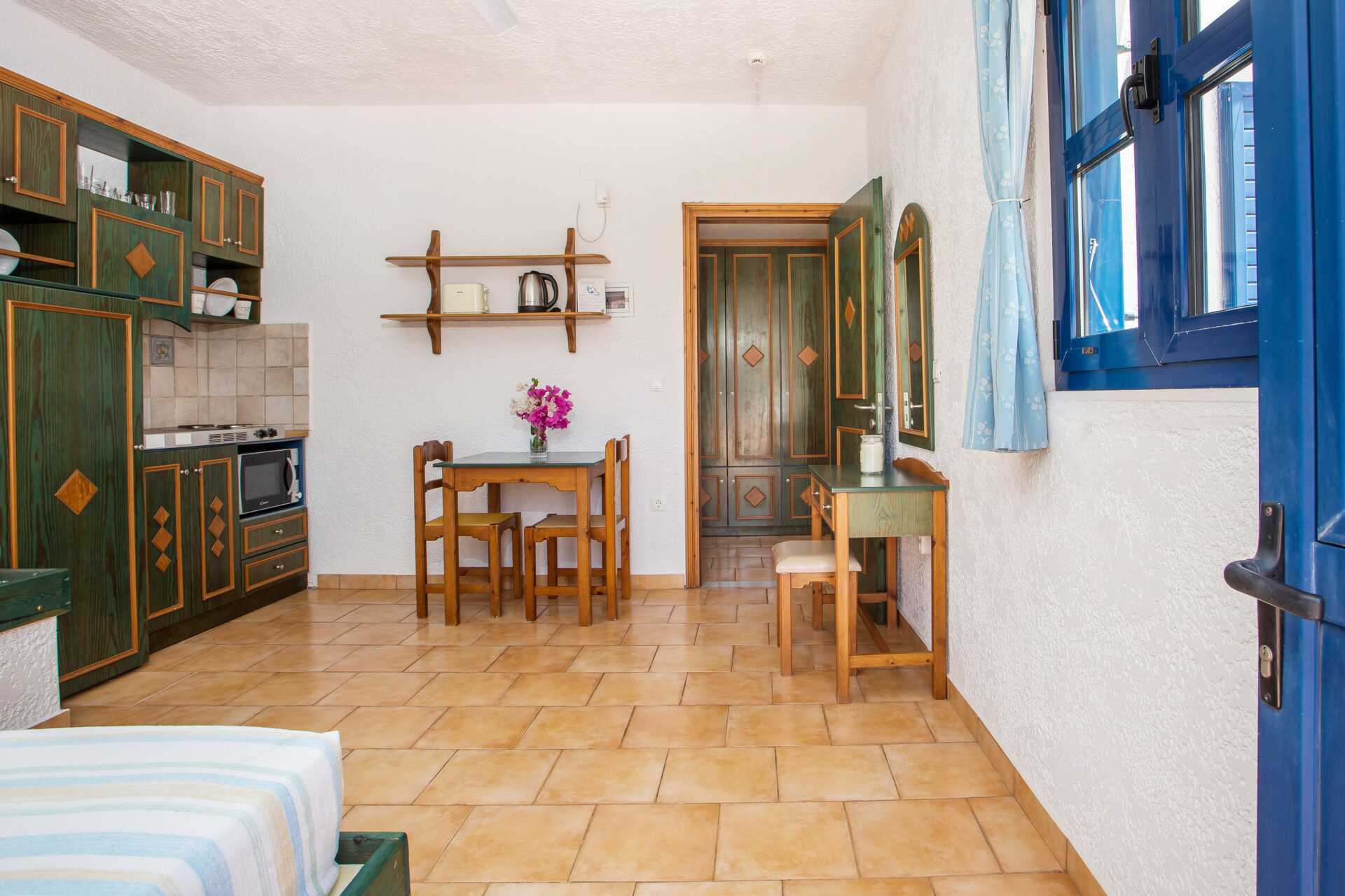 Yksiöitä, joissa on parveke merinäköalalla. Kaksi erillistä vuodetta tai parivuode. Minikeittiö, jossa jääkaappi, mikro, leivänpaahdin, vedenkeitin, pressopannu ja yksinkertainen keittovarustus. Maksuton tallelokero ja wifi. Keskusilmastointi lisämaksusta. Tv kansainvälisillä kanavilla. Hiustenkuivain. Suihku ja wc. Siivous 3 krt/viikko.