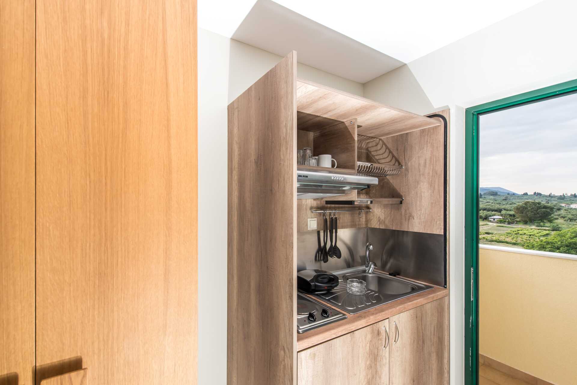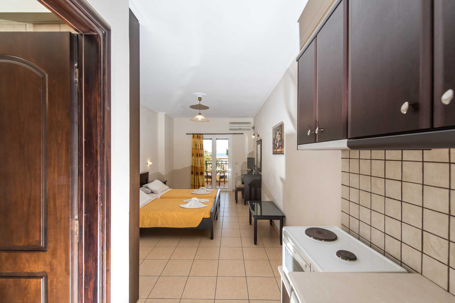 Superior-yksiö parvekkeella. Yhdistetty makuuhuone ja minikeittiö. Parivuode tai kaksi yhden hengen sänkyä. Minikeittiö, jossa on keittolevyt ja jääkaappi, vedenkeitin, kahvinkeitin, voileipägrilli ja yksinkertaiset keittiövälineet. Maksuton wifi. Ilmastointi ja tallelokero lisämaksusta. Tv kansainvälisillä kanavilla. Hiustenkuivain. Suihku ja wc. Siivous 3 krt/viikko. Alle 2-vuotiaat lapset lasketaan lisävuoteella majoittuviksi henkilöiksi.