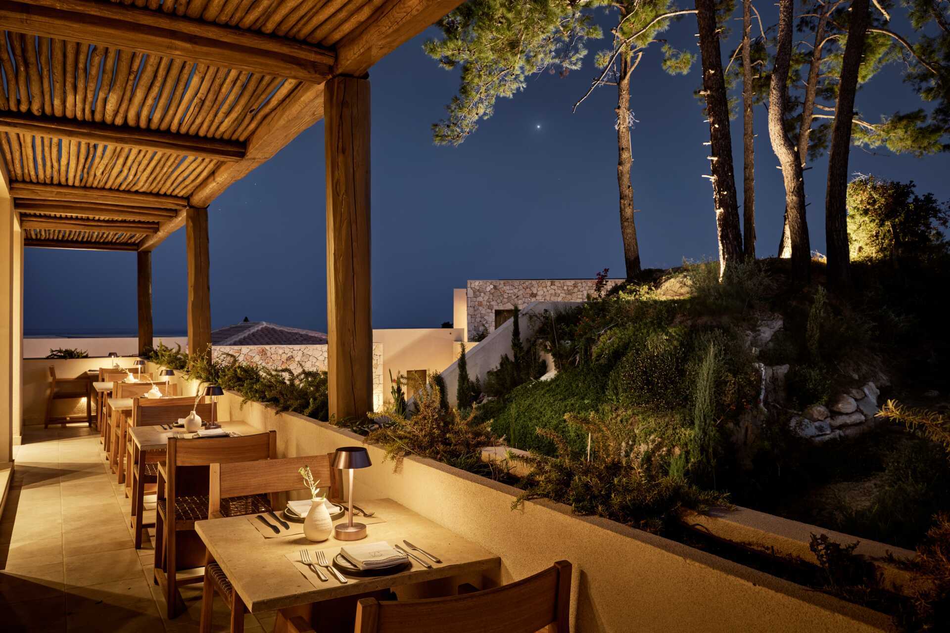 Buffetravintolassa tarjoillaan joka aamu aamupalaa, jossa on herkullisia kreikkalaisen keittiön elementtejä. Päivällä hotelli Kafeteria on avoinna aamusta myöhäiseen iltapäivään. Tarjolla on kuumia ja kylmiä juomia, brunssi ja laaja valikoima välipaloja. Illalla voit rentoutua à la carte -ravintola Verde Rugassa, josta on kauniit näkymät Joonianmerelle. Täällä tarjoillaan hyvin valmistettuja ruokia, jotka on valmistettu paikallisista tuotteista ja monista hotellin oman puutarhan raaka-aineista.