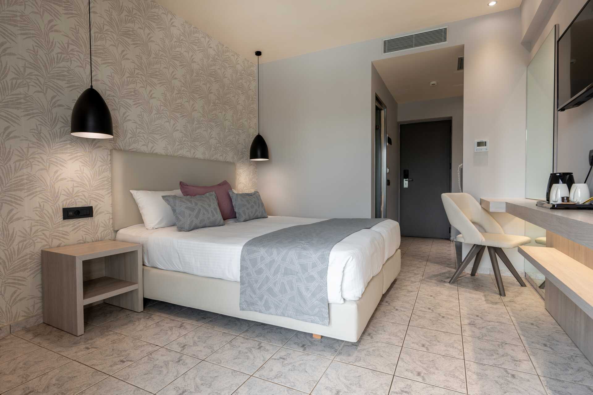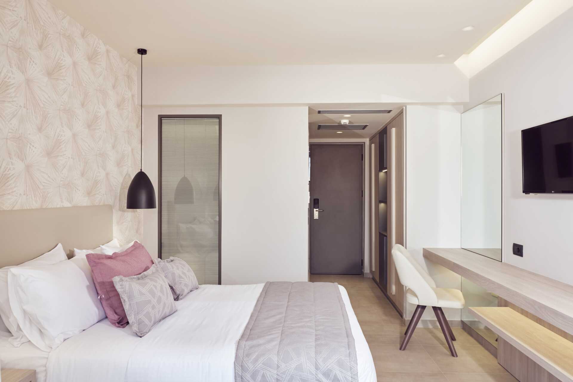 Kahden hengen huone parvekkeella. Parivuode tai kaksi yhden hengen sänkyä. Lisävuodemahdollisuus kokoontaitettavassa nojatuolissa. Maksuton wifi ja ilmastointi. Tallelokero lisämaksusta. Jääkaappi. Vedenkeitin, kahvia ja teetä. Tv kansainvälisillä kanavilla. Hiustenkuivain. Kylpyhuoneessa suihku ja wc. Siivous 7 krt/viikko. Alle 2-vuotiaat lapset lasketaan lisävuoteella majoittuviksi henkilöiksi.