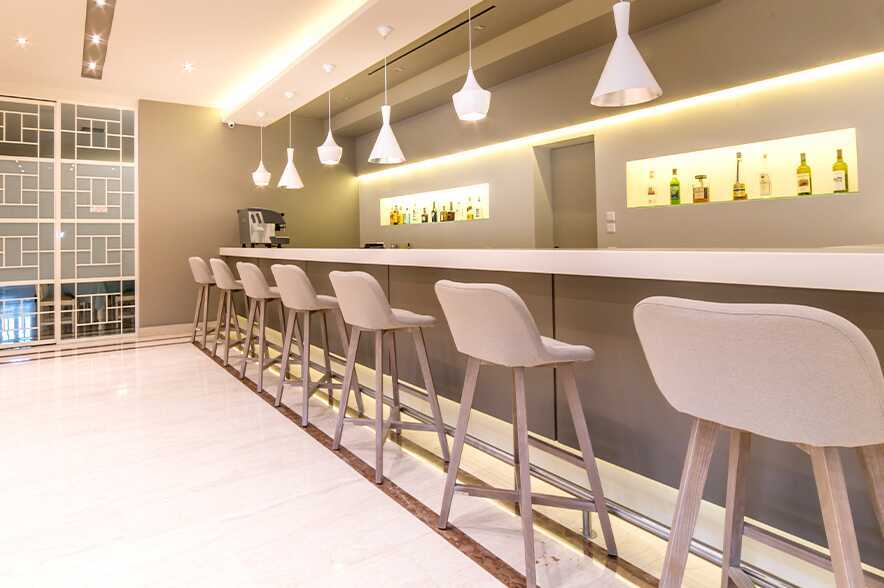Ravintola, joka tarjoaa aamiaista ja iltaisin á la carte -annoksia. Baari.