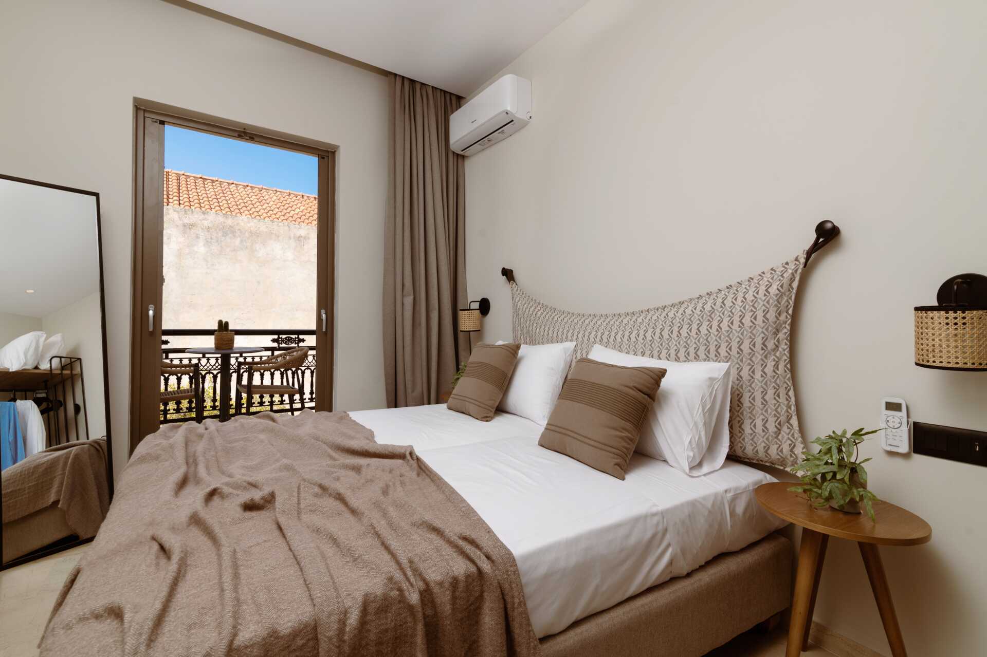 Kahden hengen huone parvekkeella, sivurakennus. Parivuode tai kaksi yhden hengen sänkyä. Maksuton wifi, ilmastointi ja tallelokero. Jääkaappi. Vedenkeitin. Tv kansainvälisillä kanavilla. Kylpyhuoneessa suihku ja wc. Siivous 7 krt/viikko.