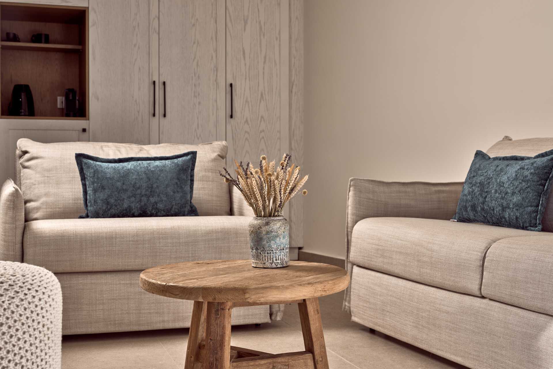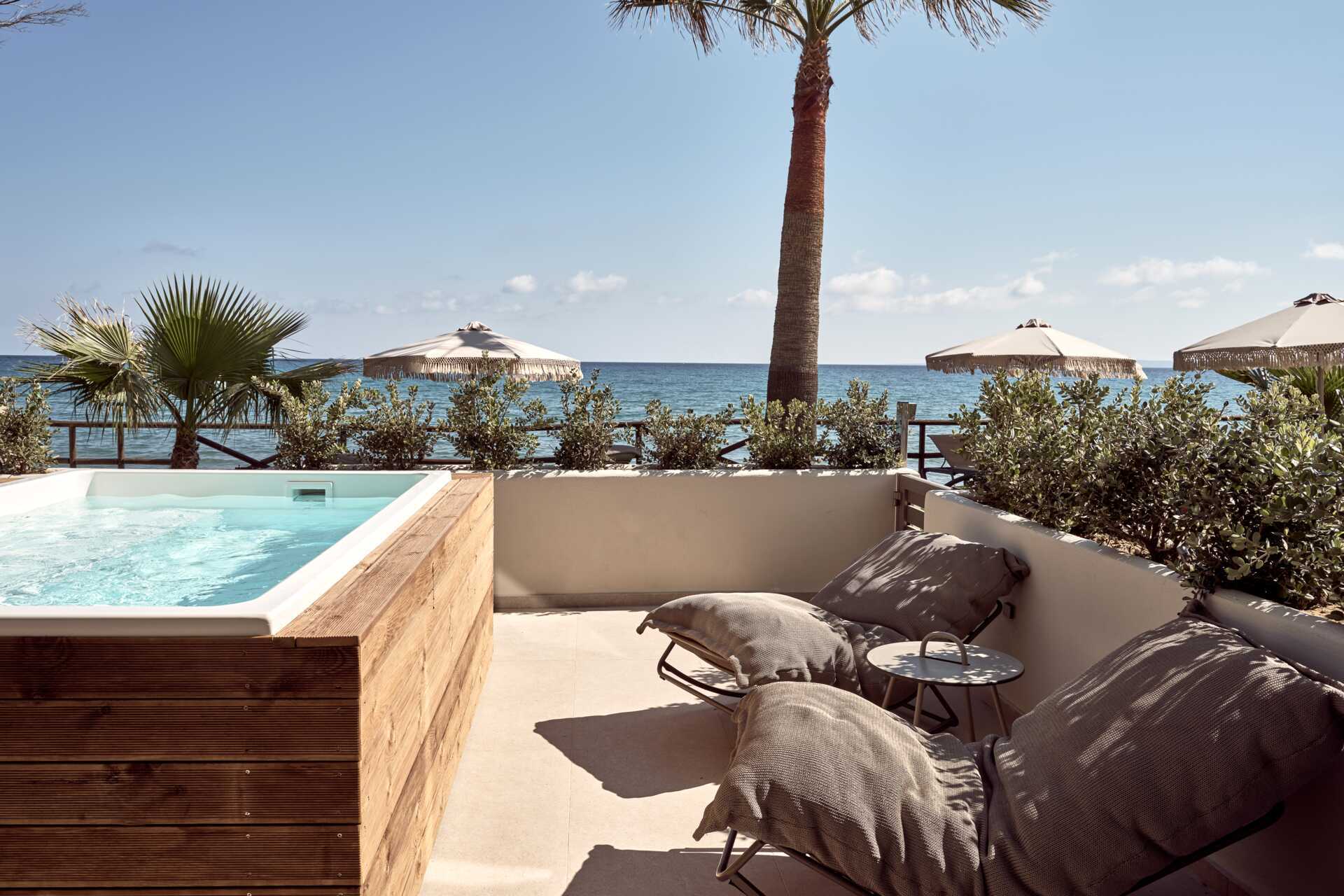 Deluxe juniorsviitti, maaterassilla, jossa poreallas sekä kaksi mukavaa nojatuolia ja sohva. Makuuhuoneosiossa parivuode ja olohuoneosiossa vuodesohva ja vuodenojatuoli. Maksuton wifi, ilmastointi ja tallelokero. Jääkaappi. Vedenkeitin, kahvia ja teetä. Nespresso -kahvikone. Tv kansainvälisillä kanavilla. Tossut. Hiustenkuivain. Suihku ja wc. Siivous 7 krt/viikko.