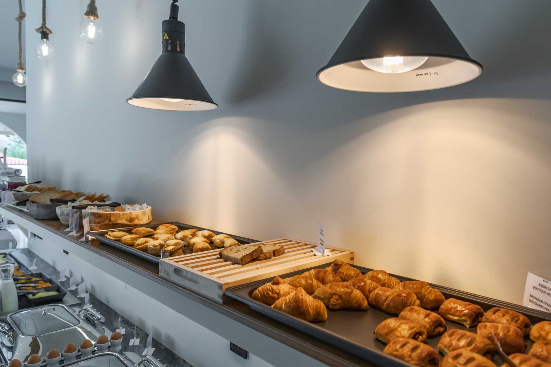 Hotellissa on tarjolla aamiaisbuffet, sertifioitu Greek breakfast, joka houkuttelee luomu- ja paikallisesti viljeltyjen tuotteiden sekä paikallisten herkkujen tuoksuilla ja mauilla. Ravintola tarjoilee herkullisia Välimeren keittiön annoksia.