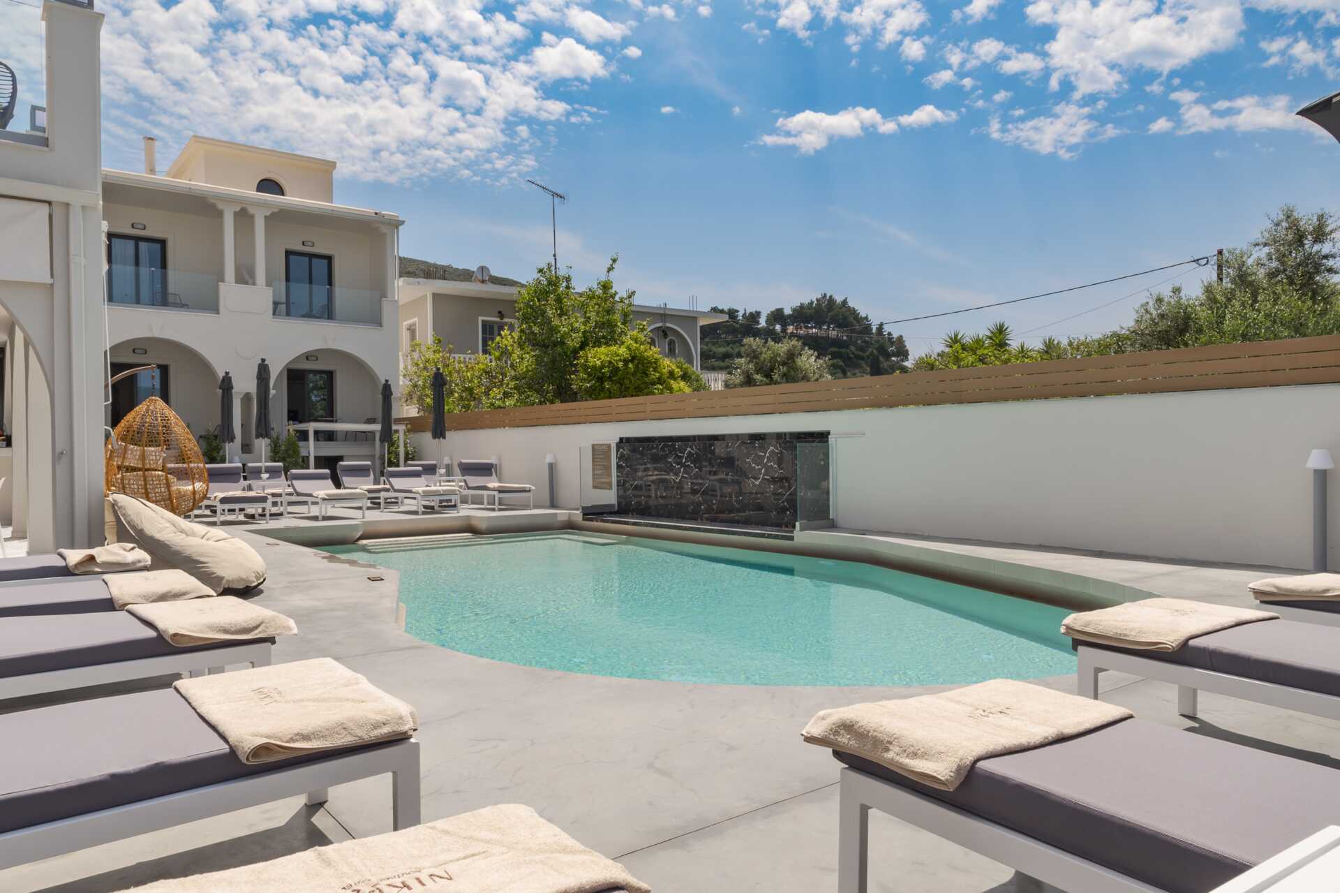 NIKΩN Boutique Hotel – rauhallinen hotelli Kalamakissa Zakynthoksella. Nauti hotellin tarjoamasta rauhasta ja yksityisyydestä, mutta ole samalla rannan ja Kalamakin keskustan ravintoloiden, baarien ja kauppojen lähellä. Sinun on oltava yli 16-vuotias yöpyäksesi hotellissa.