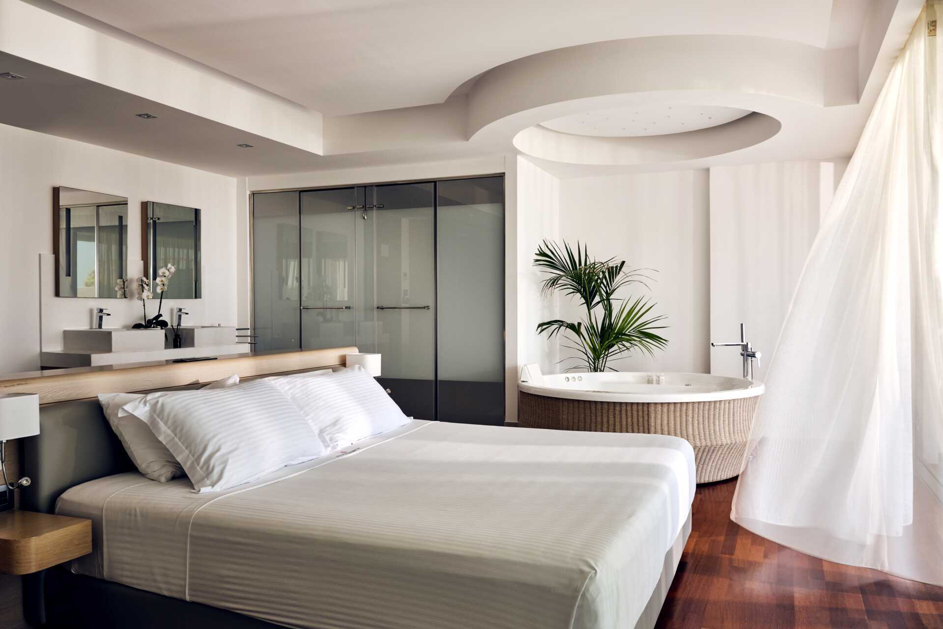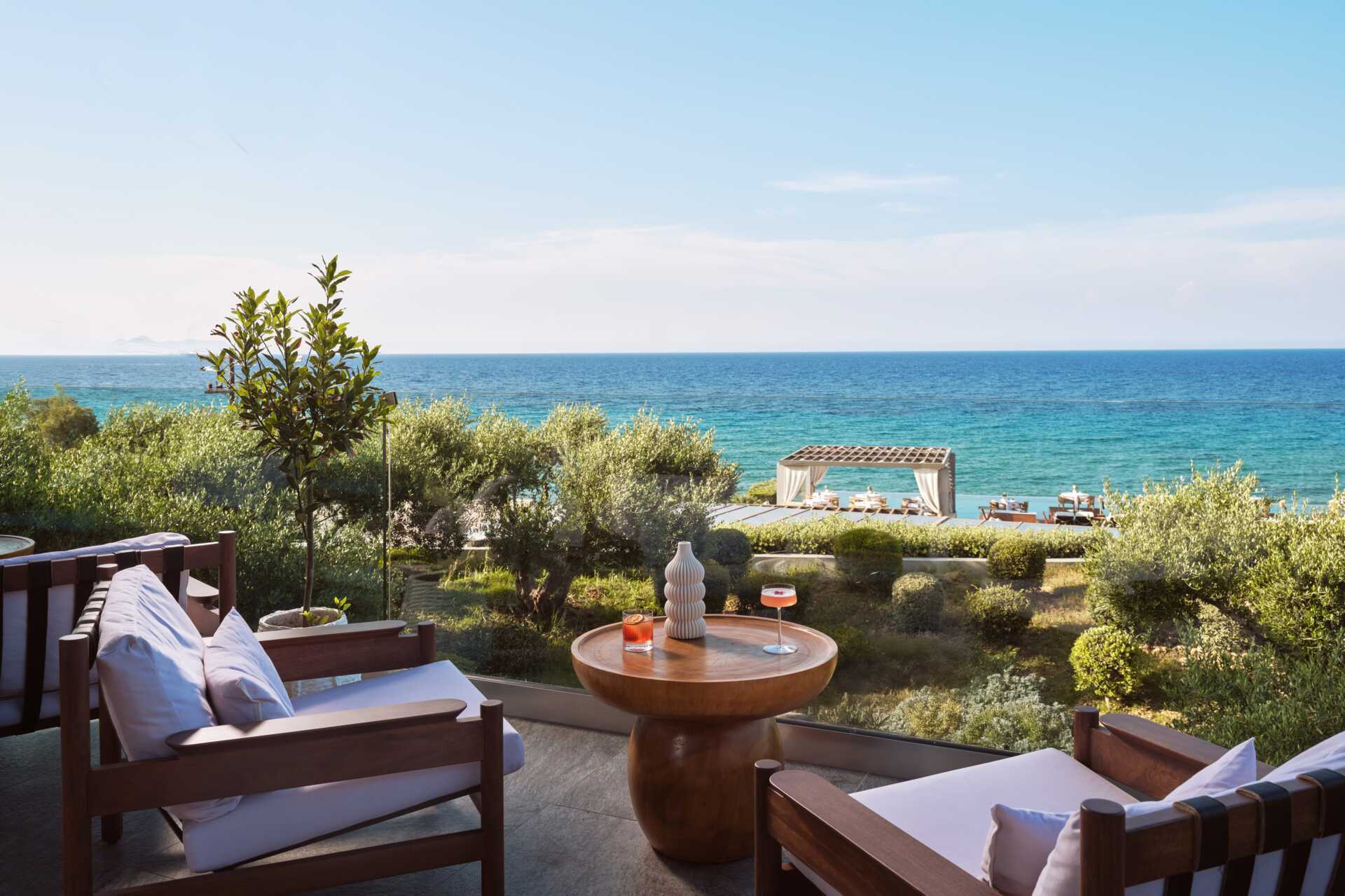Huoneen parvekkeella istuessa näkyi vain oliivipuu. Meri näkyi kaukana taustalla, jos seisoi huoneen perällä.
