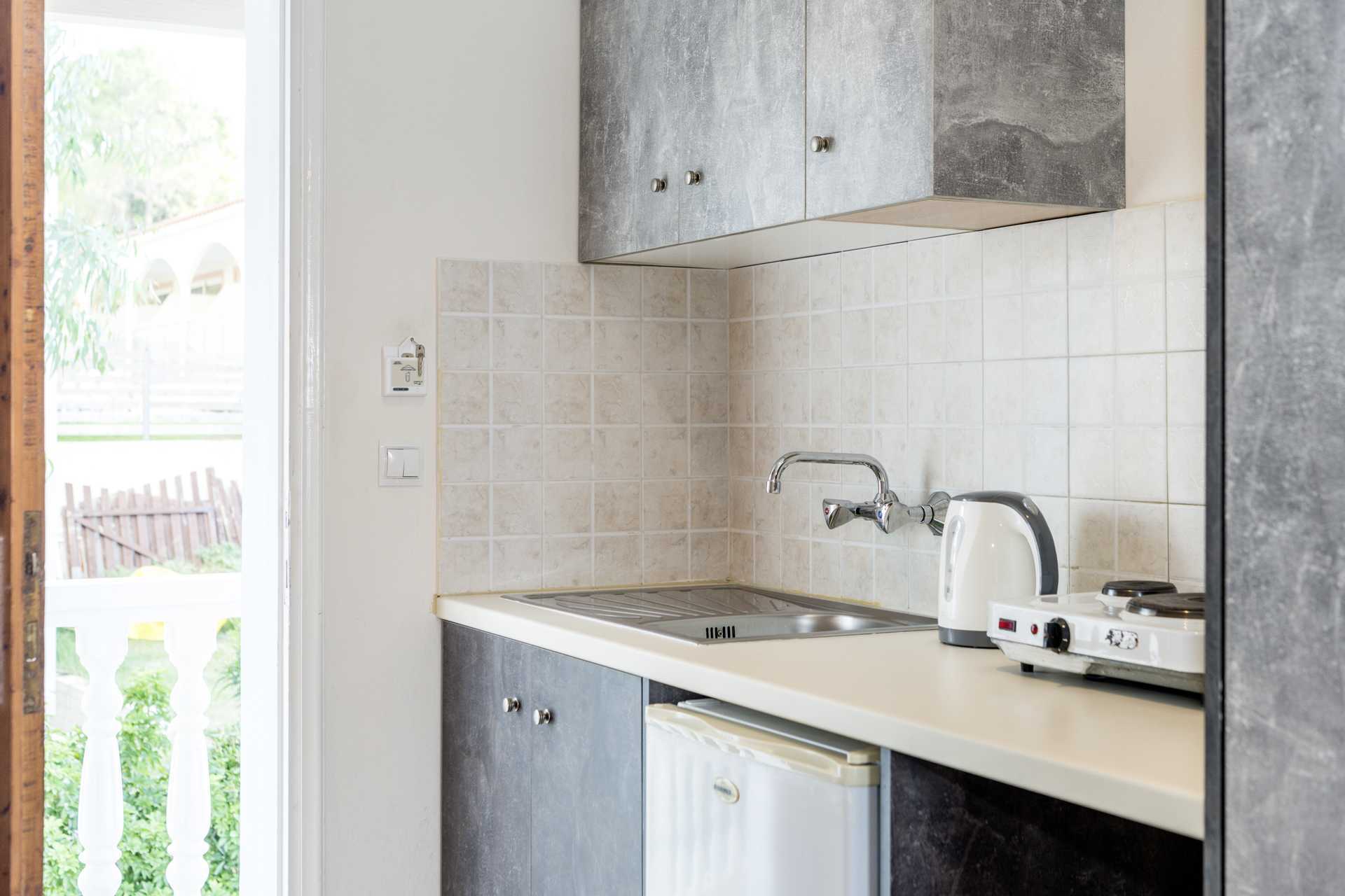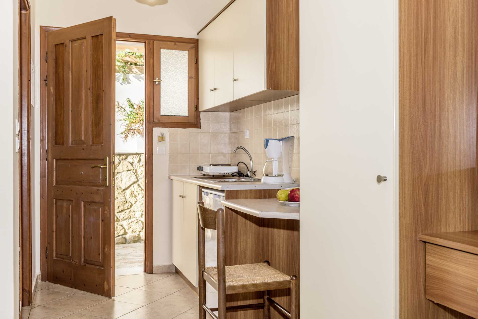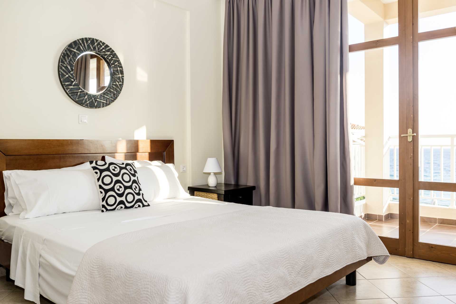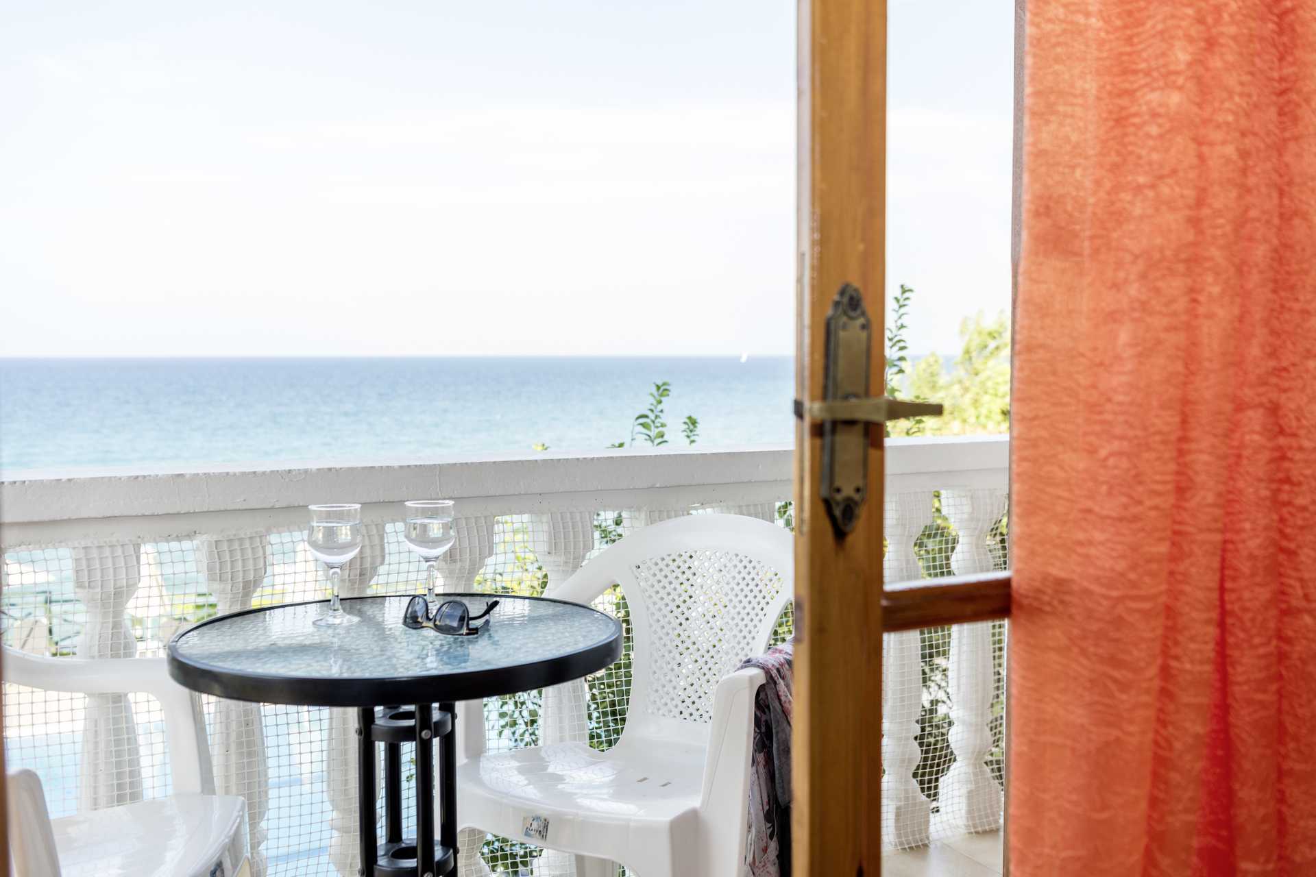 Yksiö parvekella tai maaterassilla ja merinäköalalla. Yhdistetty makuuhuone olohuoneella, jossa on minikeittiö. Parivuode tai kaksi yhden hengen sänkyä. Minikeittiö, jossa pieni jääkaappi, keittolevyt, leivänpaahdin, kahvinkeitin, vedenkeitin ja peruskeittiövälineet. Maksuton wifi ja tallelokero. Ilmastointi lisämaksusta. Tv kansainvälisillä kanavilla. Hiustenkuivain. Kylpyhuoneessa suihku ja wc. Siivous 5 krt/viikko.
