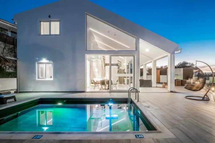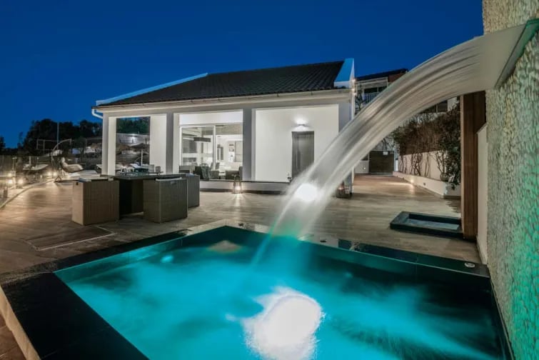 Tässä ylellisessä huvilassa on ainutlaatuinen uima-allas ja ulkouima-allas, jossa on ryöppyävä vesiputous. Molemmista on henkeäsalpaavat näkymät vuorille ja merelle.
