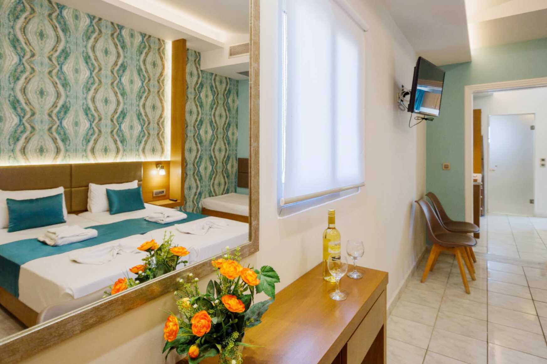 Yksiö parvekkeella tai maaparvekkeella. Joistakin on näköala uima-altaalle. Kaksi yhden hengen sänkyä. Lisävuodemahdollisuus vuodesohvasta. Maksuton wifi, tallelokero ja ilmastointi. Ilmastointi on keskitetysti ohjattu ja se kytketään päälle tarvittaessa 5.12.–29.9. välisenä aikana. Minikeittiö, jossa mikro, vedenkeitin, jääkaappi, leivänpaahdin ja yksinkertainen keittiövarustus. Tv paikallisilla kanavilla. Hiustenkuivain. Kylpyhuoneessa suihku ja wc. Siivous 6 krt/viikko.
