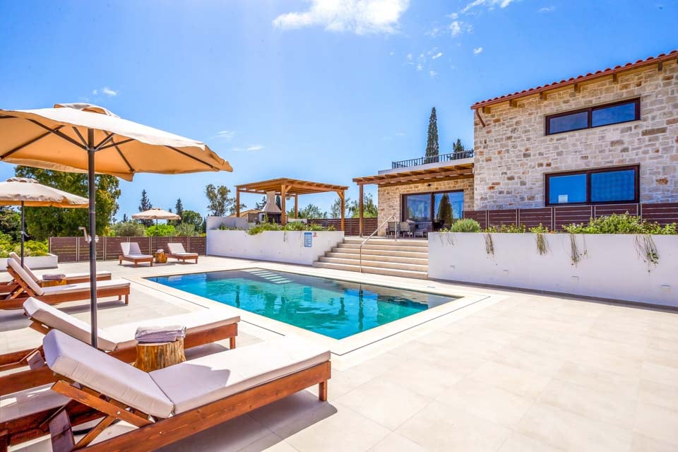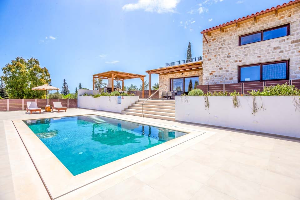 Onko parempaa paikkaa ihailla maisemia kuin oman uima-altaan ääreltä? Voitatpa sitten kuumuutta virkistävällä uinnilla tai vain ottaessasi aurinkoa uima-altaan aurinkotuoleilla, nauti maaseudun rauhasta samalla kun rentoudut omassa henkilökohtaisessa paratiisissasi. Kuuntele tuulen suhinaa läheisten puiden lomassa, katsele pilvien hitaasti lipuvan ohi ja anna tuntien vieriä, kun kadotat täysin ajantajun. Auringon laskiessa voit pelata pöytätennistä tai ehkäpä nauttia ulkoilmaillallisesta tuoreiden grillattujen herkkujen kera tiilistä rakennetulla grillillä – paras tapa luoda herkullisia muistoja läheistesi kanssa lämpiminä Kreikan saari-iltoina.