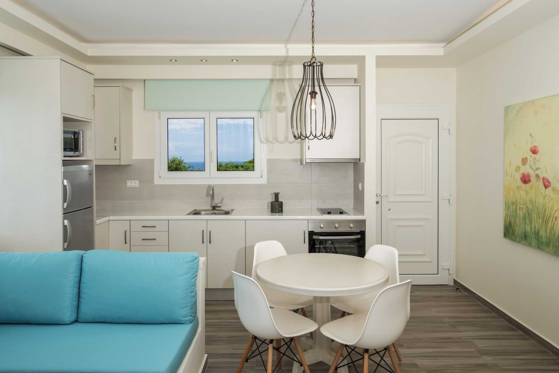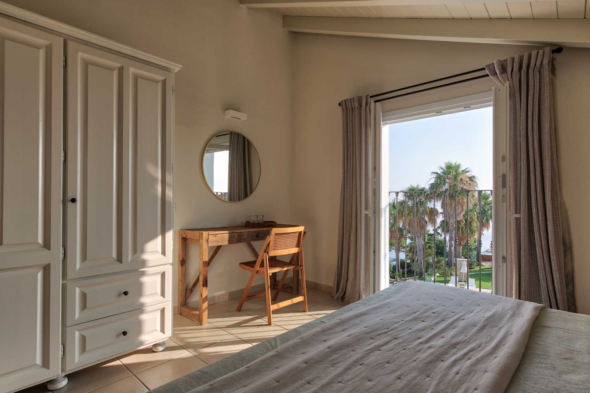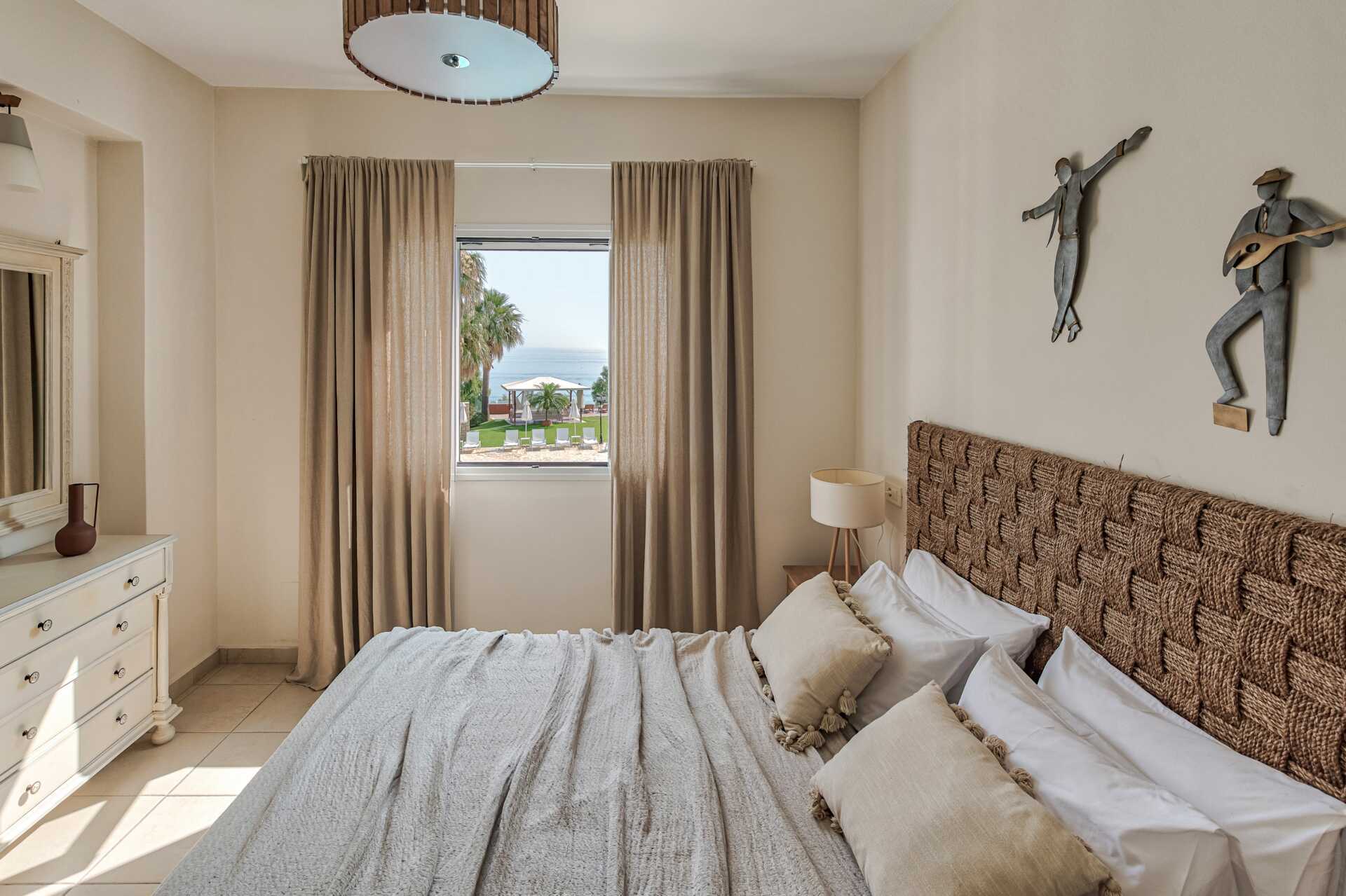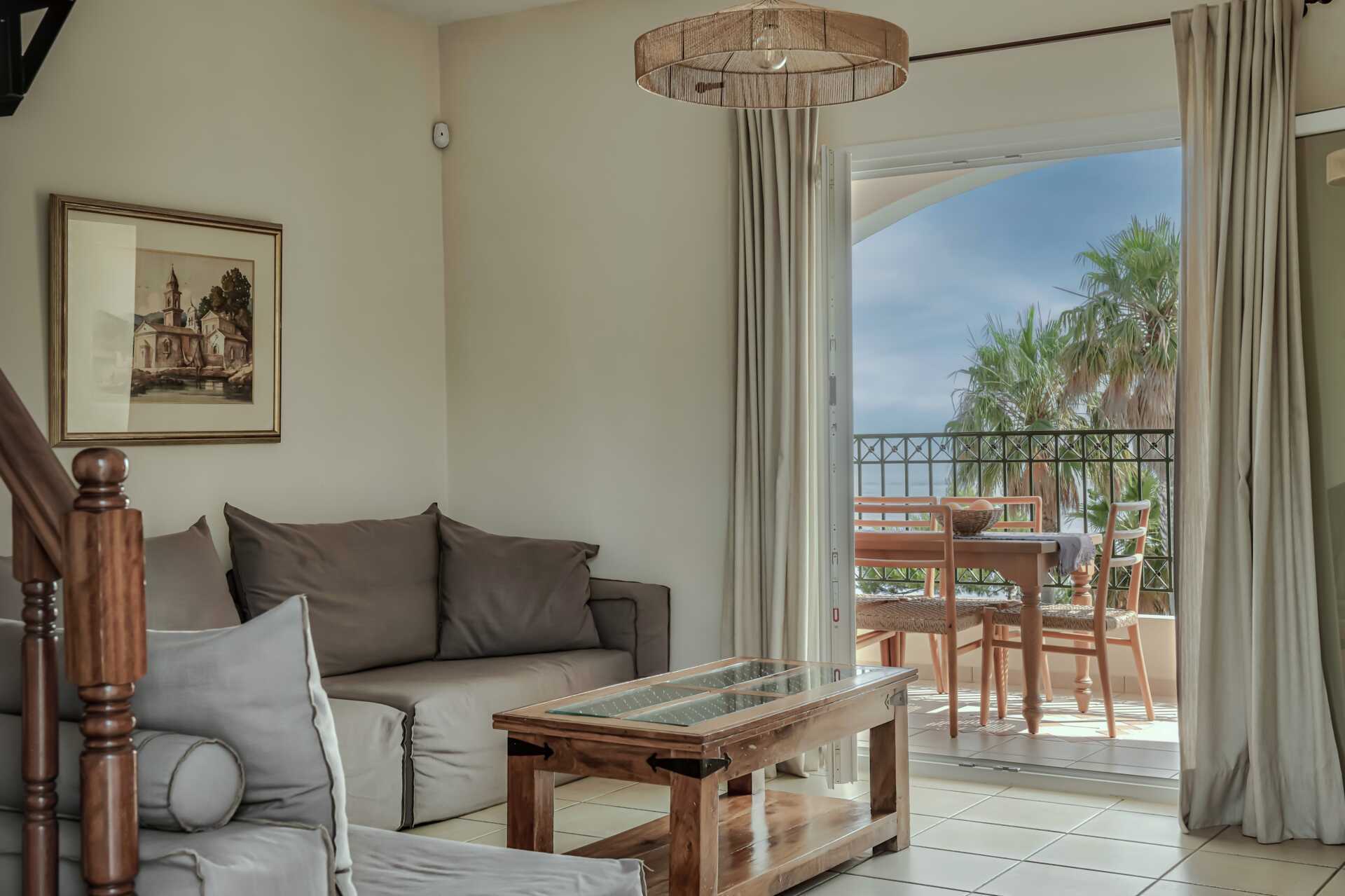 Kaksikerroksinen 4 huoneen huoneista parvekkeella ja merinäköalalla. Kolme erillistä makuuhuonetta, joista kahdessa on parisängyt ja yhdessä kaksi erillistä sänkyä. Yhdistetty olohuone ja keittiö. Hyvin varusteltu keittiö, jossa liesi ja uuni, jääkaappi ja pakastin, astianpesukone, mikroaaltouuni ja peruskeittiövälineet. Maksuton wifi, tallelokero ja ilmastointi. Tv kansainvälisillä kanavilla. Hiustenkuivain. Kaksi kylpyhuonetta, joissa on suihku ja wc. Siivous 7 krt/viikko.