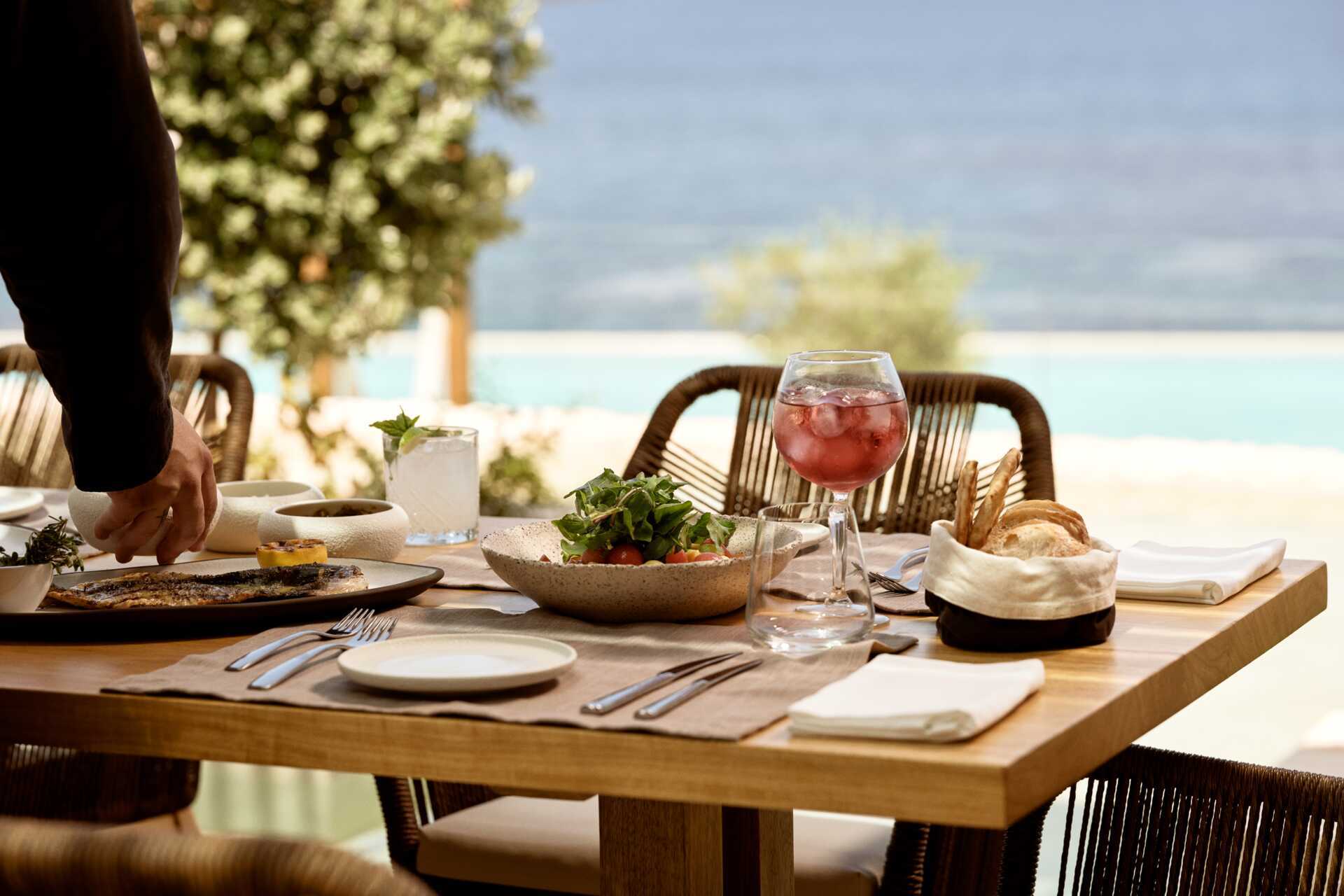 Lesante Cape Resort & Villan filosofia on paikallisten perinteiden säilyttäminen ja ympäristön suojeleminen. Tämä näkyy esimerkiksi keittiössä, jossa raaka-aineet ovat suurelta osin peräisin hotellin omasta puutarhasta ja paikallisilta tuottajilta. Hotellin ravintolassa Eleassa tarjolla runsas aamiaispöytä ja iltaisin aterioita pääset tilaamaan päivän menulta. Novita-ravintola tarjoaa tuoreita kala- ja äyriäisruokia sekä päivän erikoisuuksia, aina lounaasta iltamyöhään. Fiore Fine Dining on eksklusiivinen gourmetravintola, joka erottuu yhdeksi saaren ravintolavalikoiman helmistä mm. erinomaisen viinikellarin ansiosta. Fiore Fine Dining on avoinna illallisaikaan, pöytävaraus vaaditaan. Bostani Farm to table on ulkoravintola, jossa ruokailet mukavassa puutarhassa. Tarjolla paikallisia ruokia hotellin itse kasvattamilla kasviksilla. Hotellin aukiolla sijaitseva Taverna-ravintola vie sinut ajassa taaksepäin perinteisillä herkuilla, jotka ovat saaneet inspiraationsa menneisyyden mauista ja resepteistä. Täällä voit sekä tanssia että kuunnella saaren musiikkia. Hotellissa on useita baareja, mukaan lukien rantabaari, josta voit nauttia virkistäviä juomia ja kevyttä syötävää päivän aikana. Alueella on myös kahvila, jossa on tarjolla mm. hyvää ja vahvaa kreikkalaista kahvia makean kera.