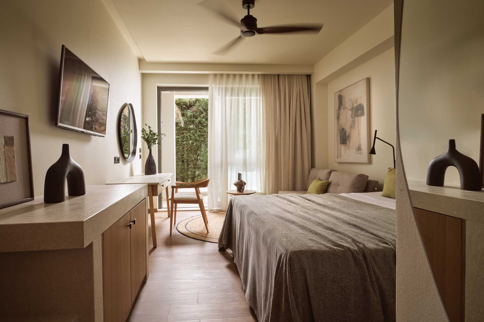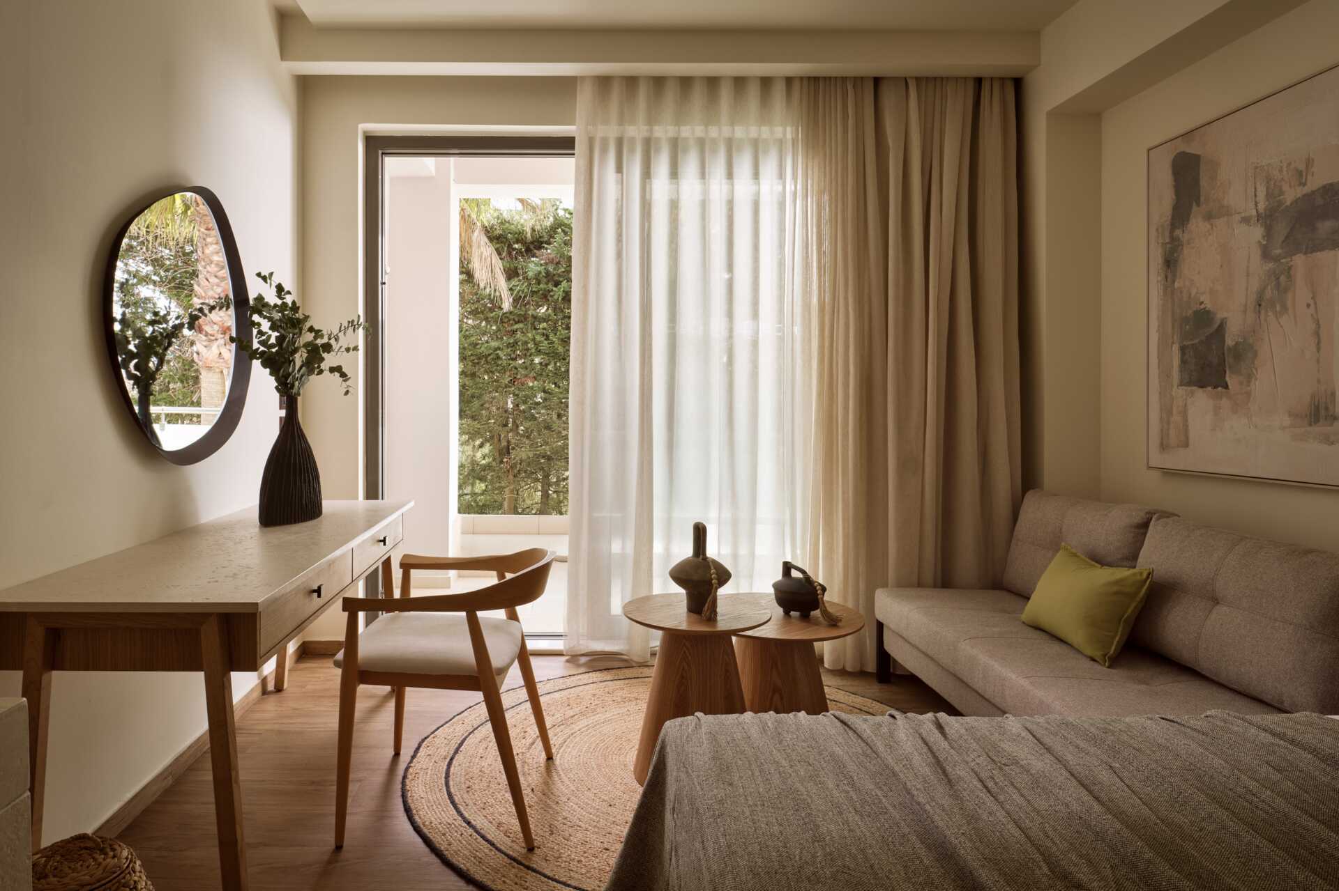 Kahden hengen huone parvekkeella. Parivuode tai kaksi yhden hengen sänkyä. Mahdollisuus lisävuoteeseen nojatuolissa. Maksuton wifi, ilmastointi ja tallelokero. Minibaari. Vedenkeitin, kahvia ja teetä. Tv kansainvälisillä kanavilla. Kylpytakit ja tossut. Hiustenkuivain. Kylpyhuoneessa kylpyamme, erillinen suihku ja wc. Siivous 7 krt/viikko.