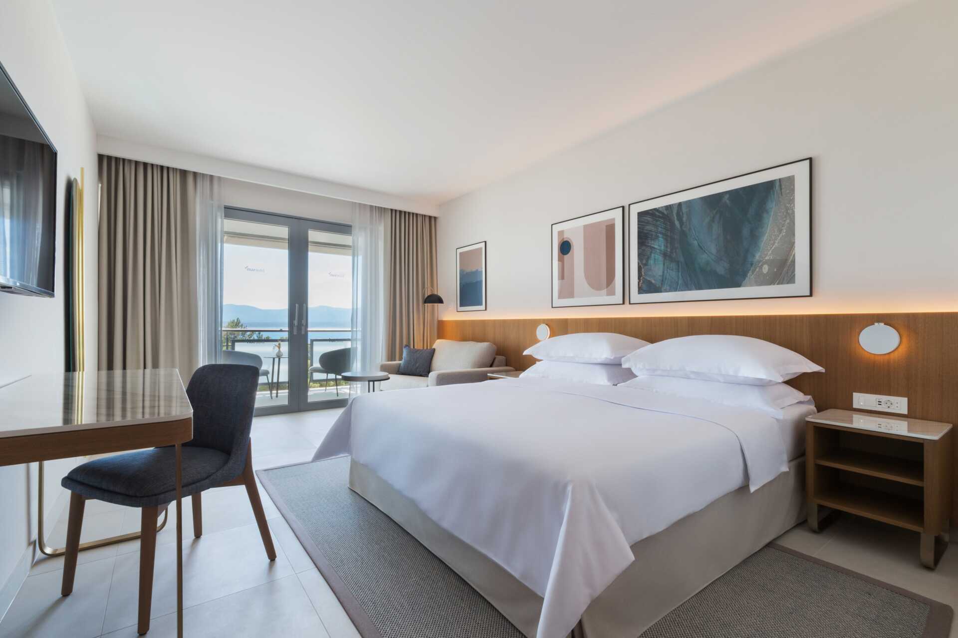 Suurempi kahden hengen huone parvekkeella ja merinäköalalla. Parivuode tai kaksi yhden hengen sänkyä. Lisävuodemahdollisuus vuodesohvasta. Maksuton wifi, ilmastointi ja tallelokero. Minibaari. Tv kansainvälisillä kanavilla. Kylpytakit. Hiustenkuivain. Kylpyhuoneessa suihku ja wc. Siivous 7 krt/viikko.