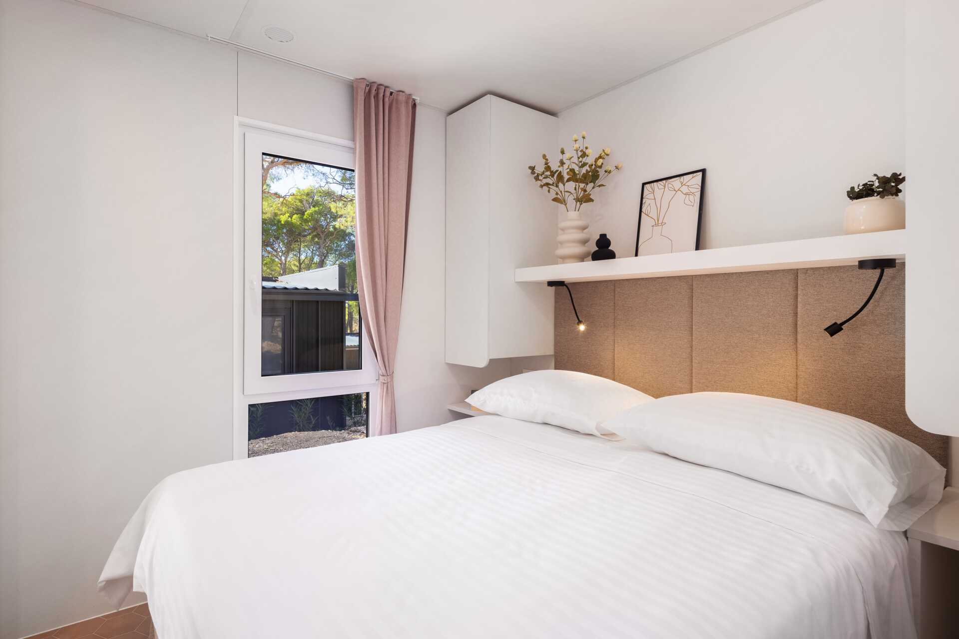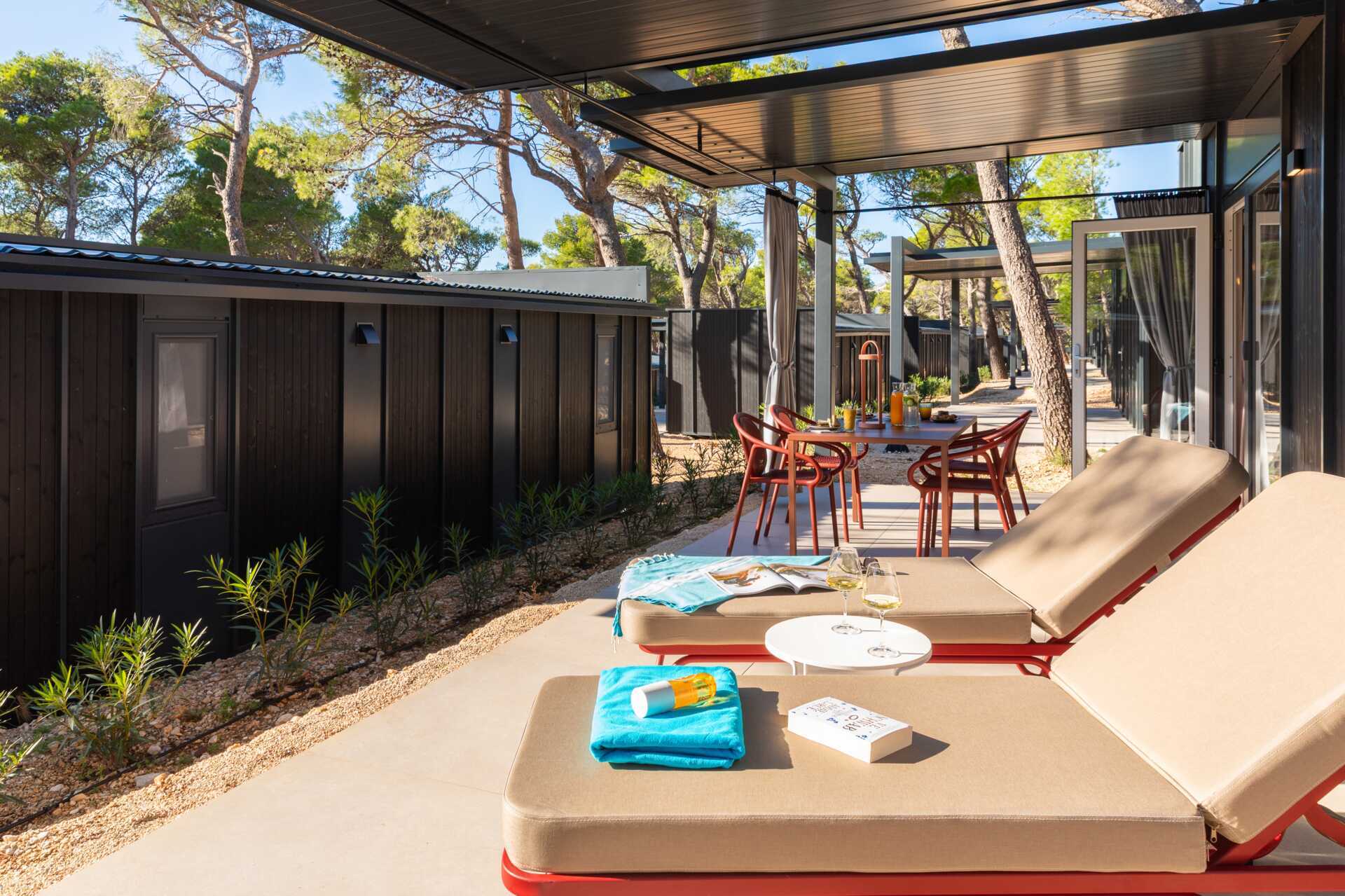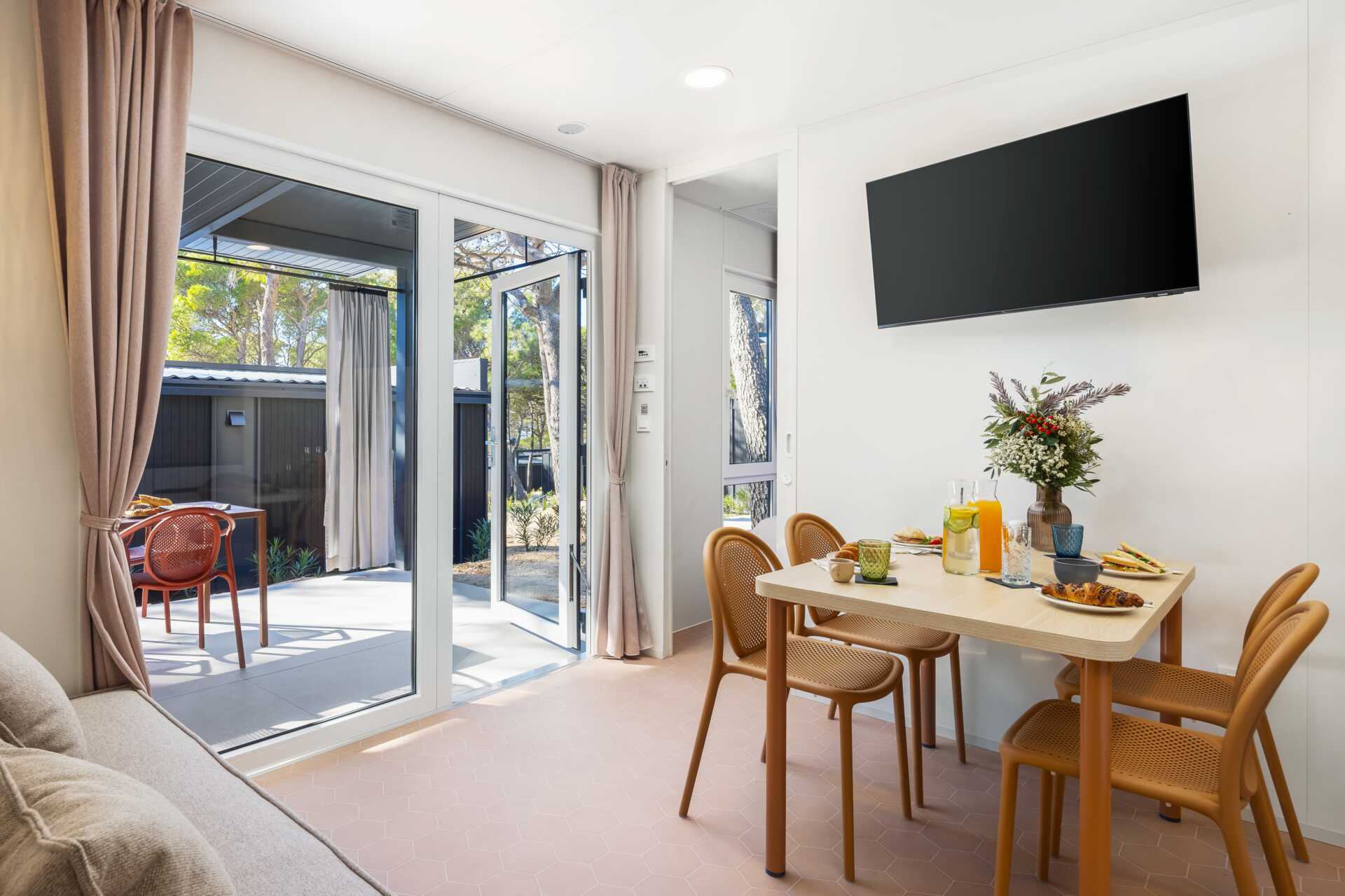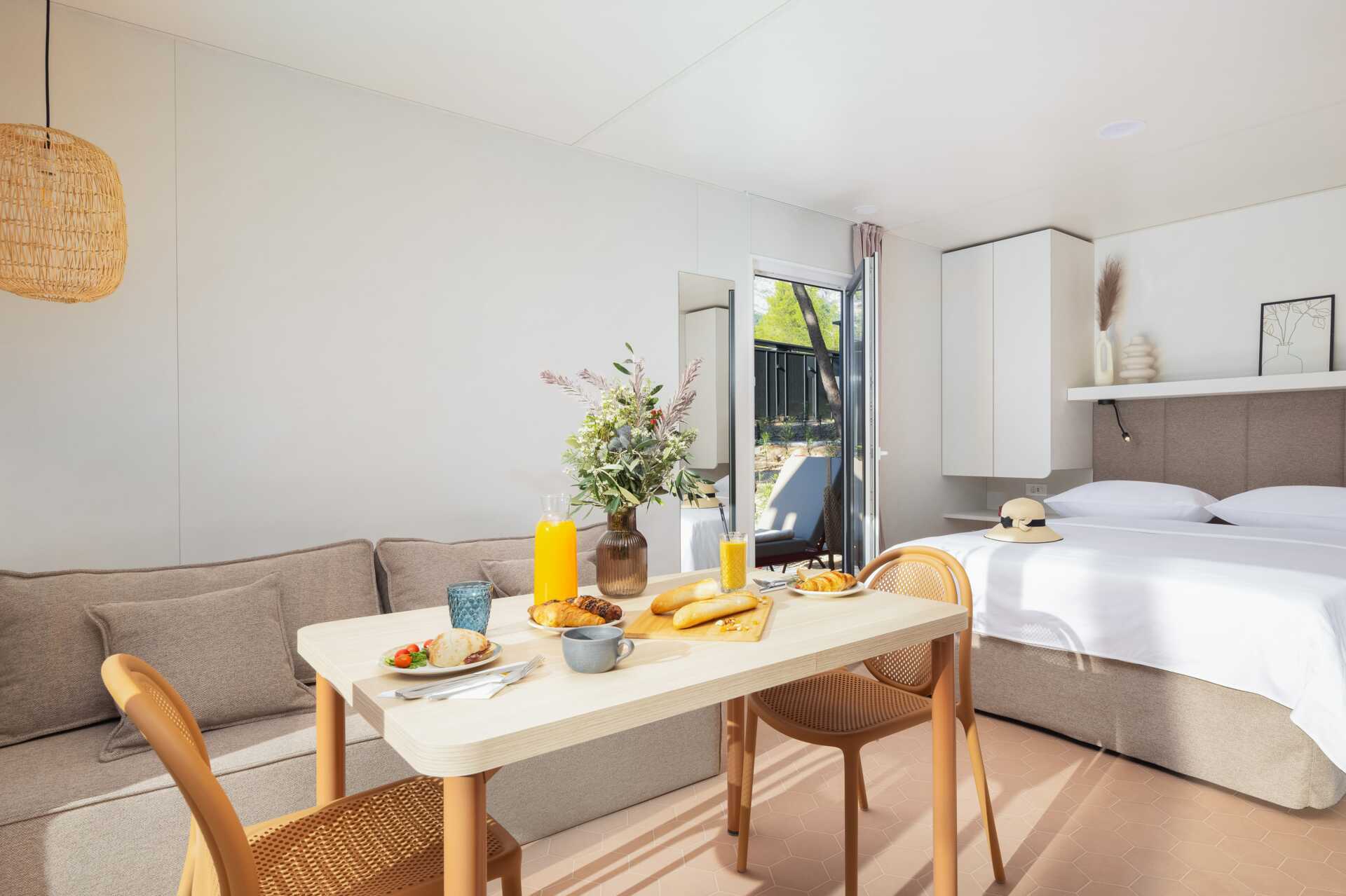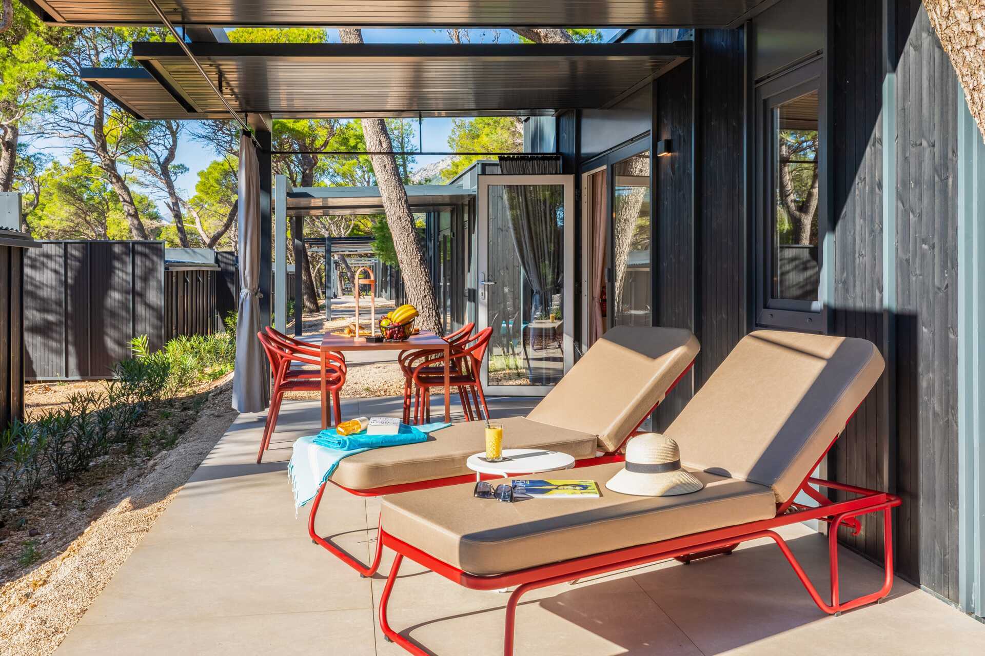 Superior-kolmio, jossa on maaterassi, aurinkotuoleja ja oma poreallas. Kaksi erillistä makuuhuonetta, toisessa parisänky ja toisessa kaksi erillistä sänkyä. Vuodesohva. Keittiönurkkaus, jossa jääkaappi, liesi, vedenkeitin, kahvinkeitin, astianpesukone ja peruskeittiövälineet. Maksuton wifi, ilmastointi ja tallelokero. Tv. Hiustenkuivain. Kaksi kylpyhuonetta, joissa kylpyamme/suihku ja wc. Siivous 1 krt/viikko. Alle 2-vuotiaat lapset lasketaan lisävuoteella majoittuviksi henkilöiksi.