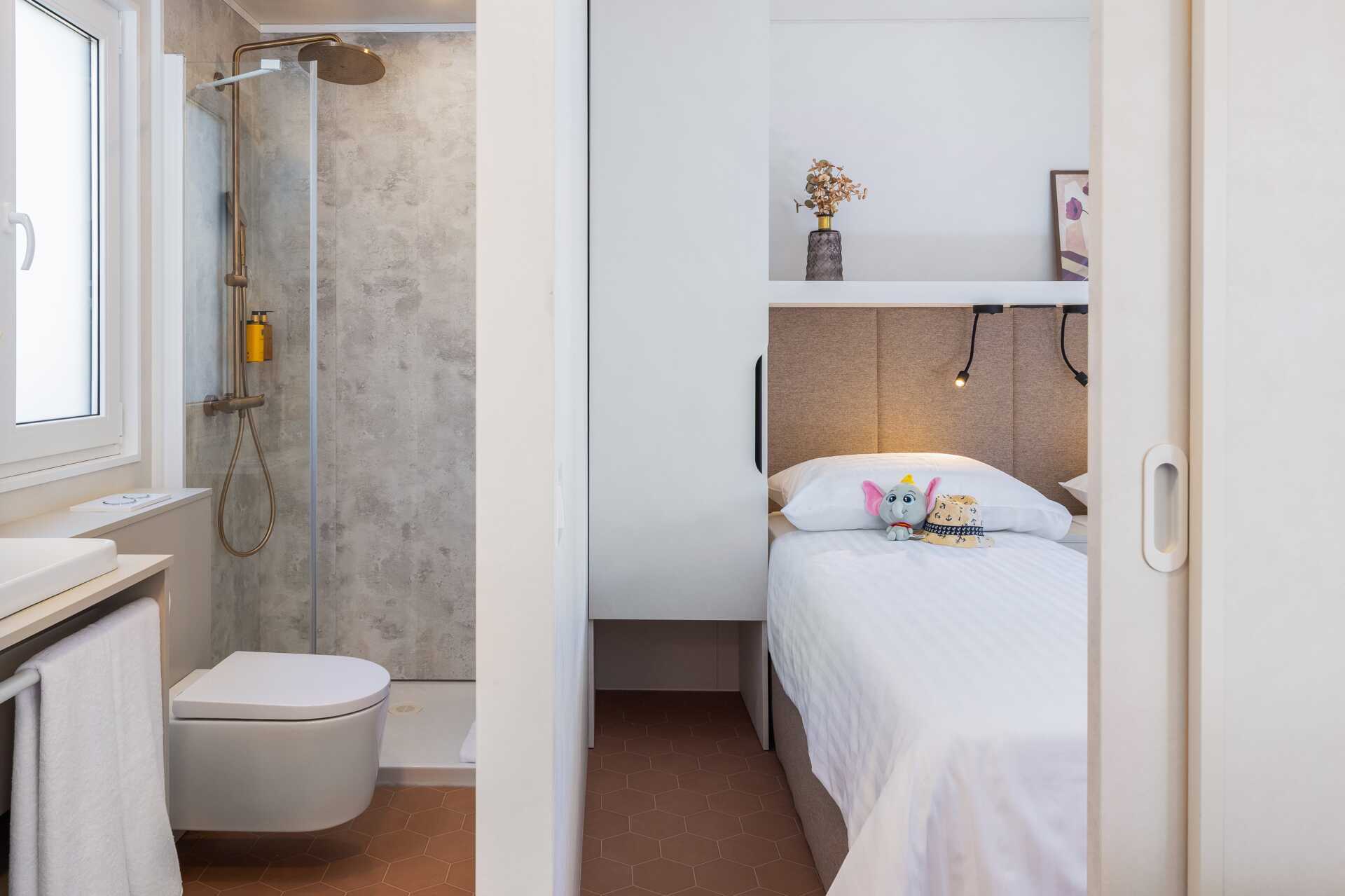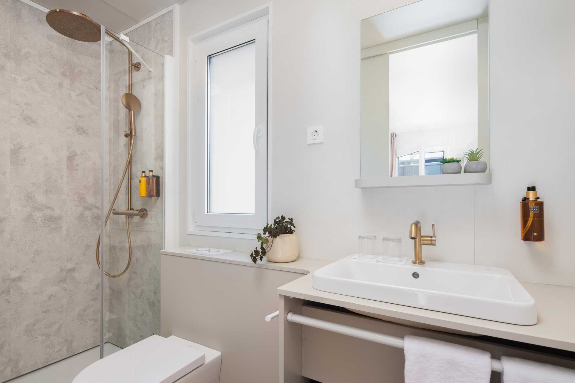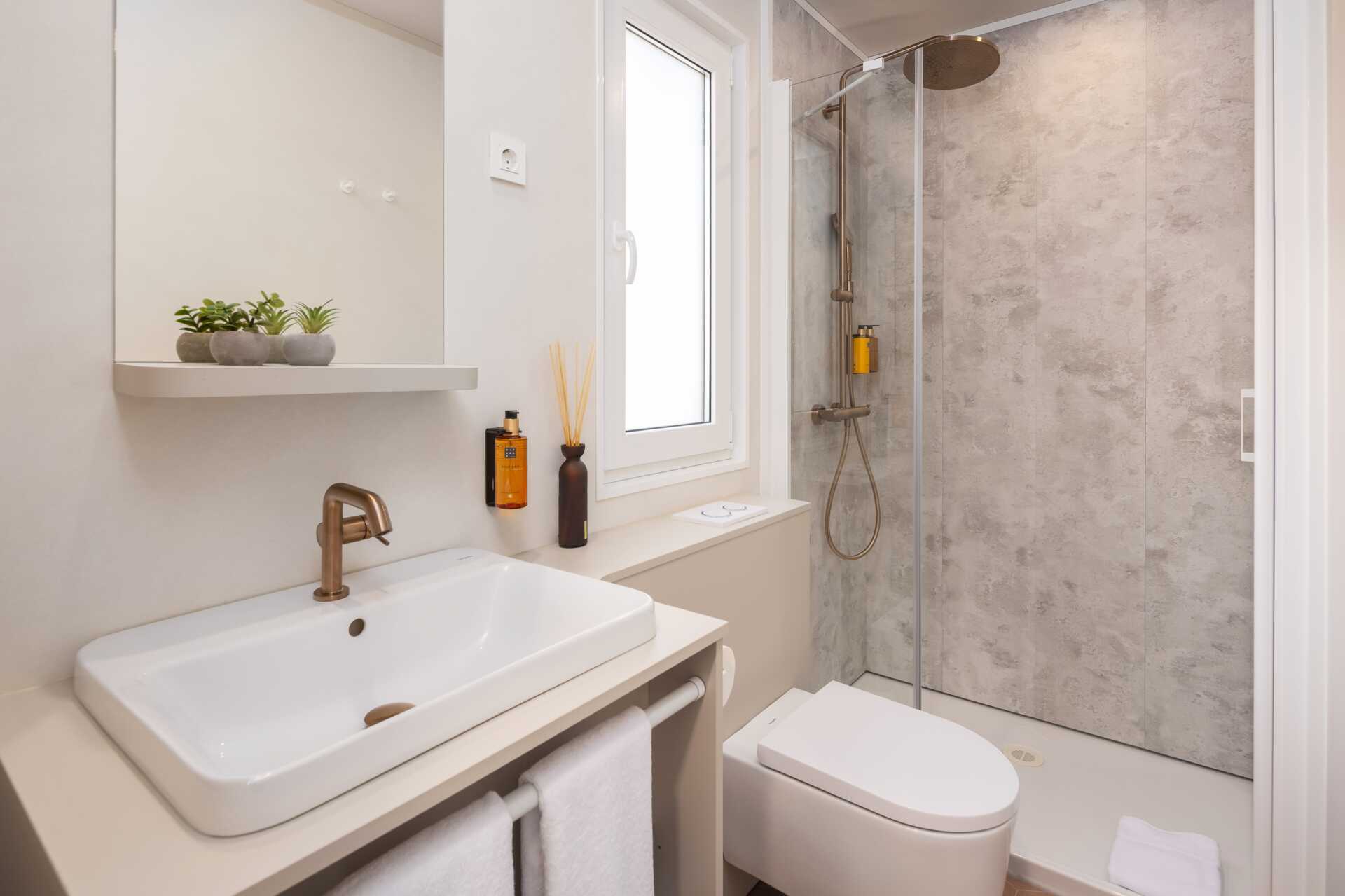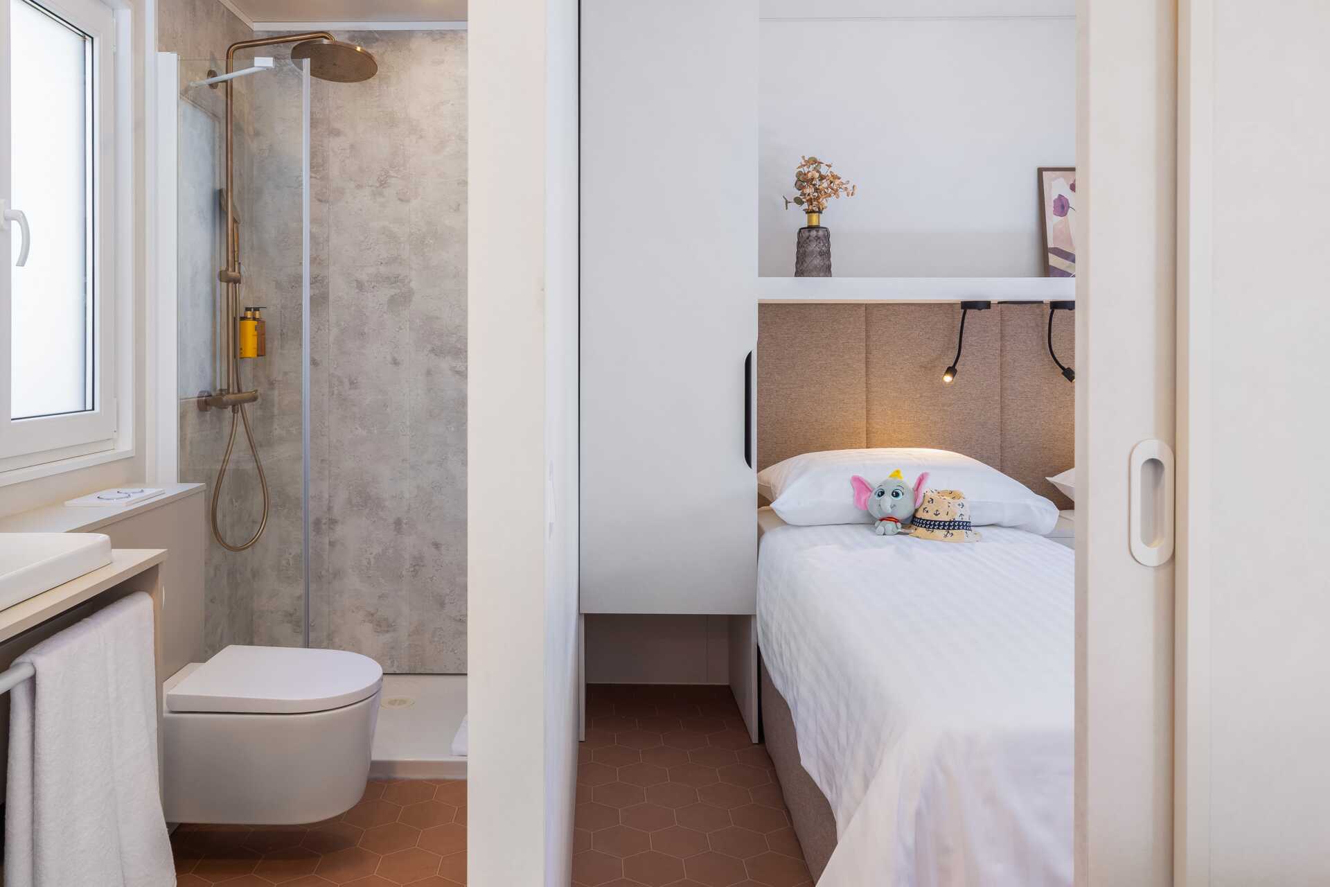Superior-kolmio, jossa on maaterassi, aurinkotuoleja ja oma poreallas. Kaksi erillistä makuuhuonetta, toisessa parisänky ja toisessa kaksi erillistä sänkyä. Vuodesohva. Keittiönurkkaus, jossa jääkaappi, liesi, vedenkeitin, kahvinkeitin, astianpesukone ja peruskeittiövälineet. Maksuton wifi, ilmastointi ja tallelokero. Tv. Hiustenkuivain. Kaksi kylpyhuonetta, joissa kylpyamme/suihku ja wc. Siivous 1 krt/viikko. Alle 2-vuotiaat lapset lasketaan lisävuoteella majoittuviksi henkilöiksi.