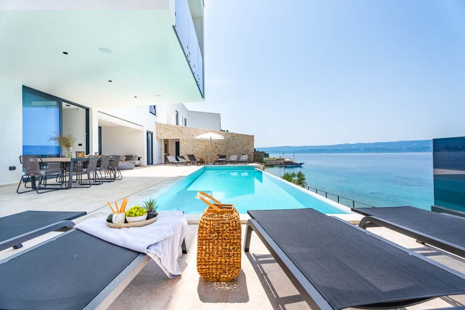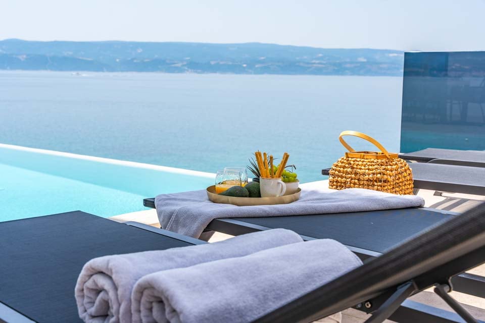 Tutustu tämän upean huvilan nimeen, kun nautit yksityisestä infinity-altaastasi. Tuijota veden jyrkännettä, joka näyttää sulautuvan saumattomasti Adrianmereen, ja eksy valtaviin aaltoihin, jotka hitaasti vyöryvät rannalle. Katsele auringon hitaasti laskeutuvan horisontin taakse virkistävien vesien ääreltä ja vietä viehättävä ilta yksityisellä länteen päin olevalla uima-altaallasi.