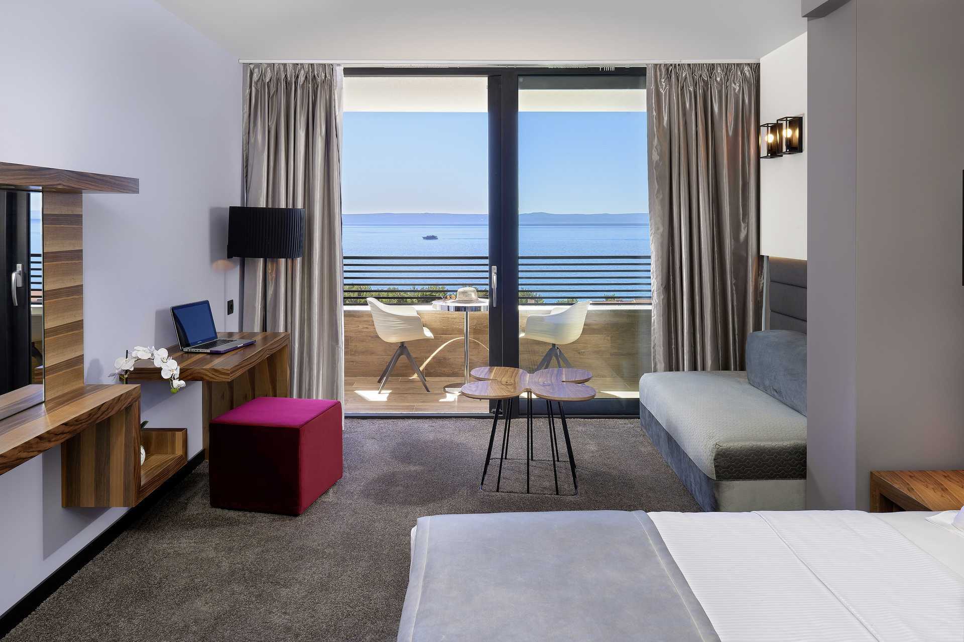 Deluxe-huone, parvekkeella ja merinäköalalla tai rajoitetulla merinäköalalla. Parivuode. Maksuton wifi, ilmastointi ja tallelokero. Minibaari. Vedenkeitin, kahvia ja teetä. Tv kansainvälisillä kanavilla. Kokolattiamatto. Kylpytakit ja tossut. Hiustenkuivain. Kylpyamme tai suihku ja wc. Siivous 7 krt/viikko.