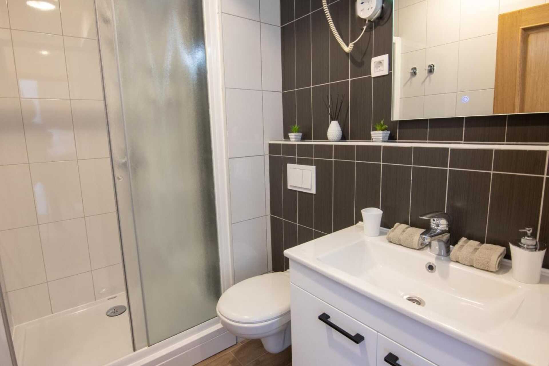 Kaksioissa on parveke, joista osassa on rajoitettu merinäköala ja osa merelle päin. Makuuhuone ja yhdistetty olohuone ja minikeittiö. Parivuode. Vuodesohvalla lisävuodemahdollisuus. Minikeittiö, jossa keittolevyt, jääkaappi ja yksinkertaiset keittiövälineet. Maksuton wifi, ilmastointi ja tallelokero. Tv paikallisilla kanavilla. Hiustenkuivaaja. Kylpyhuone suihkulla ja wc. Siivous 7 krt/viikko.