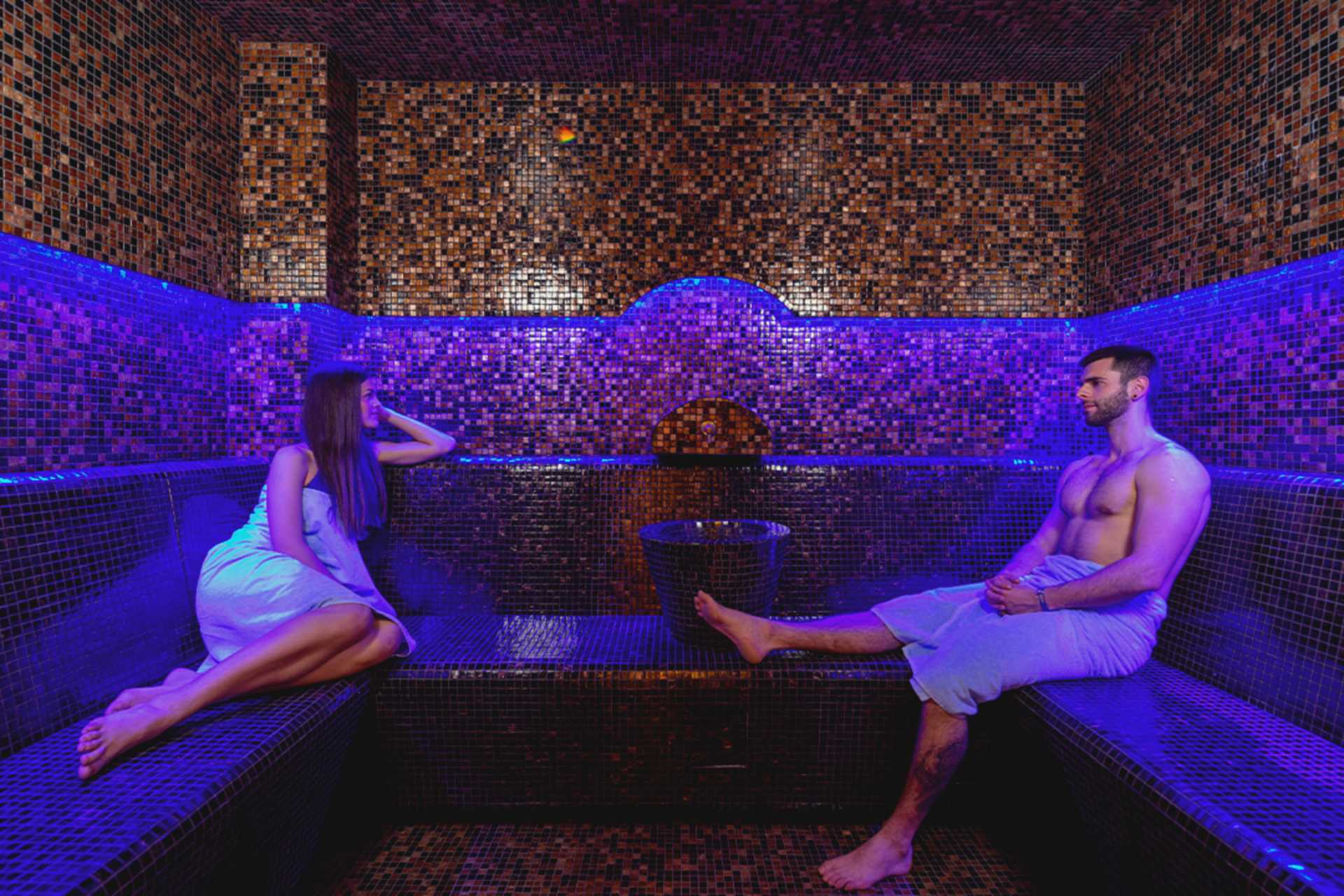 Kuntosali. Hotellin kylpylässä on lämmitetty sisäuima-allas, poreallas, sauna ja turkkilainen sauna. Spa-hoidot lisämaksulla.