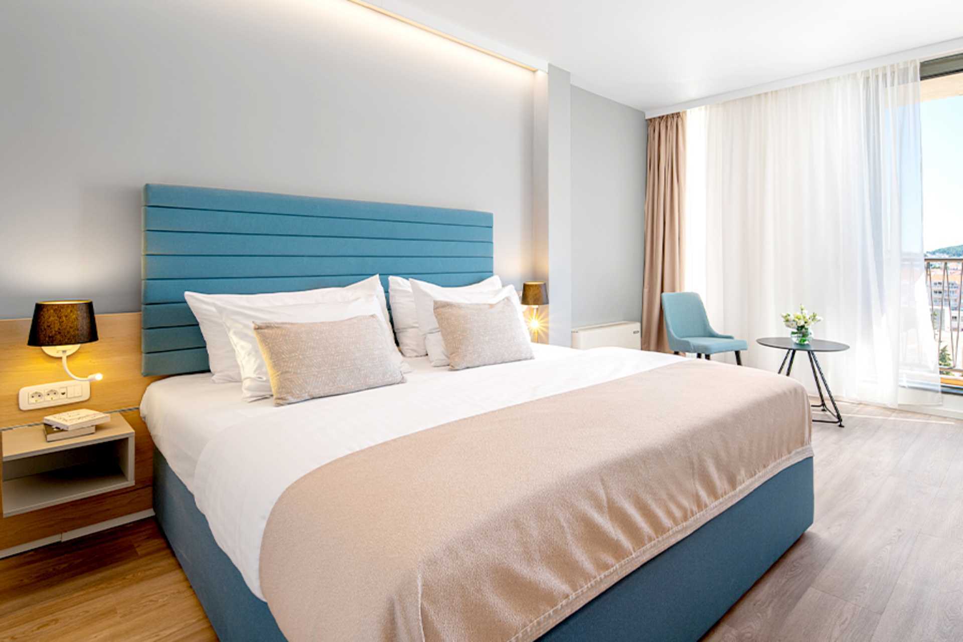 Superior-juniorsviitti, parvekkeella ja rajoitetulla merinäköalalla. Juniorsviitti koostuu makuuhuoneesta, jossa on parivuode, ja makuuhuoneesta, jossa on kaksi erillistä vuodetta. Maksuton wifi, ilmastointi ja tallelokero. Minibaari. Vedenkeitin, kahvia ja teetä. Tv kansainvälisillä kanavilla. Hiustenkuivain. Kylpymme ja wc. Siivous 7 krt/viikko.
